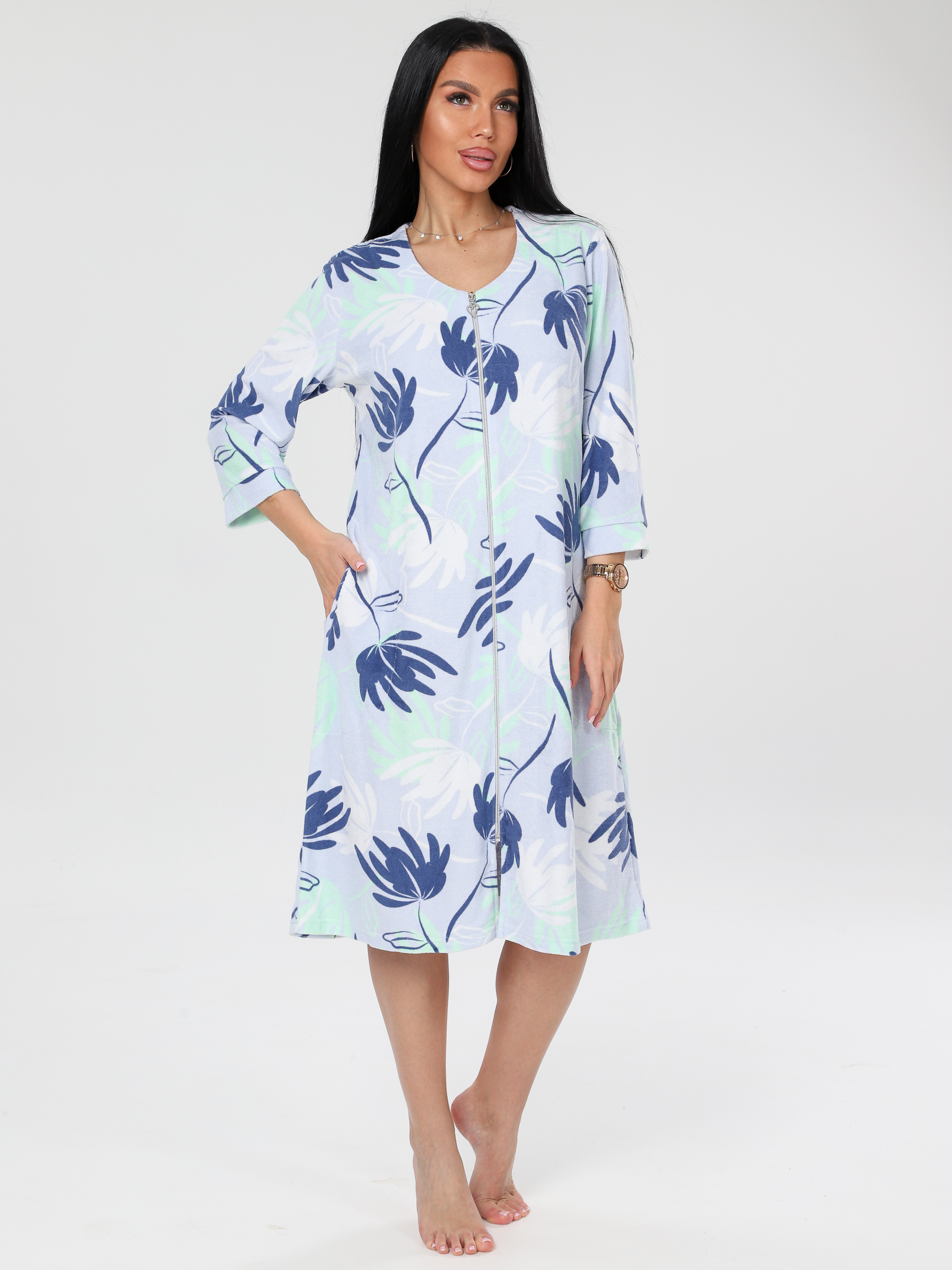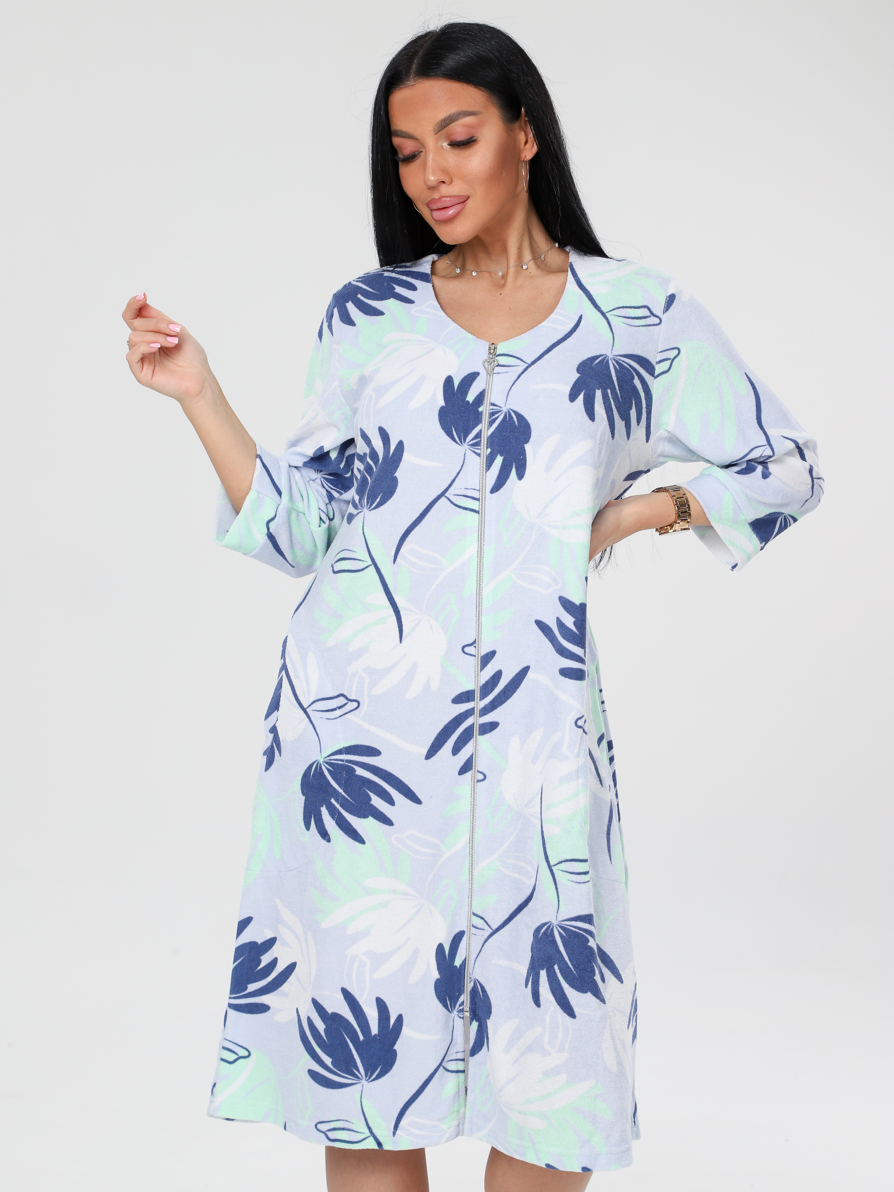 Женский халат Х-80(М) из махры на молнии. Женский махровый халат имеет удобную застежку на молнии, рукав 3/4 с манжетами. Хлопковая махровая ткань халата подарит тепло и уют прохладными днями.