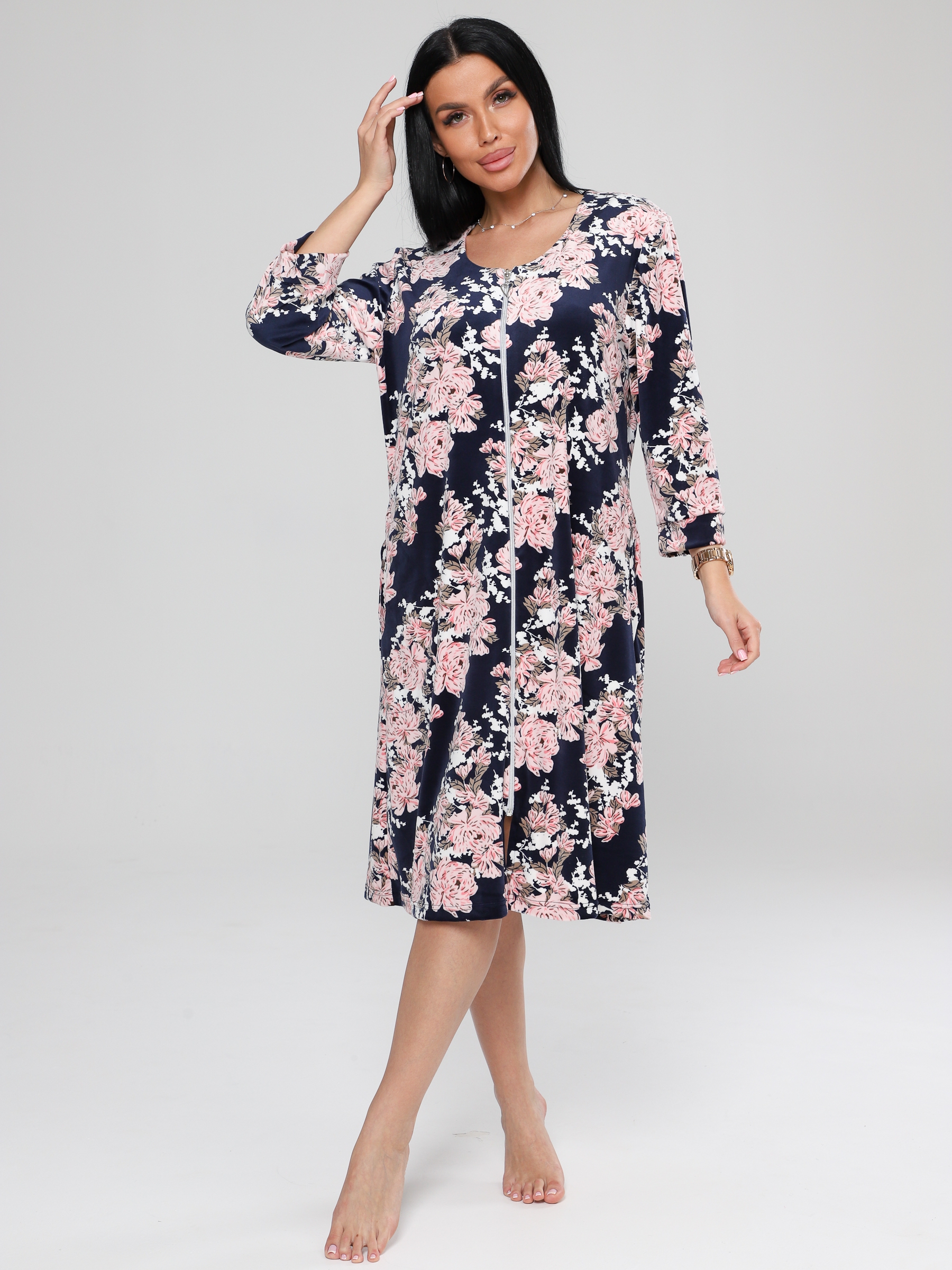 Женский халат Х-80(В) из велюра на молнии. Женский велюровый халат имеет удобную застежку на молнии, рукав 3/4 с манжетами. Хлопковая ткань халата подарит тепло и уют прохладными днями.