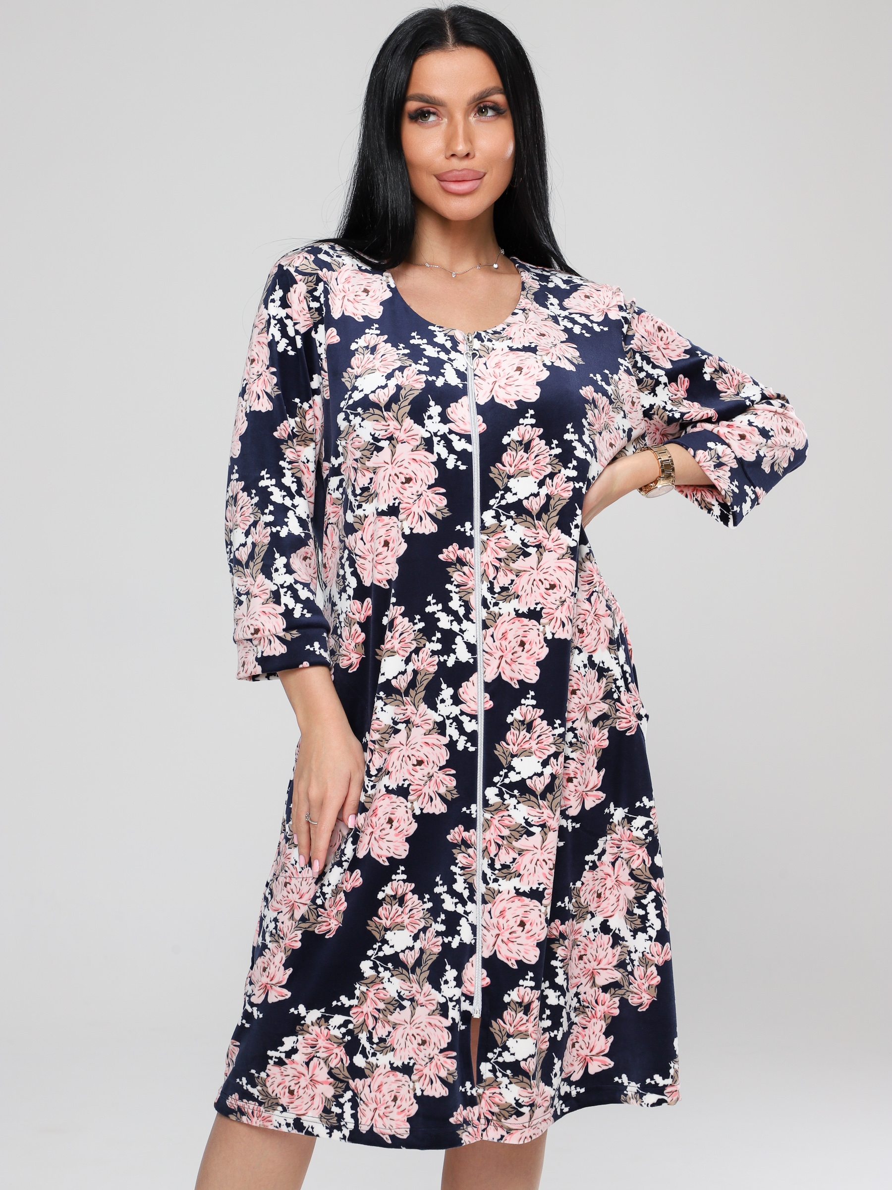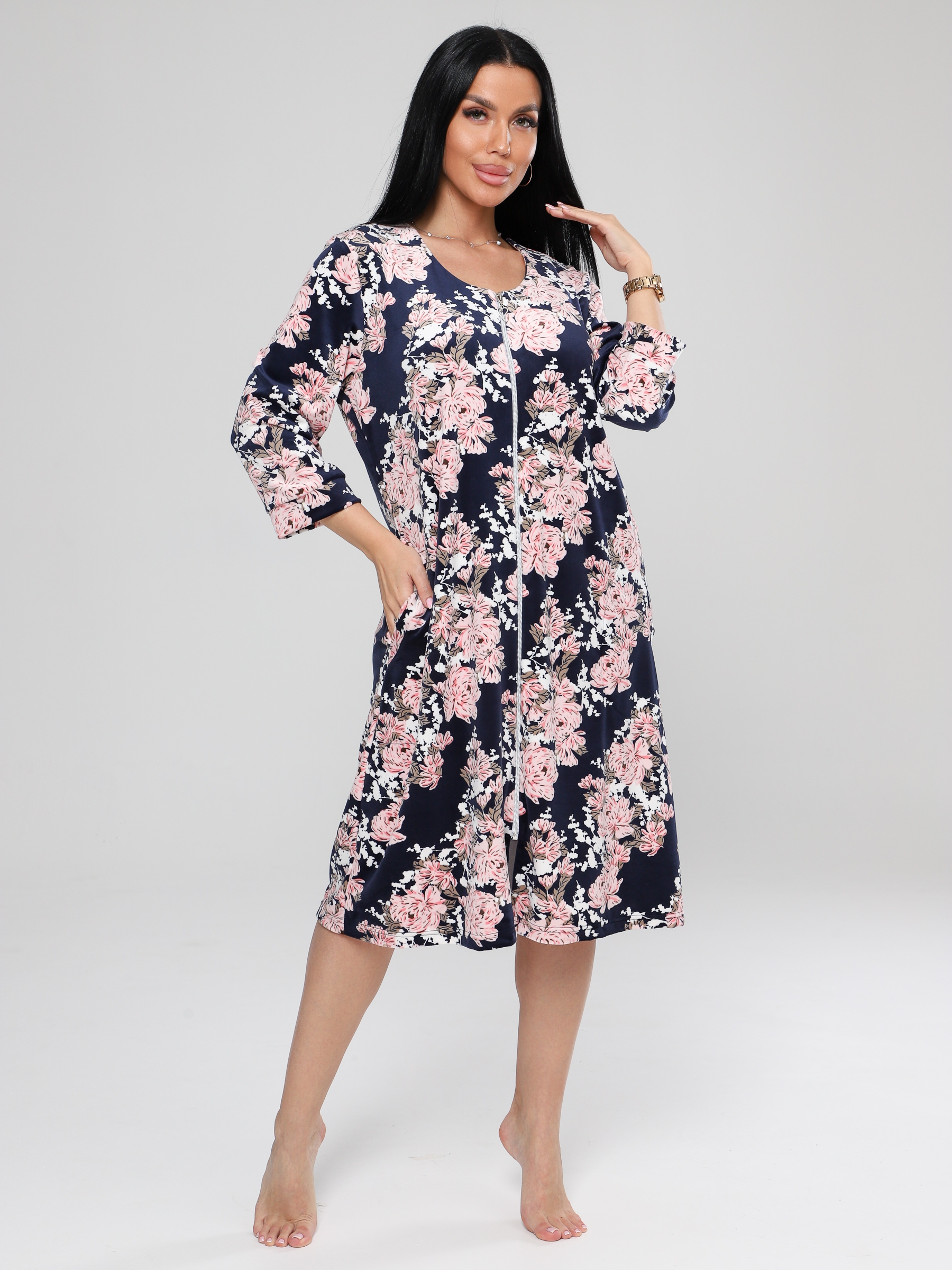 Женский халат Х-80(В) / Темно-синий (розовые цветы)