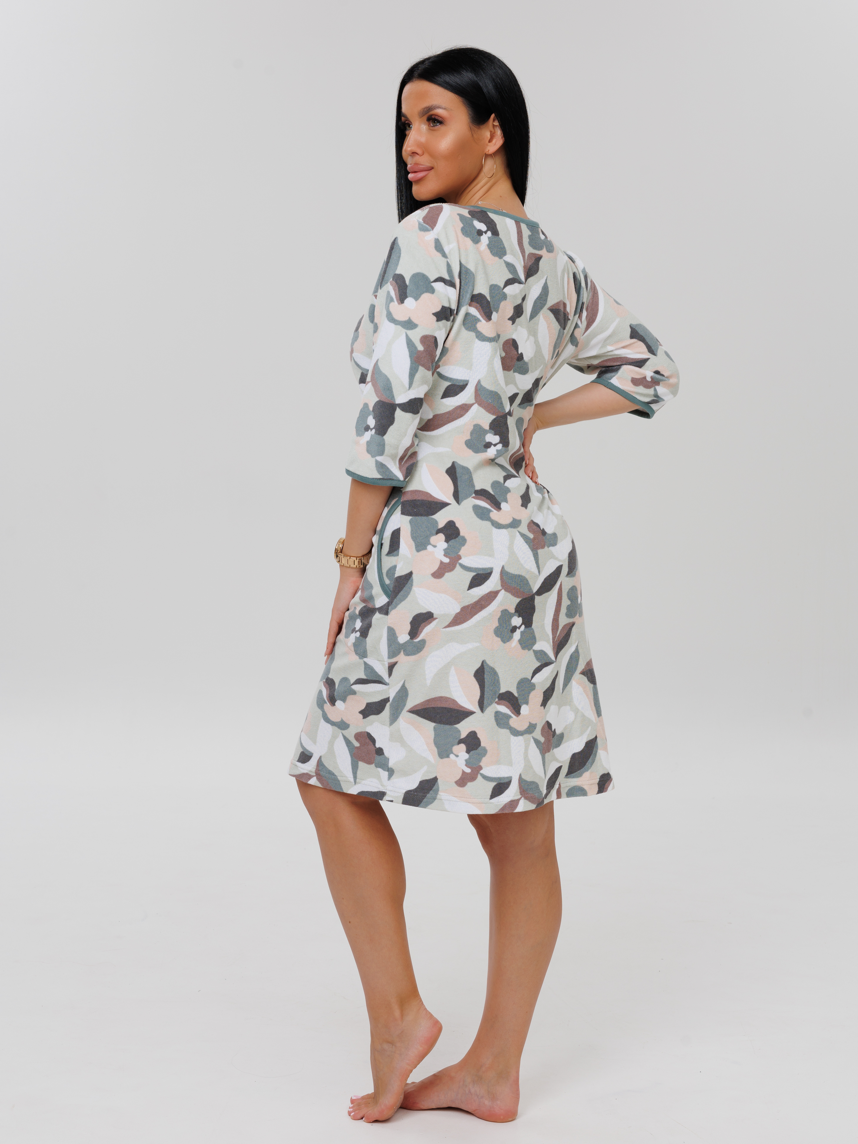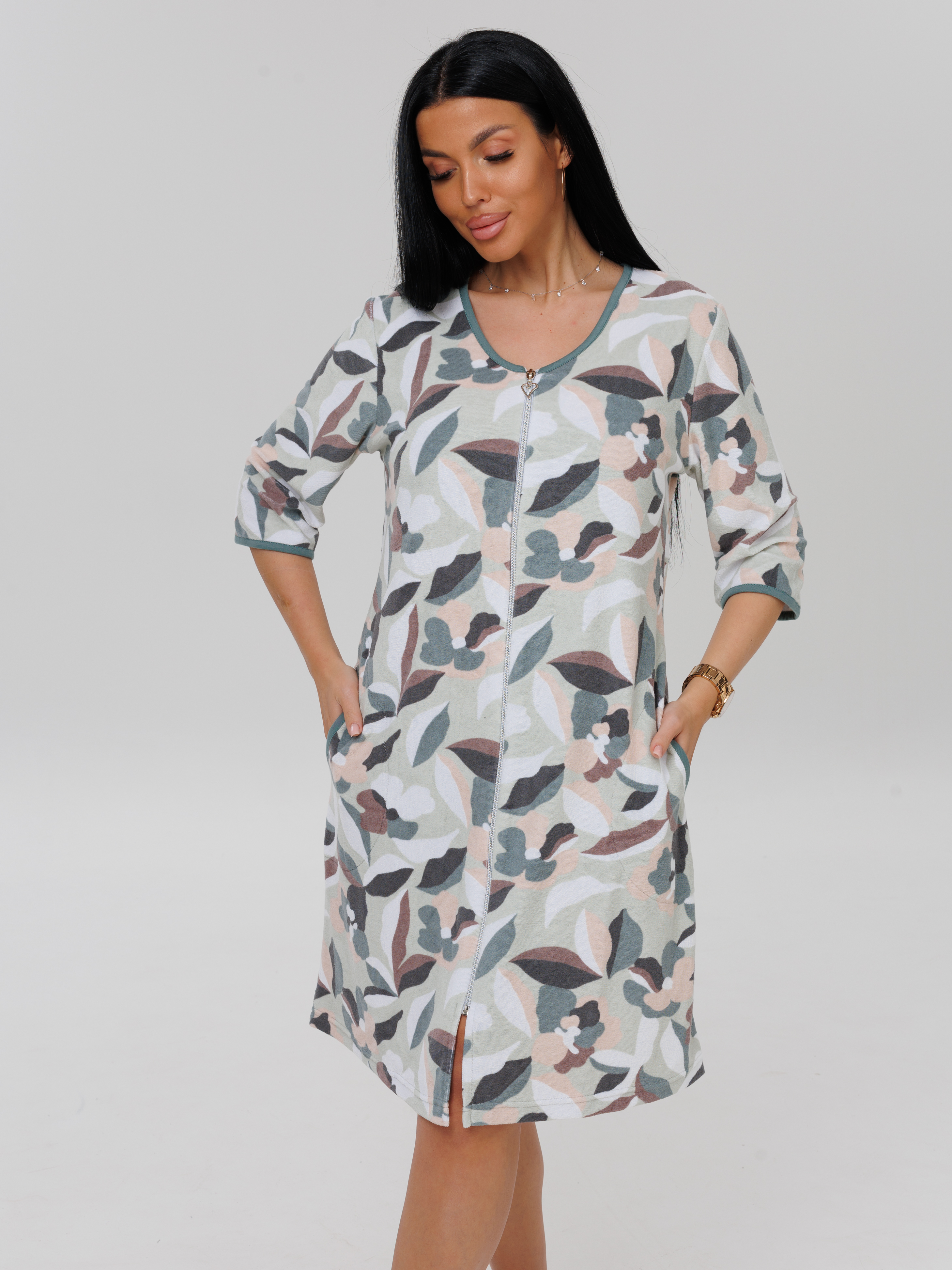 Женский халат Х-86(М) / Оливковый (узоры)