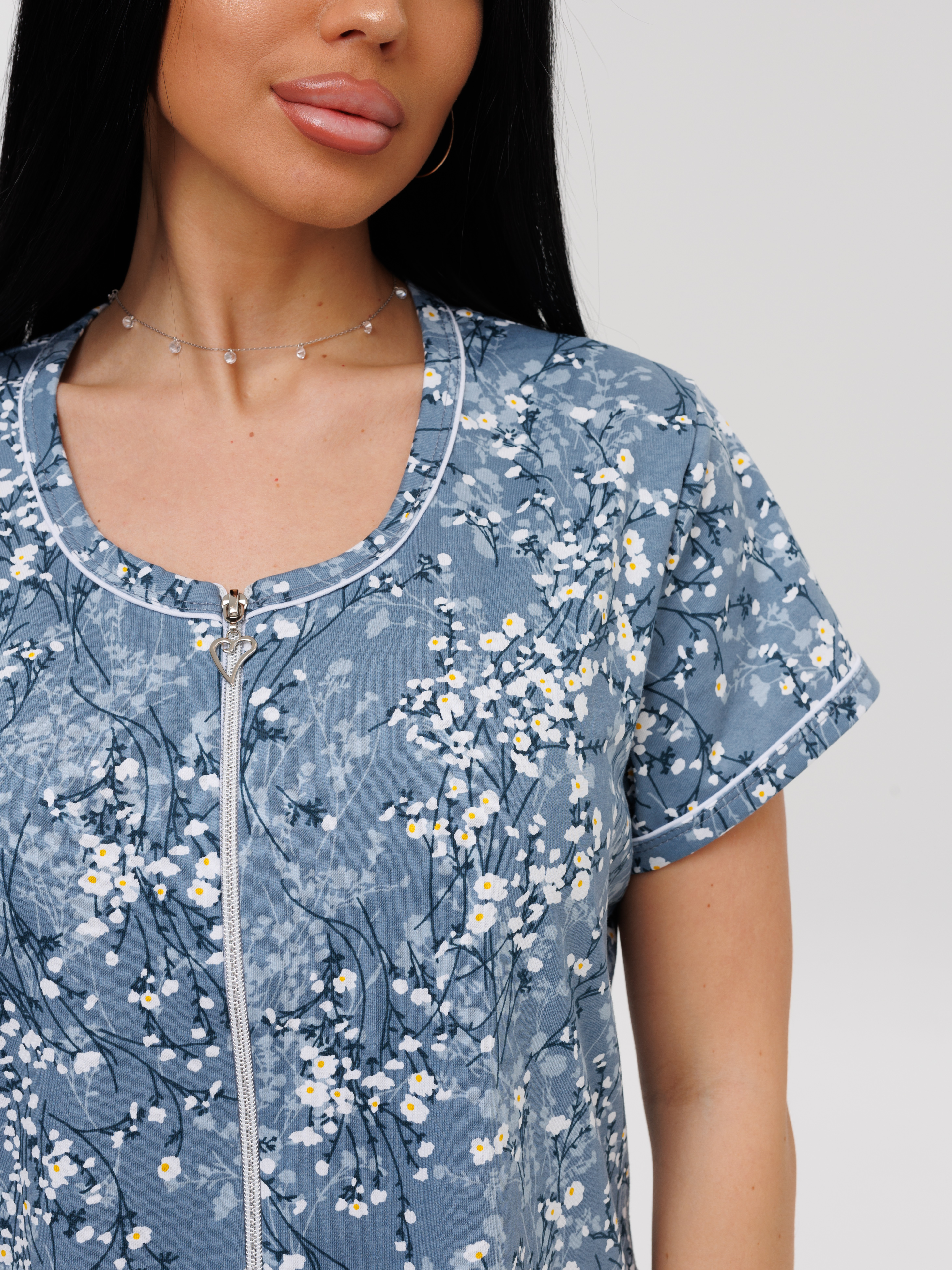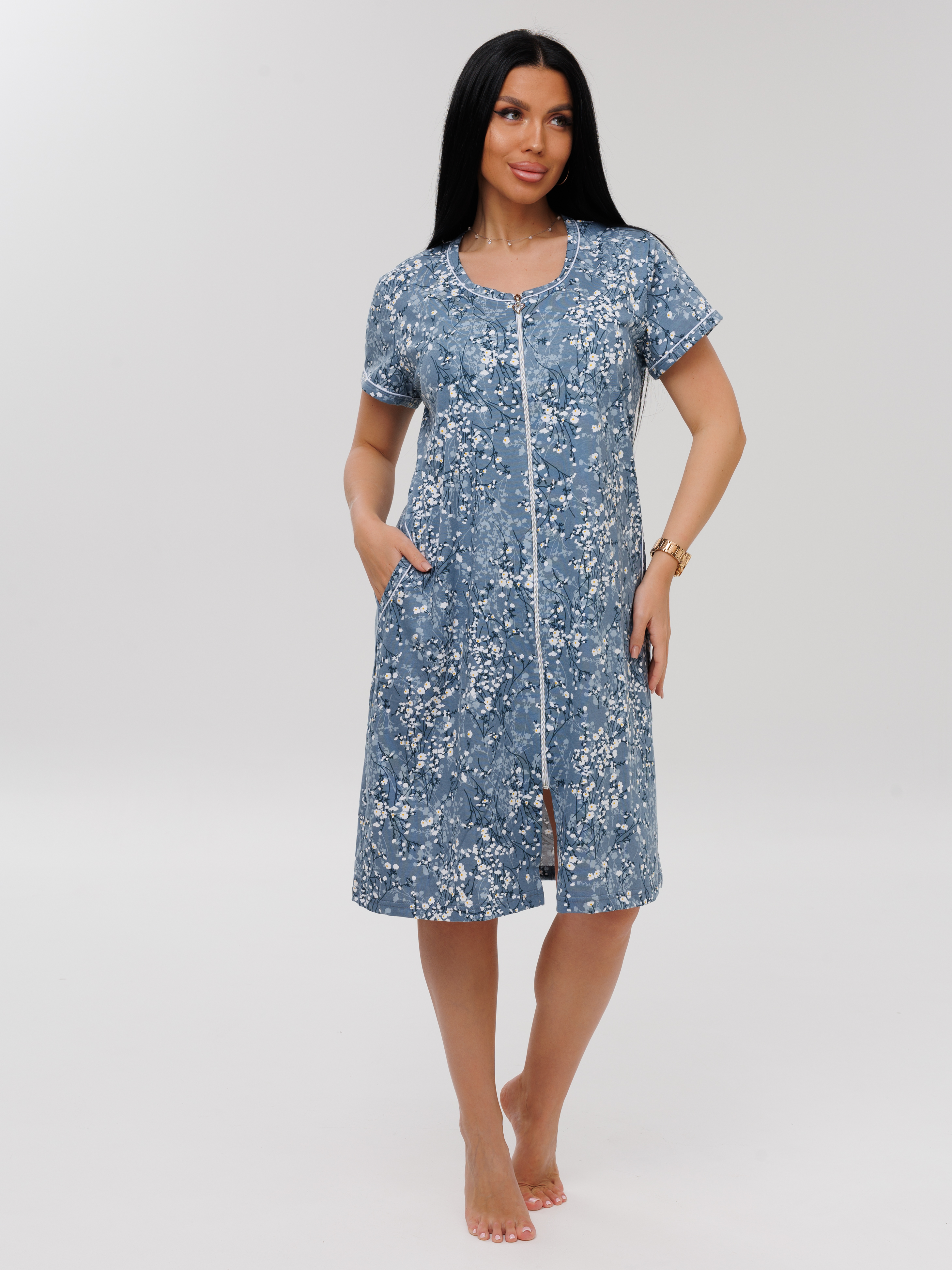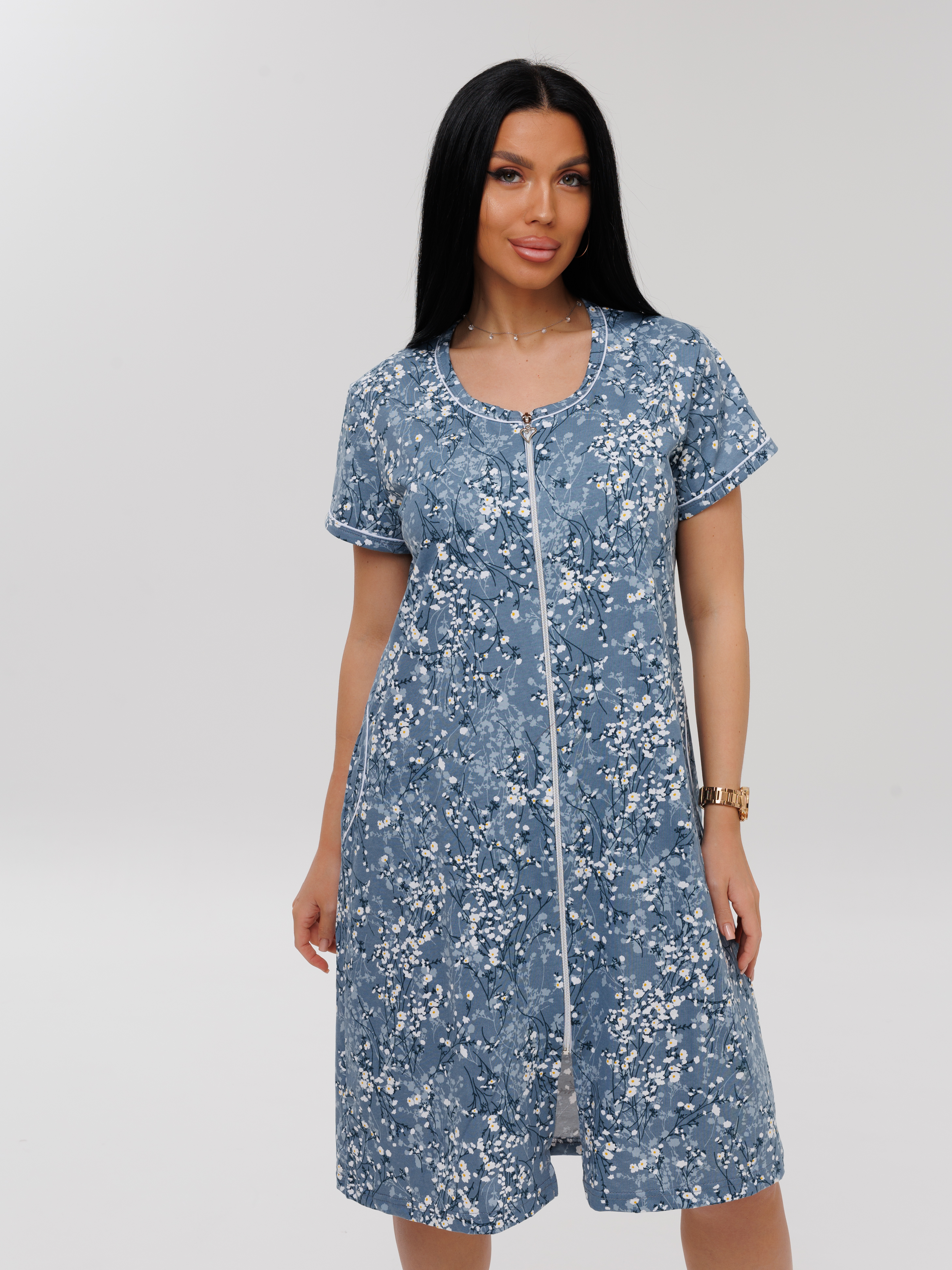 Женский халат Х-95(К) / Серо-голубой (цветы)