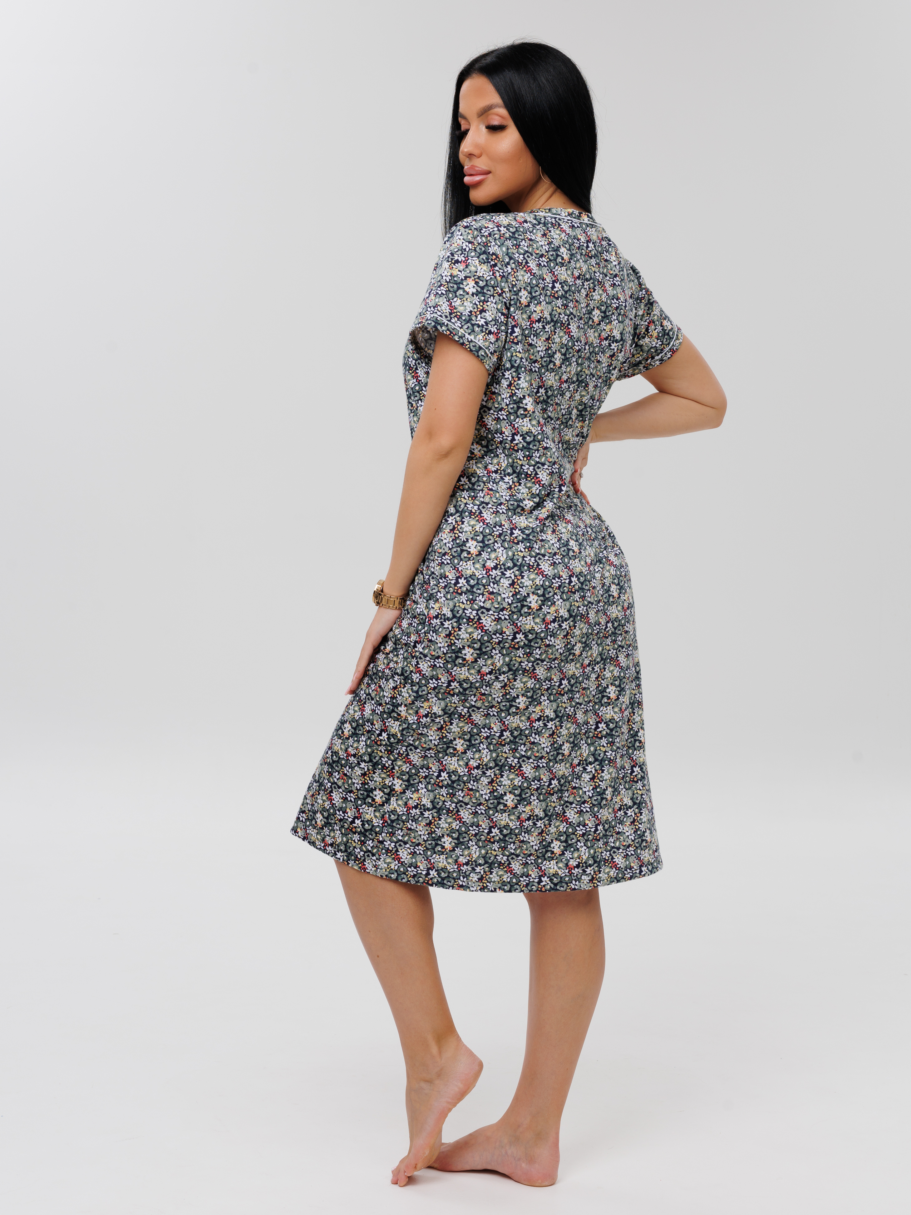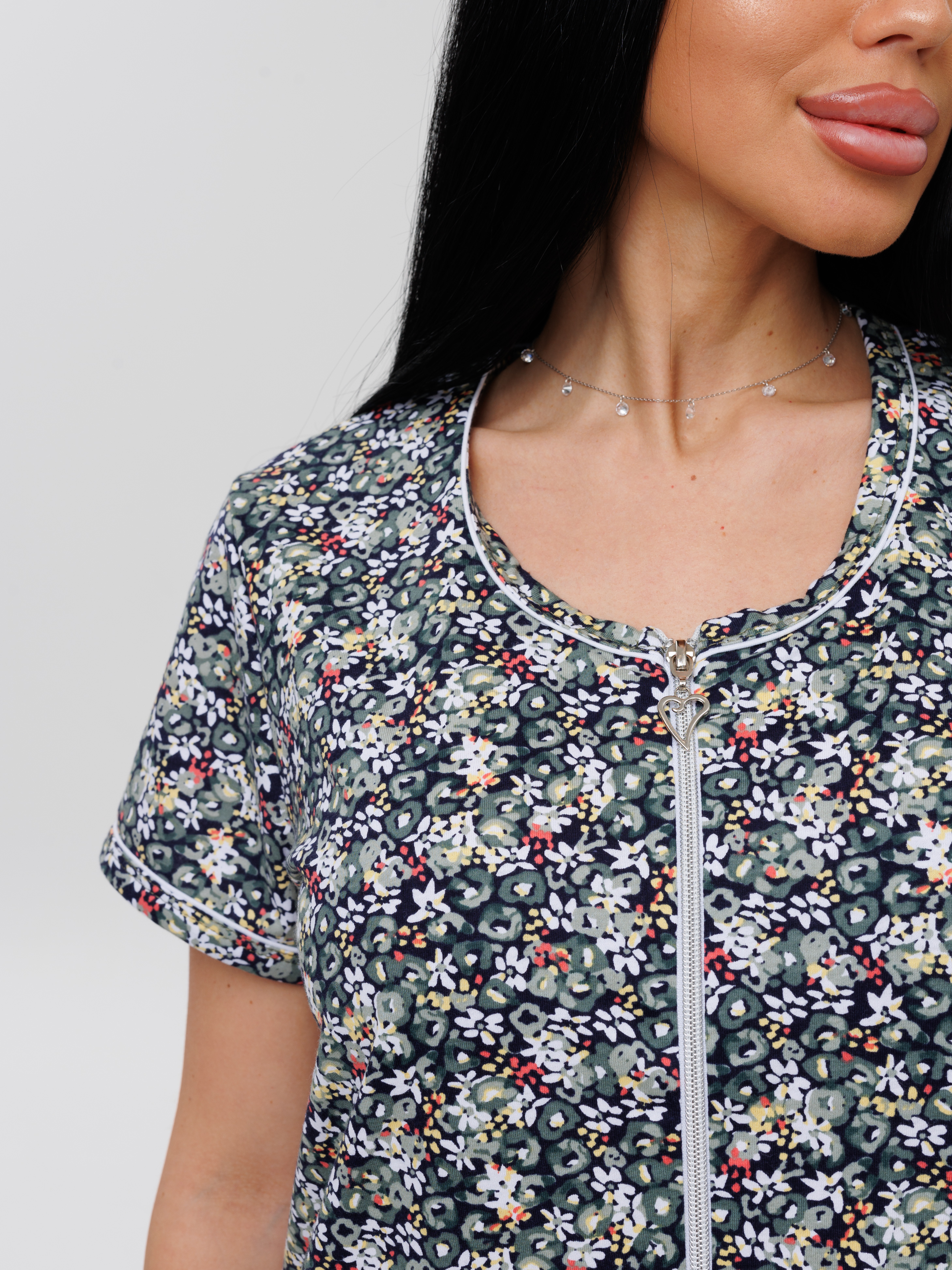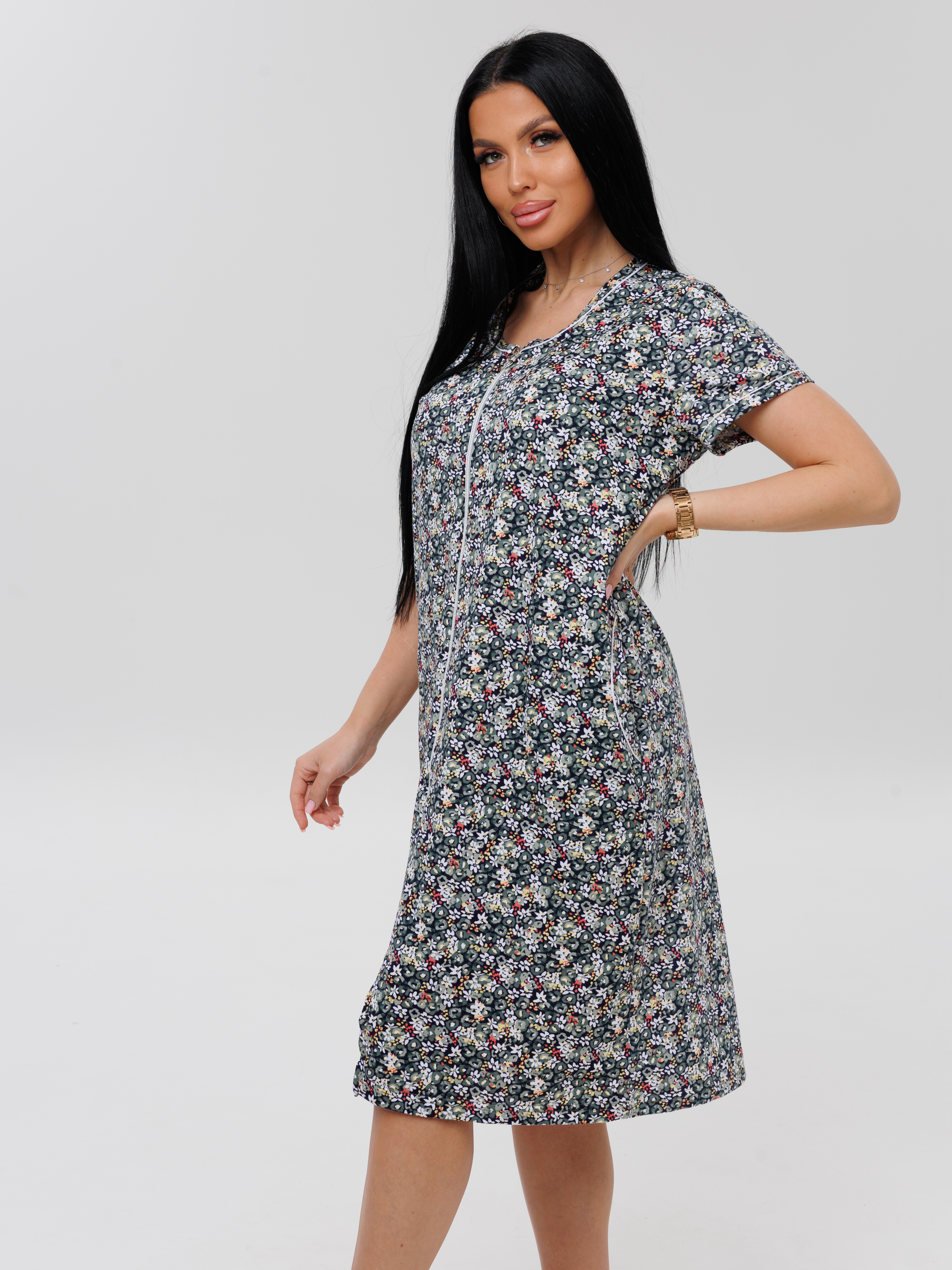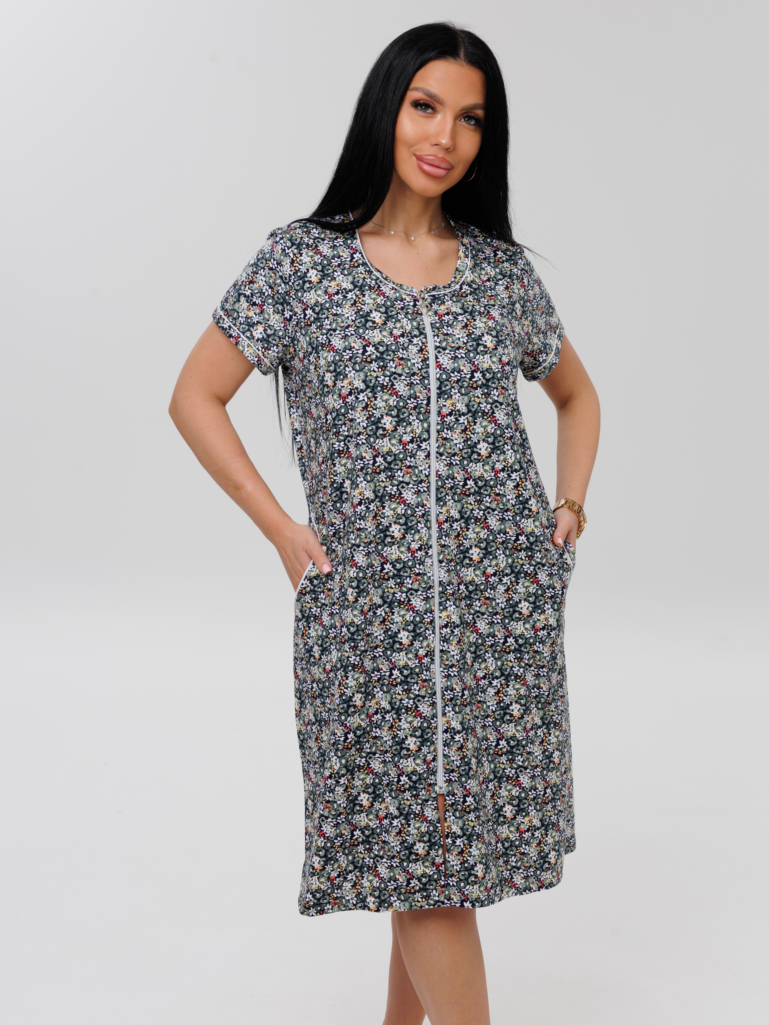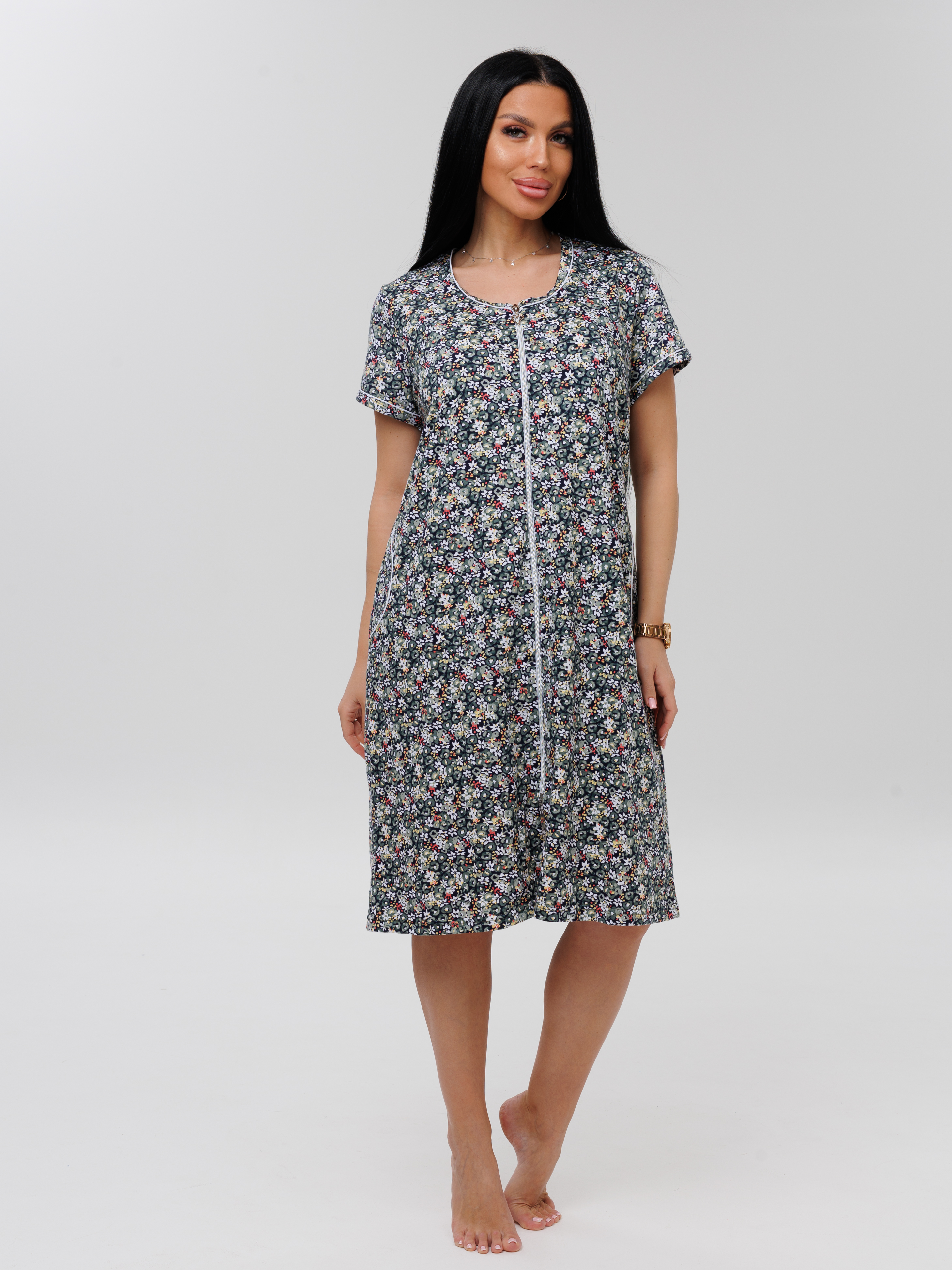 Женский халат Х-95(К) / Серо-зеленый (мелкие цветы)
