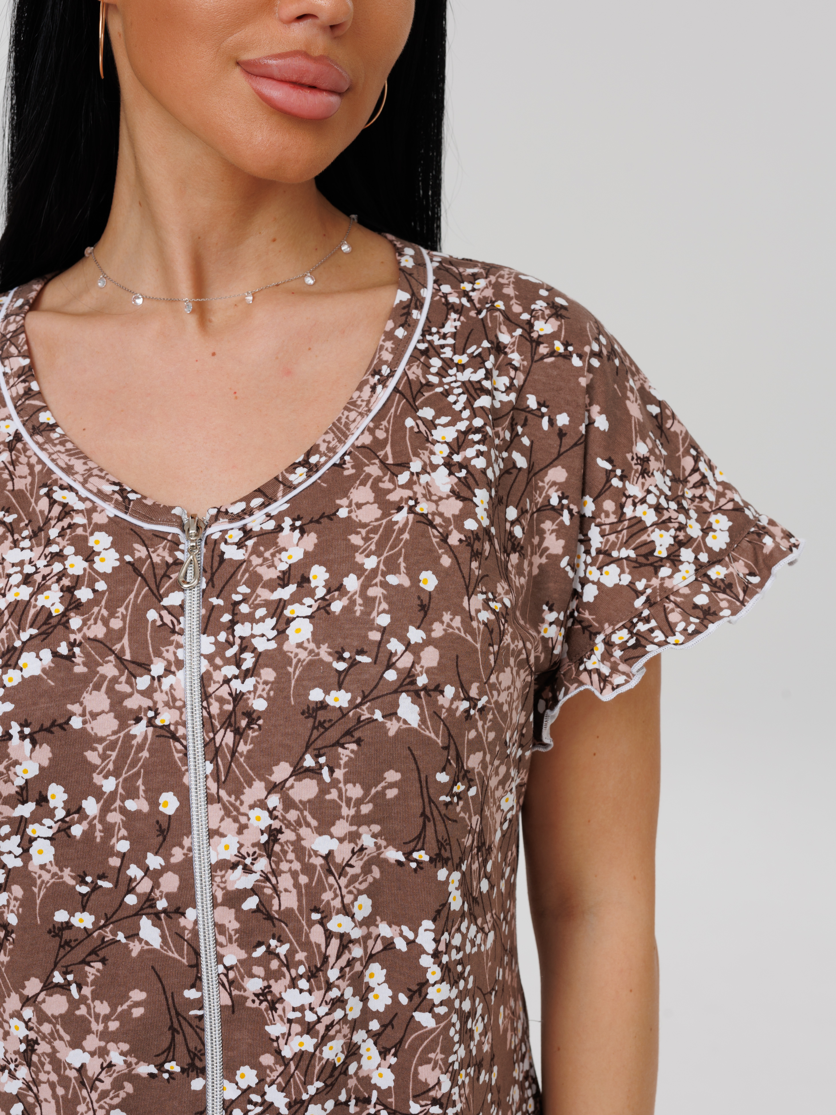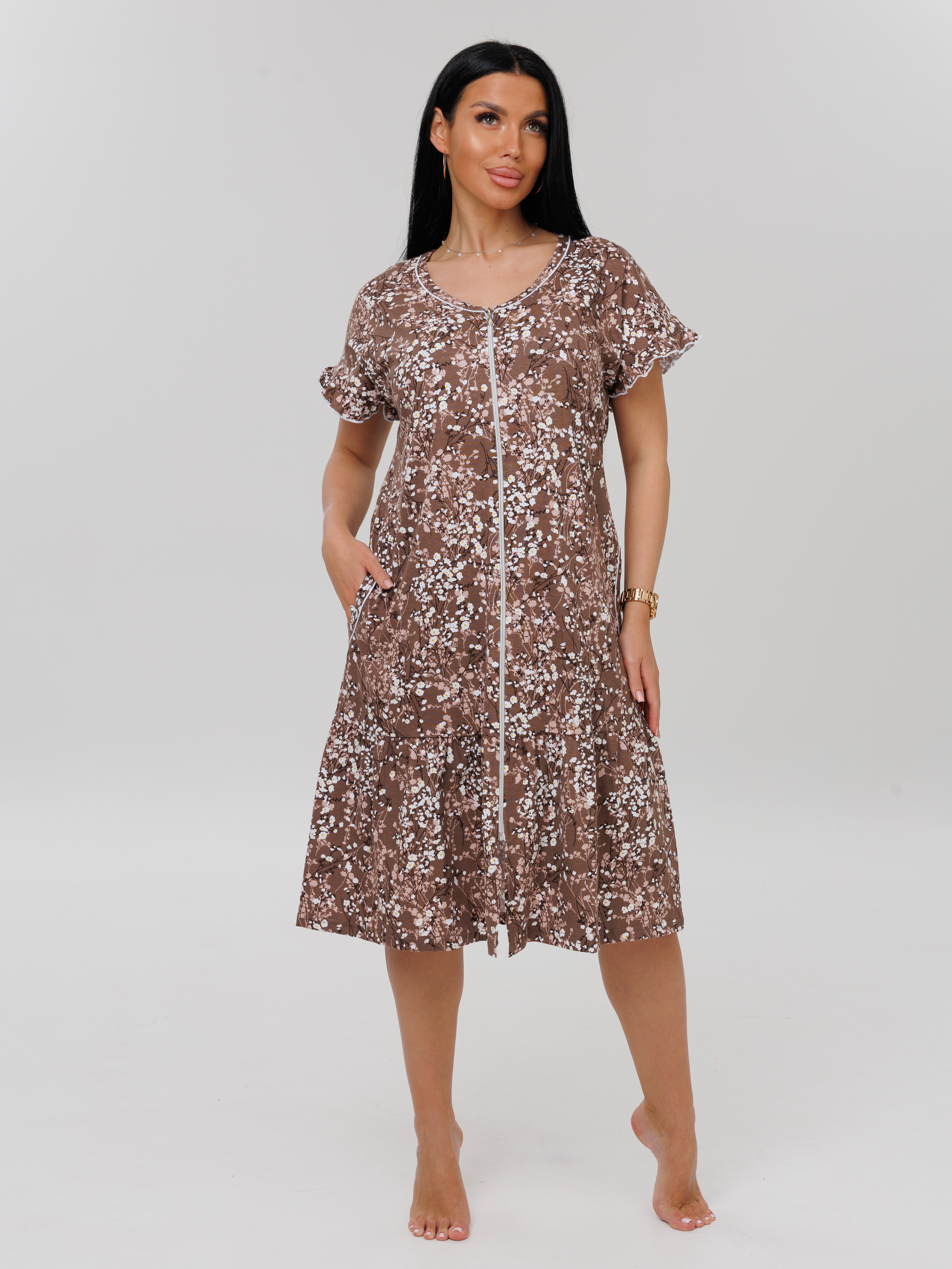 Женский халат Х-98(К) / Коричневый (мелкие цветы)