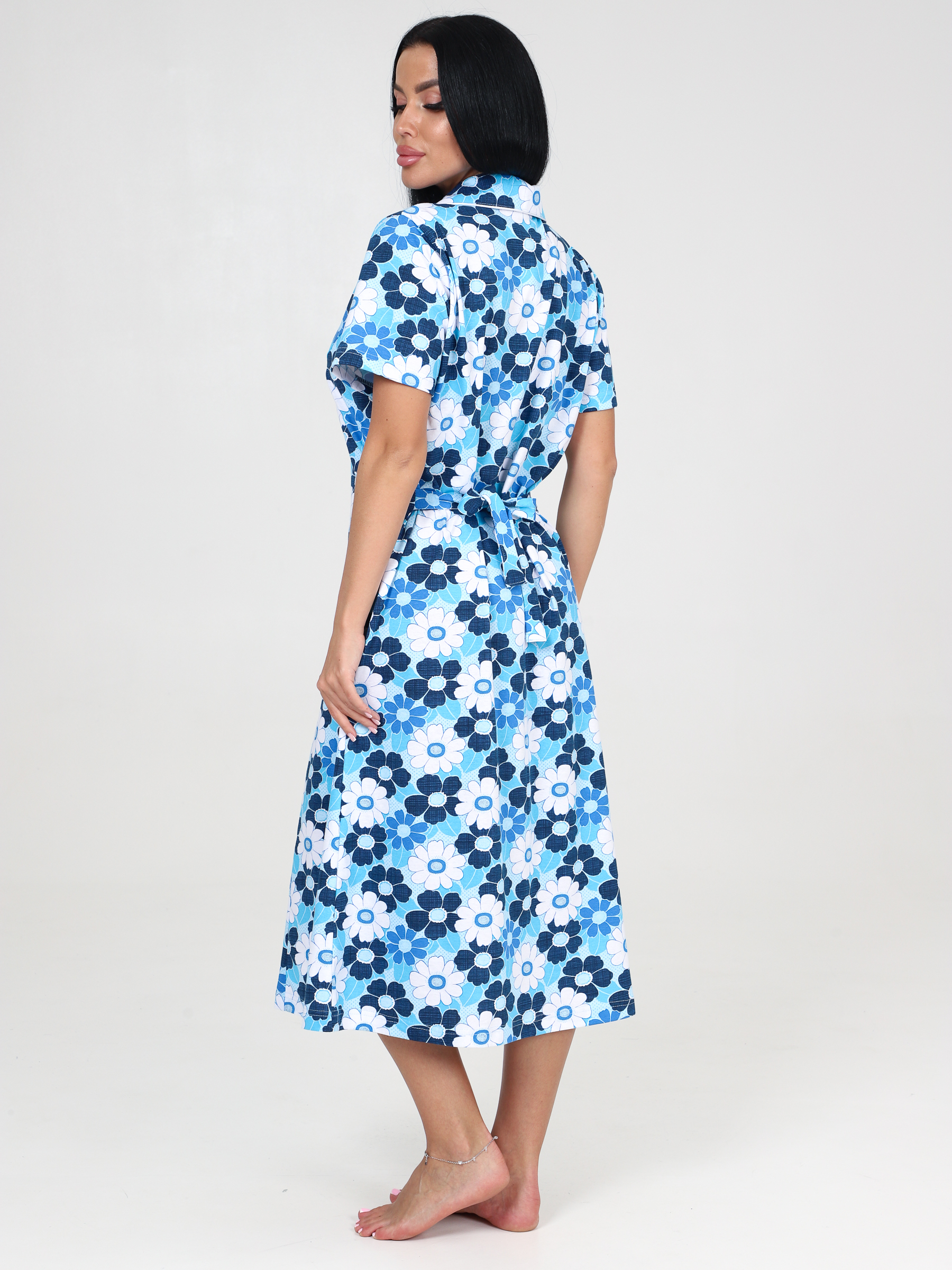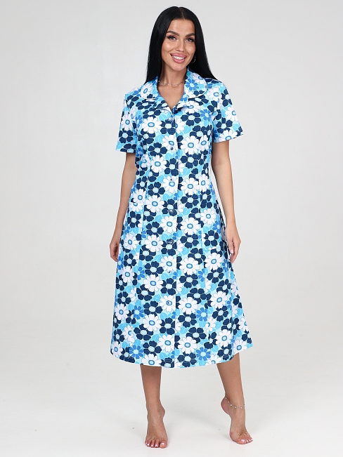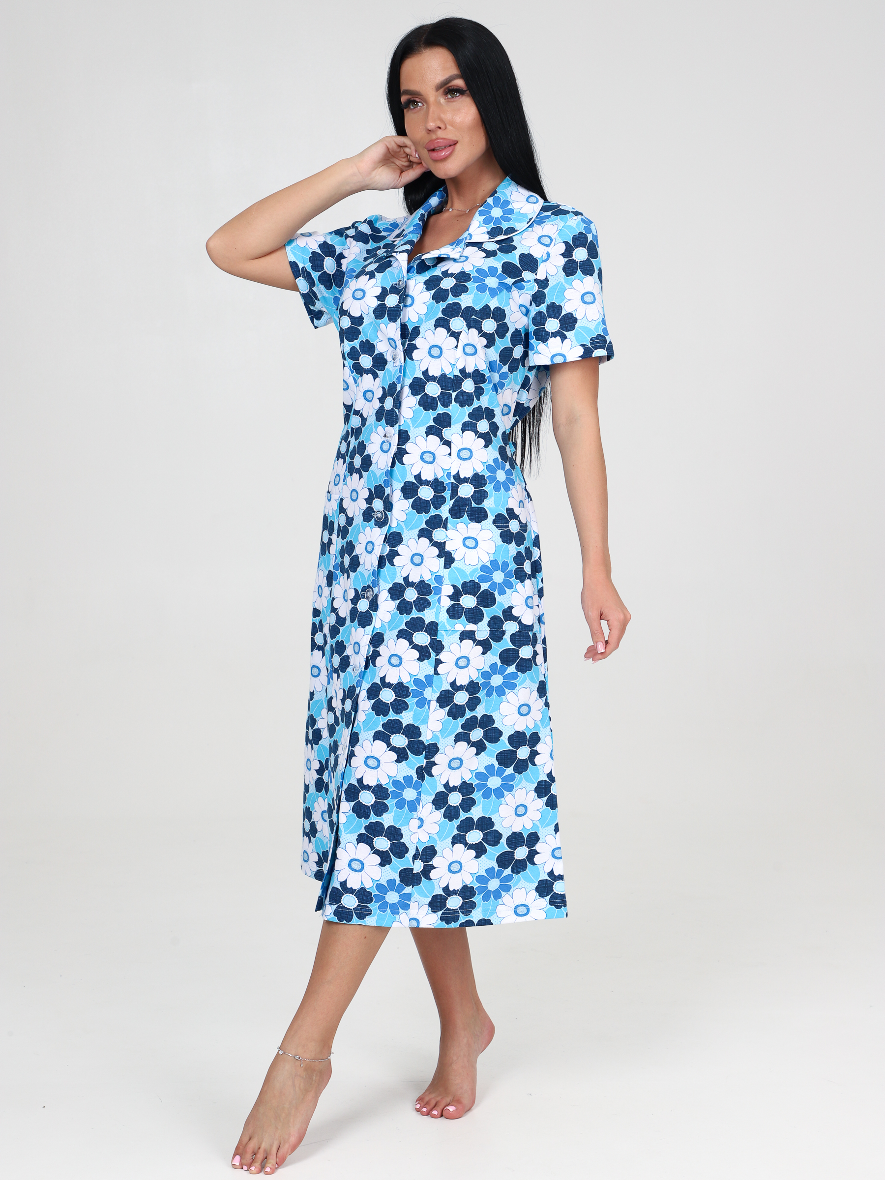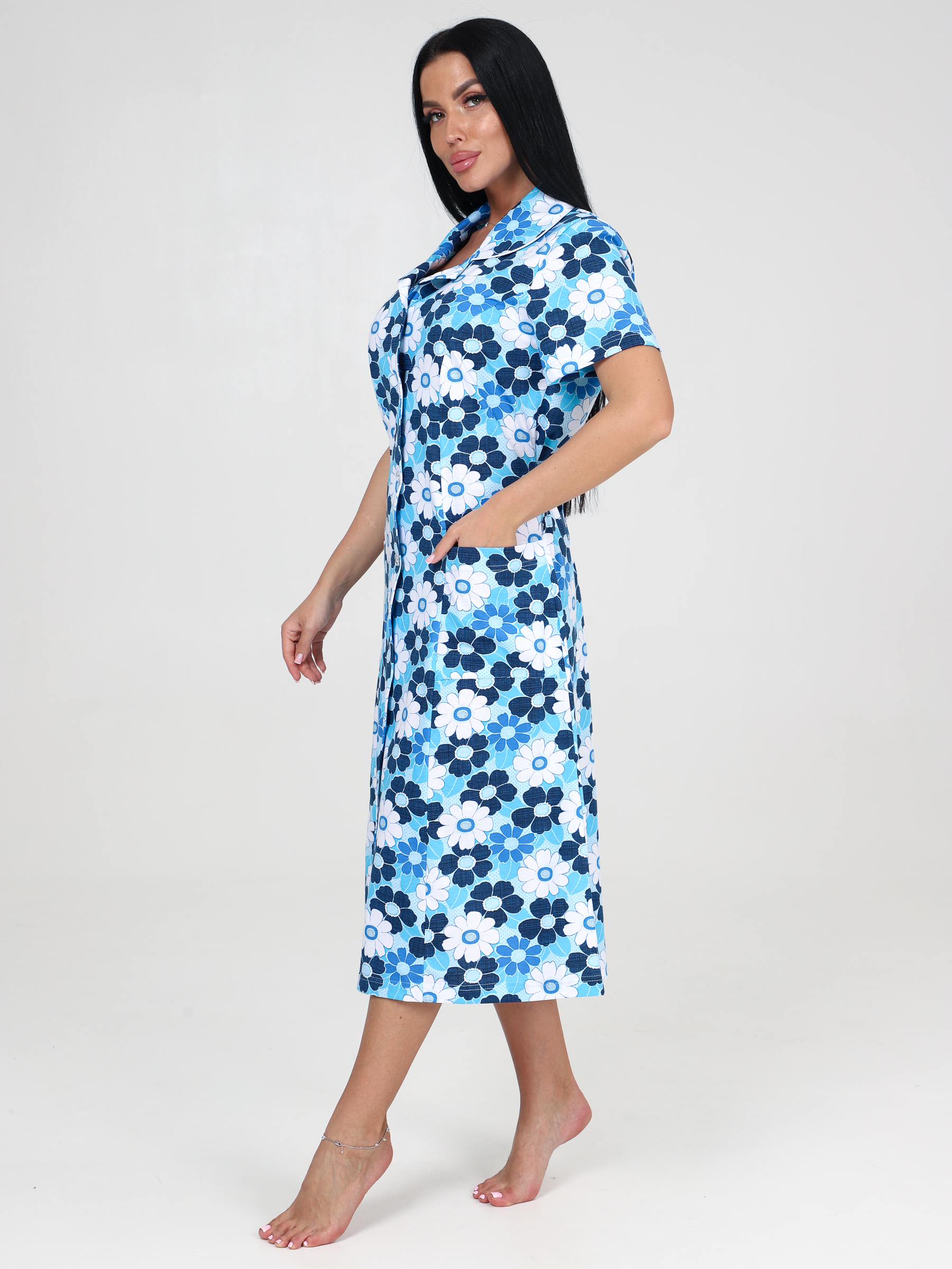 Халат из кулирки хк-546, на пуговицах, воротник окантован кантом, 2 накладных кармана, в боковых швах 2 пояска.