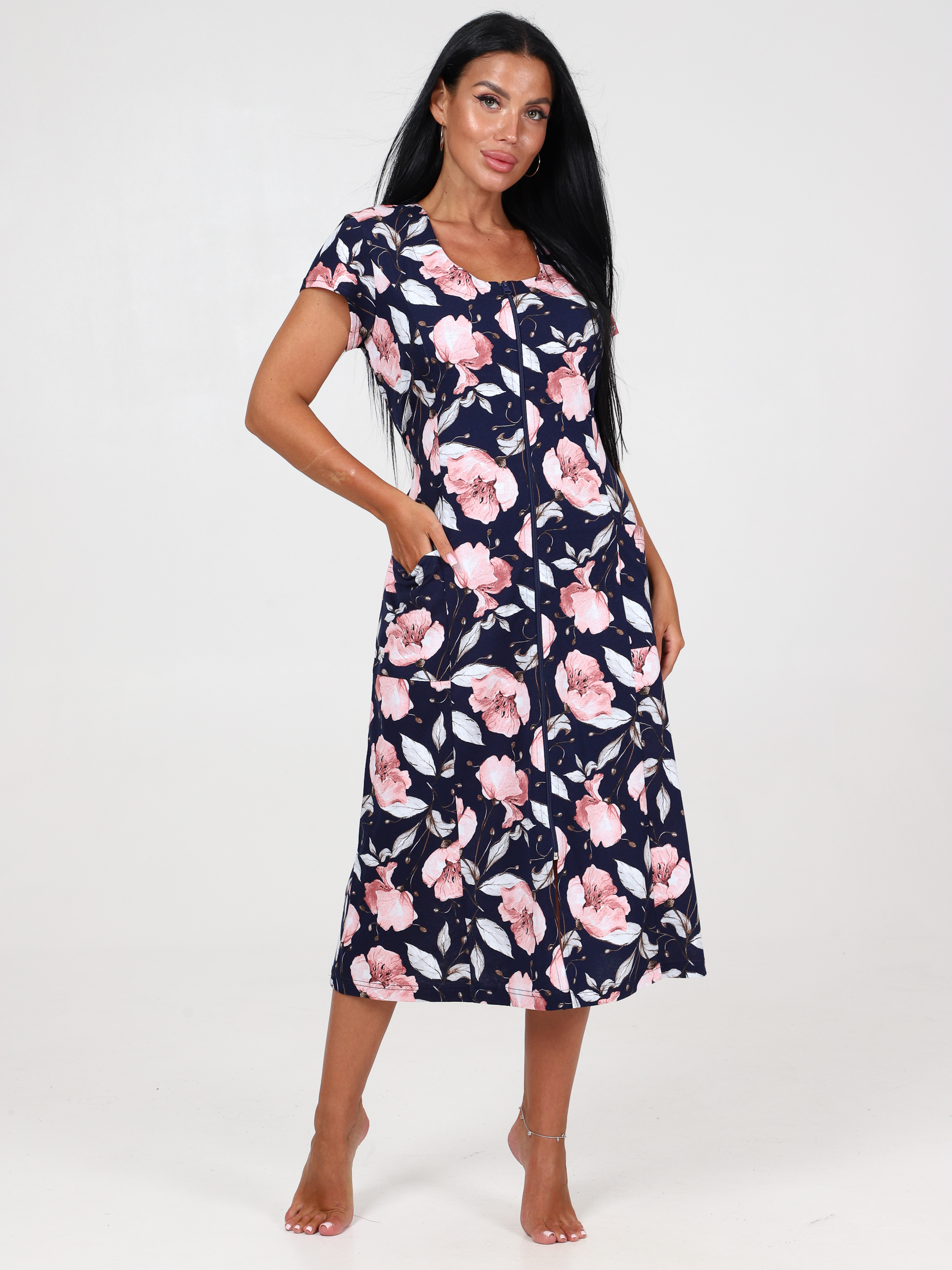 Халат на молнии из кулирки, с двумя накладными карманами, в боковых швах два пояска (для того, чтобы смоделировать талию). Халат трикотажный больших размеров пользуется большой популярностью круглый год. Очень удобен и практичен в носке. Халат удобен для дома и дачи. Халат из хлопка можно взять в поездку, путешествие, или на отдых в санаторий. Халат больших размеров отлично впишется в домашний гардероб, будет долго служить как домашняя одежда. Халат отлично подойдет на любой рост: для высоких, для среднего роста и для низких девушек и женщин.