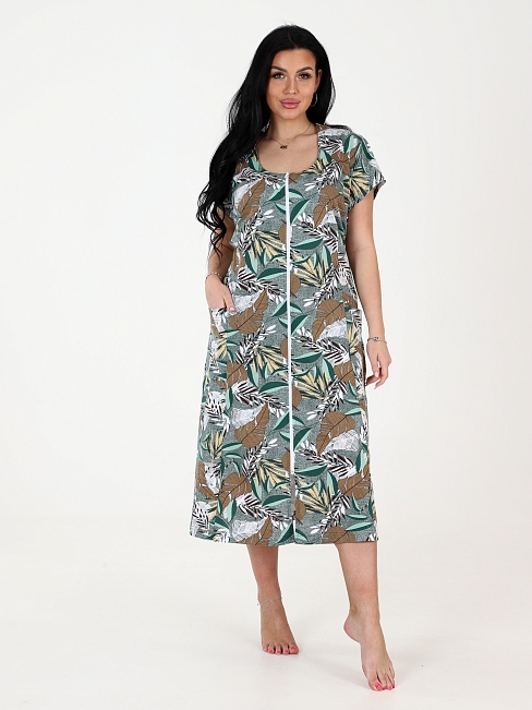 Халат на молнии из кулирки, с двумя накладными карманами, в боковых швах два пояска (для того, чтобы смоделировать талию). Халат трикотажный больших размеров пользуется большой популярностью круглый год. Очень удобен и практичен в носке. Халат удобен для дома и дачи. Халат из хлопка можно взять в поездку, путешествие, или на отдых в санаторий. Халат больших размеров отлично впишется в домашний гардероб, будет долго служить как домашняя одежда. Халат отлично подойдет на любой рост: для высоких, для среднего роста и для низких девушек и женщин.