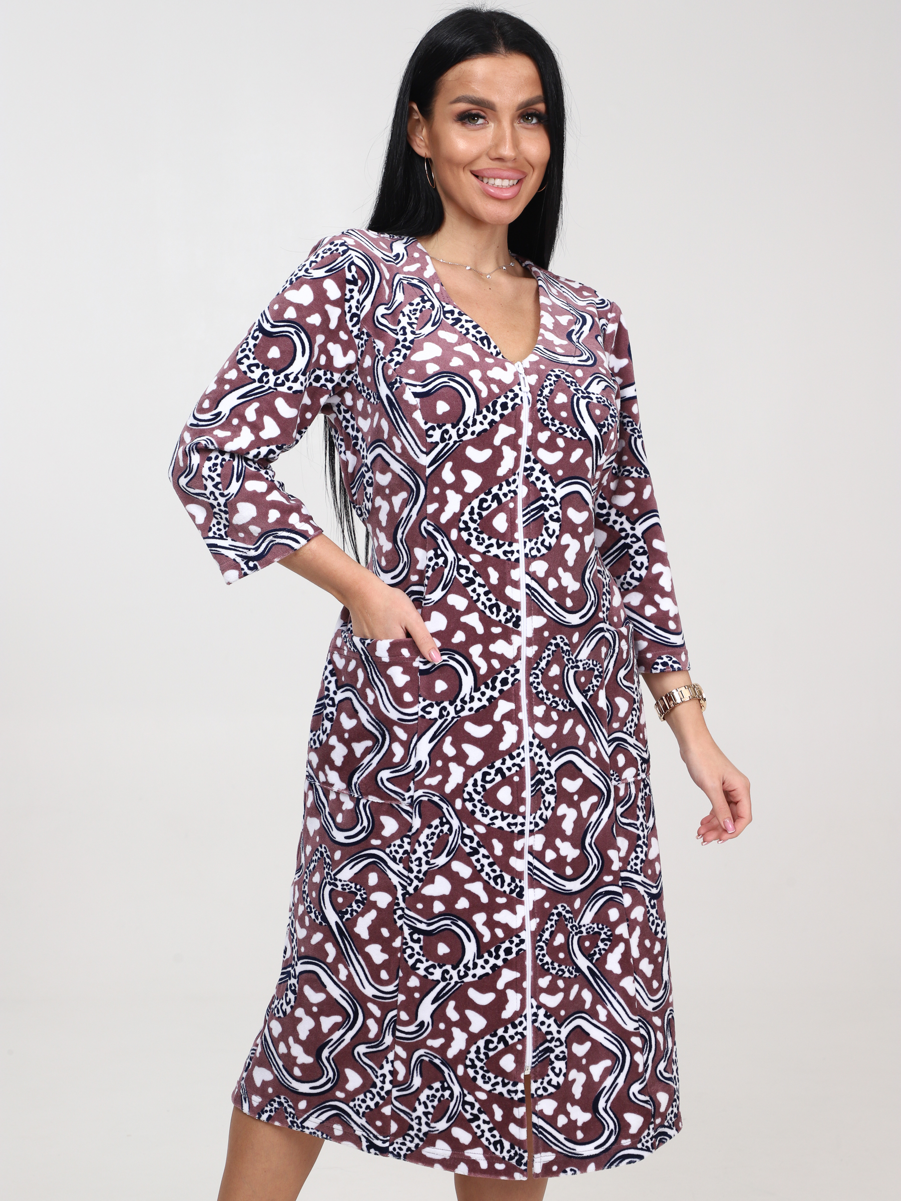 Женский халат ХВ-341 Абстракция с лео, на какао