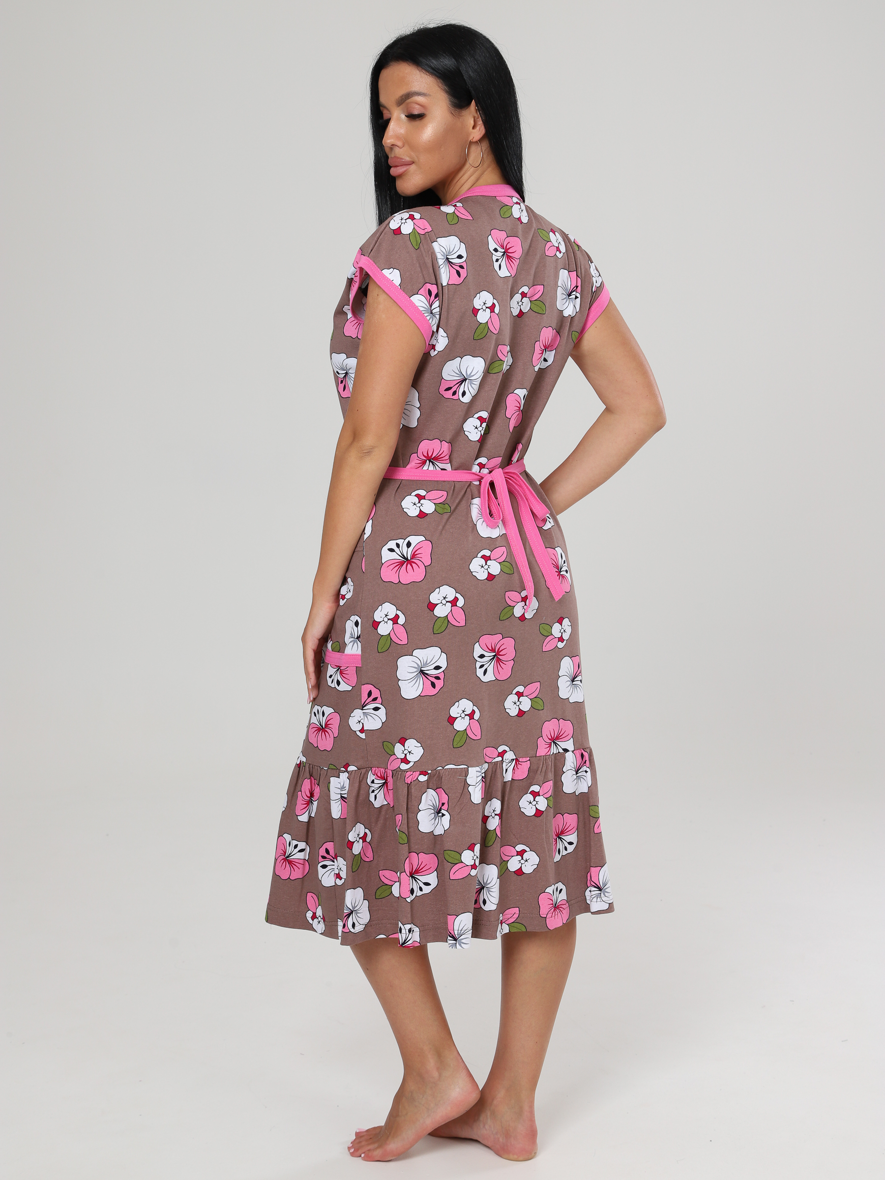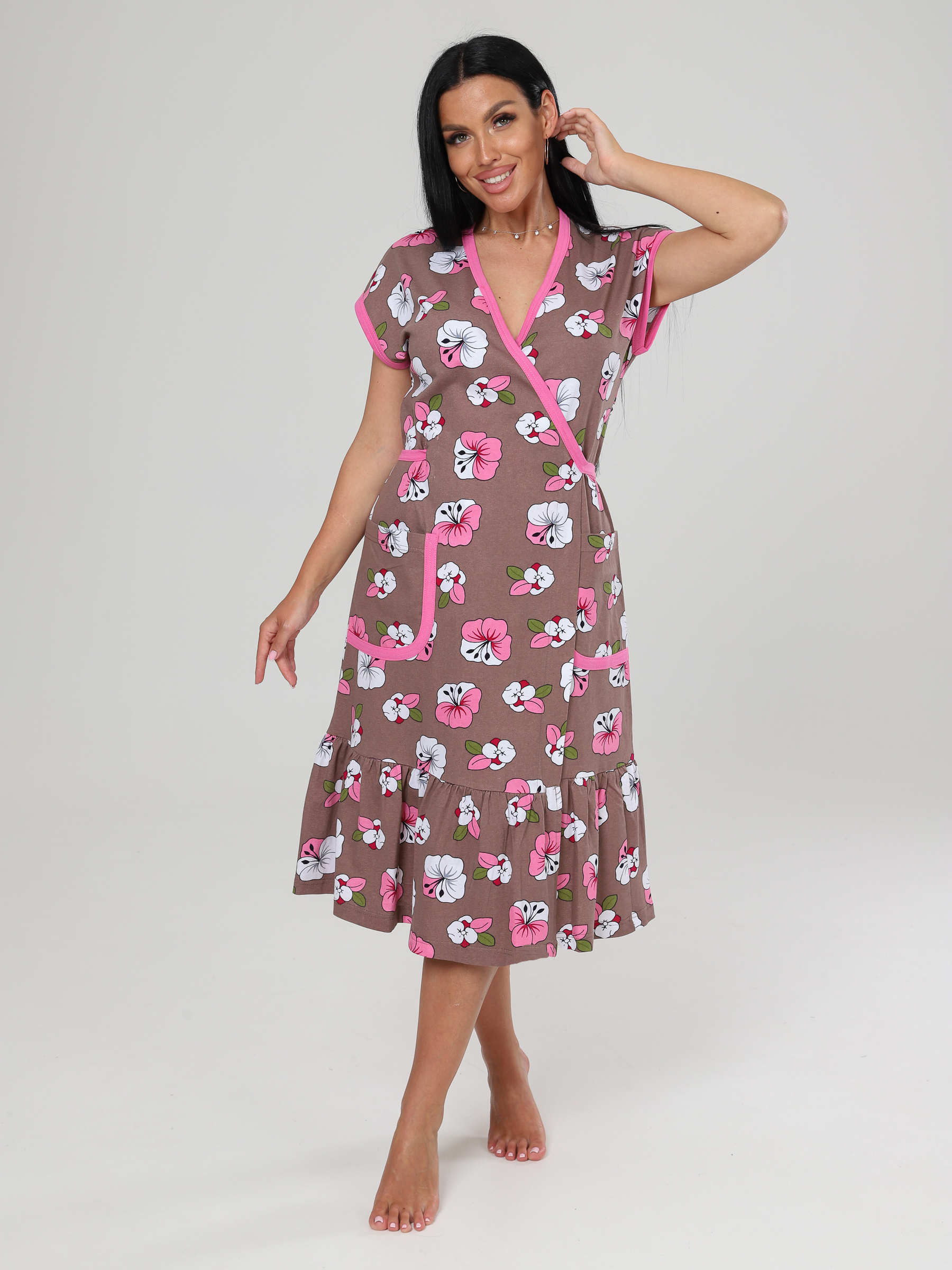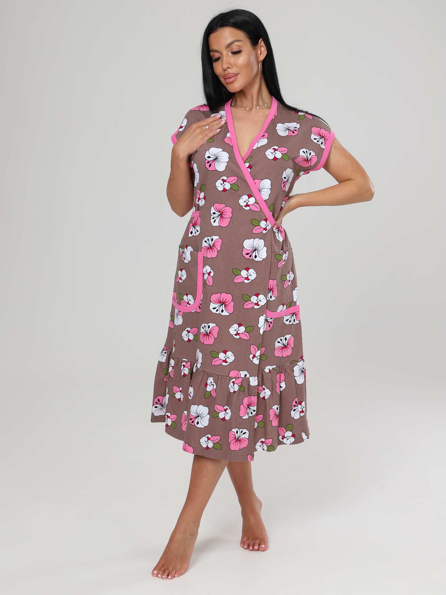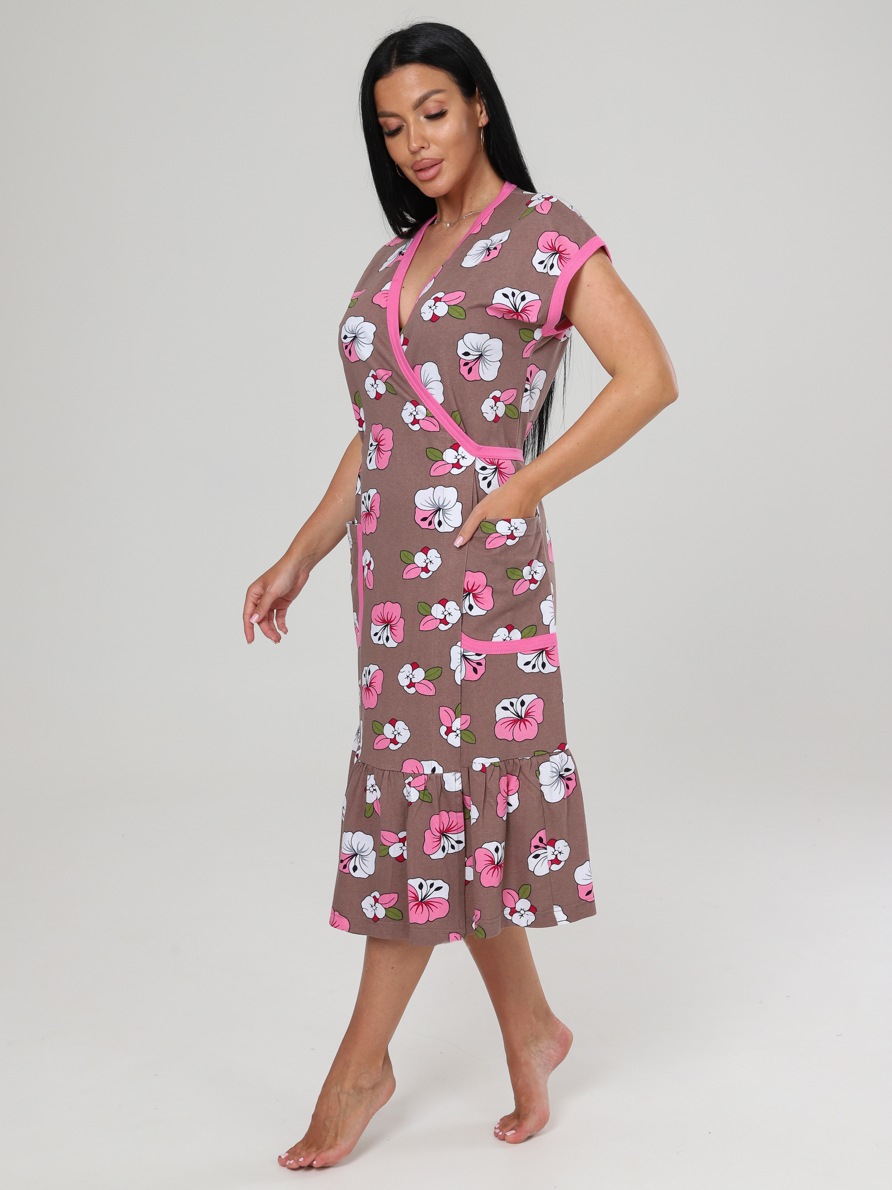 Халат "Кимоно" на запах, по низу широкая оборка, 2 накладных кармана.