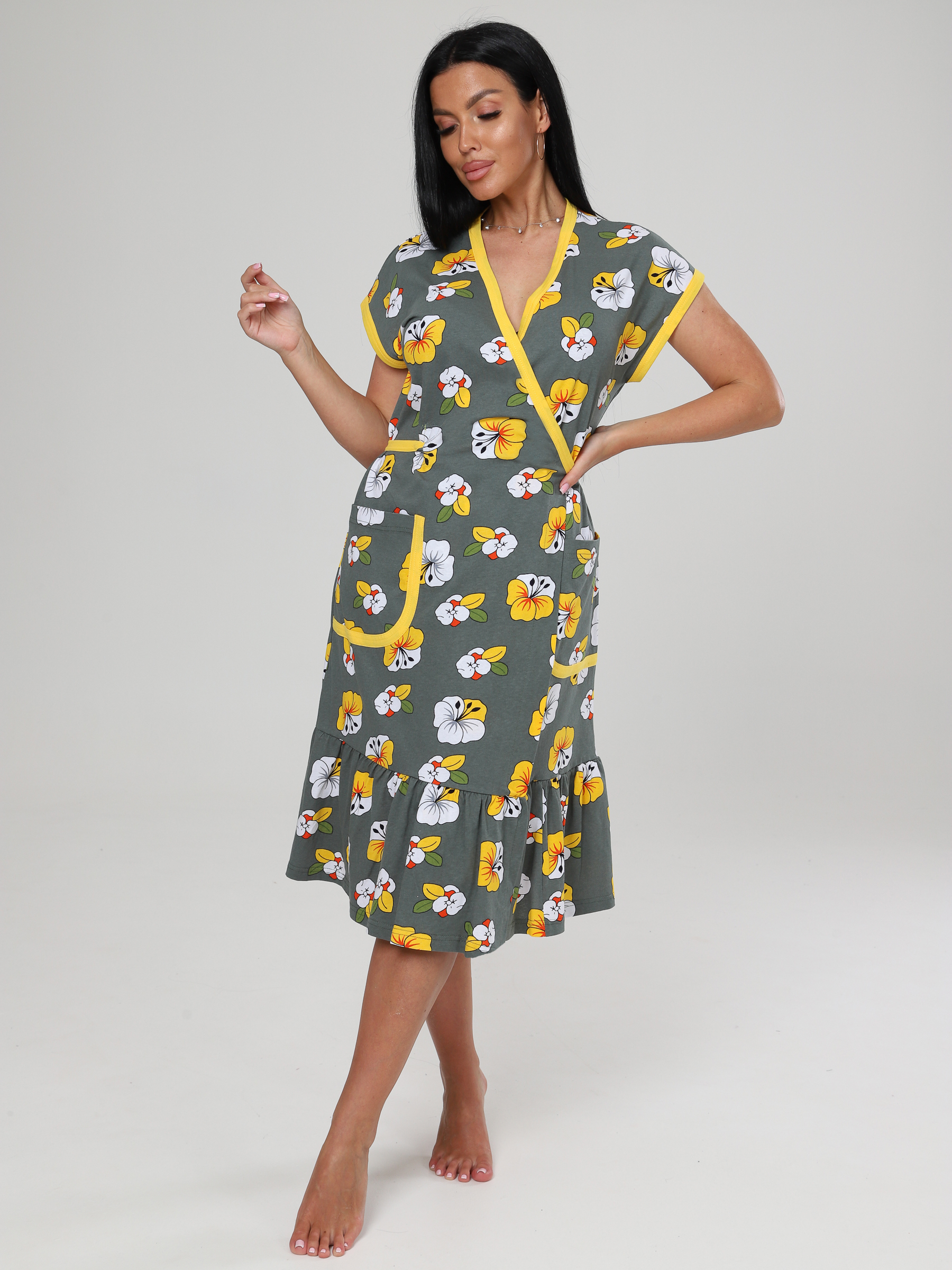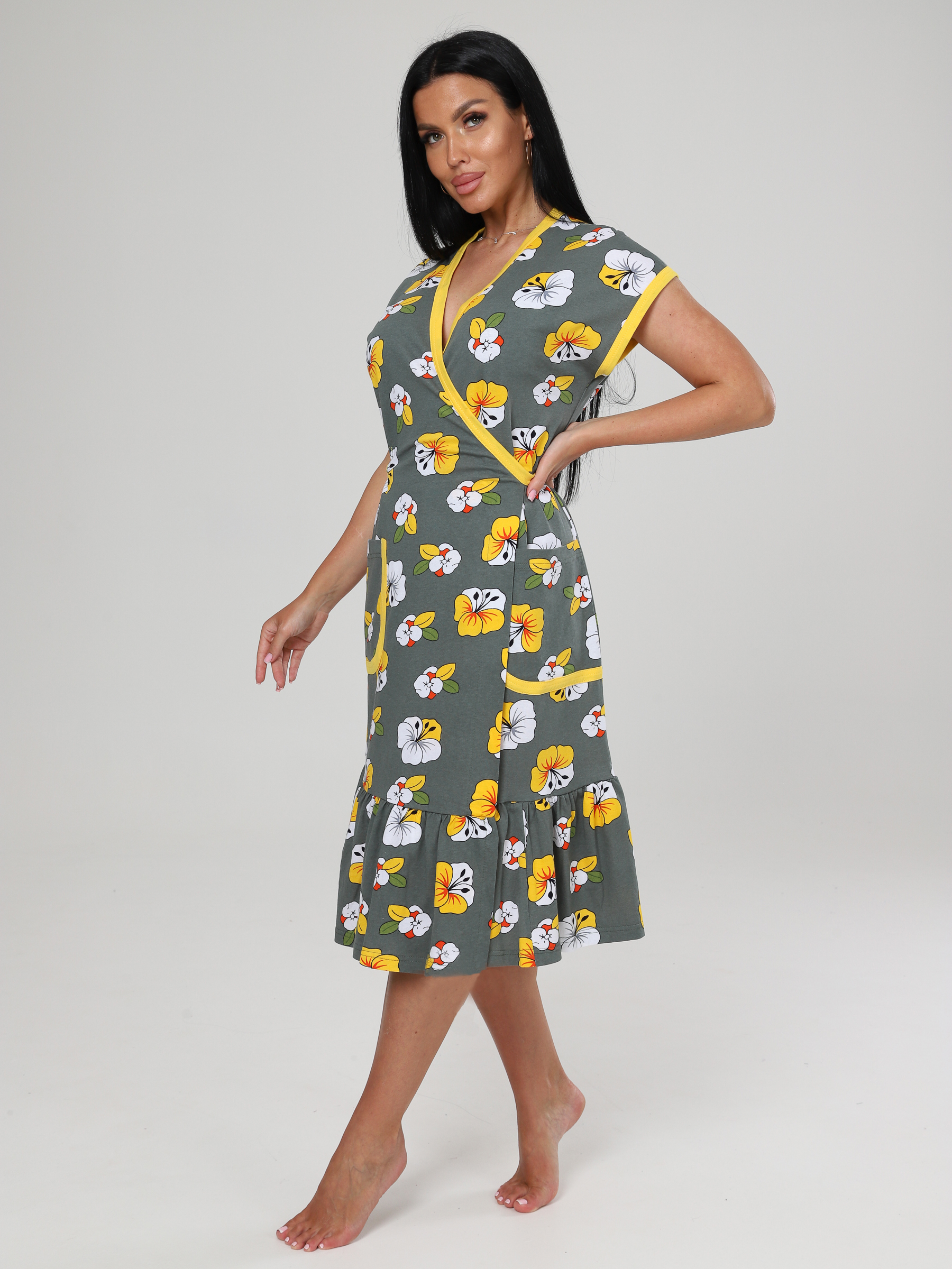 Халат "Кимоно" на запах, по низу широкая оборка, 2 накладных кармана.
