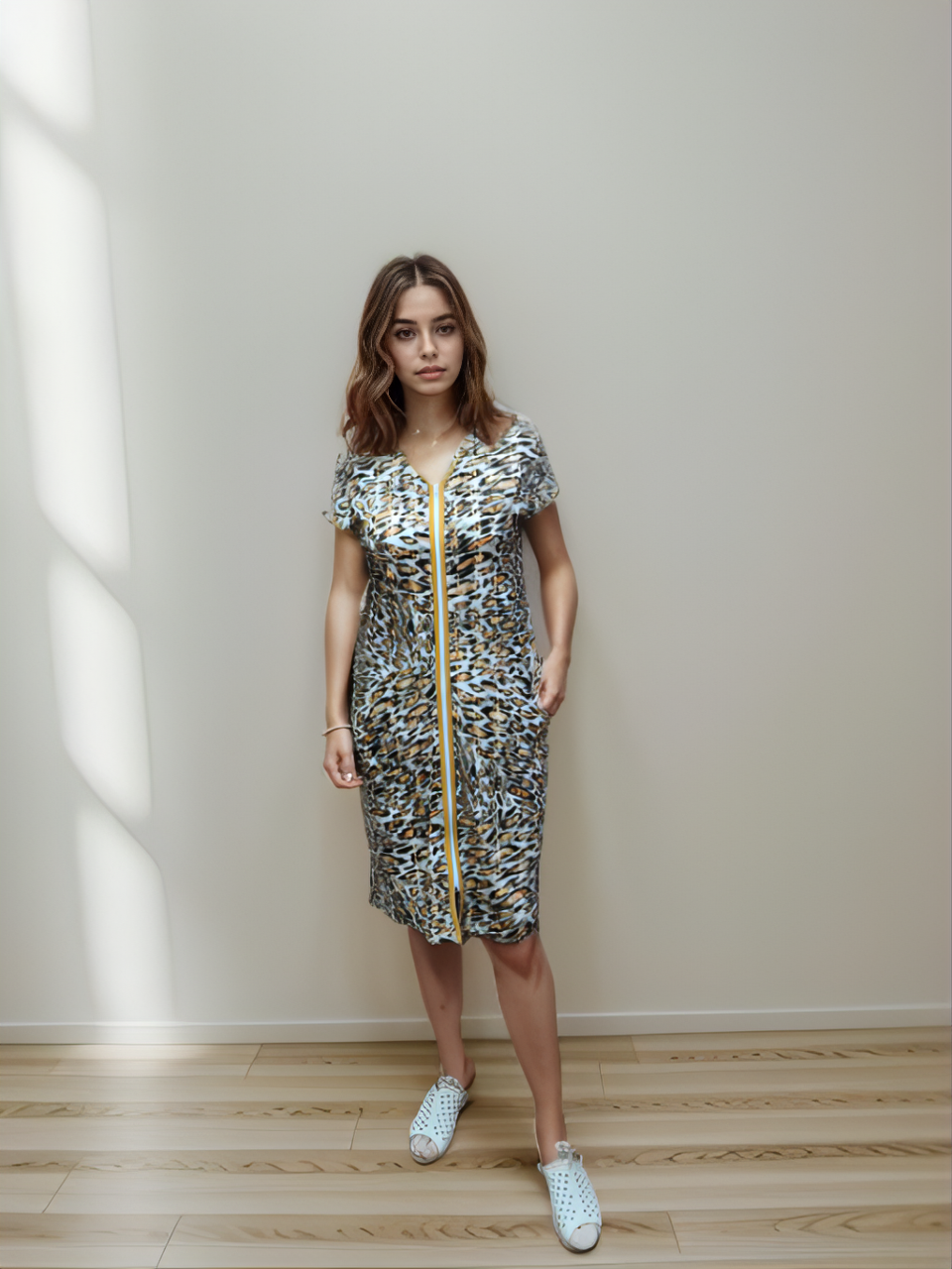 Женский домашний халат на молнии из вискозы. Ткань эластичная, мягкая, приятная к телу. Ткань пропускает воздух и позволяет коже дышать. Плюсом является и тот факт, что халат из вискозы не электризуется. Халат из вискозы окантован по горловине и вдоль молнии по всей длине халата, вход в карманы также окантован. Изящный V-образный вырез. Будет удобен не только в домашних условиях, а также подойдет для посещения бассейна, пляжа, поездах в поезде, отдыха в санатории или лечении в больнице и т.д.