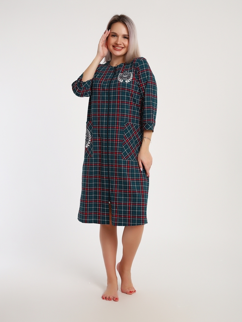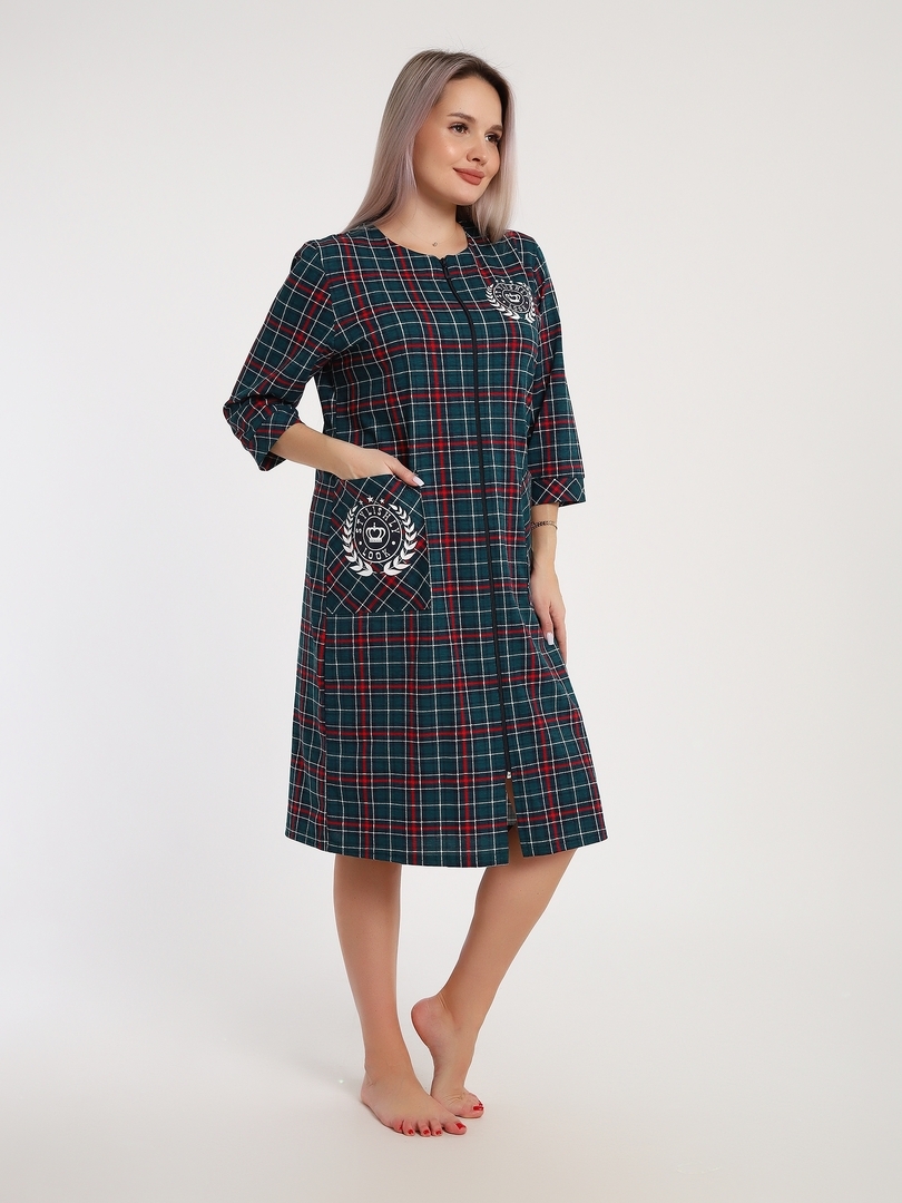 Женский халат Клетка 525 / Зеленый
