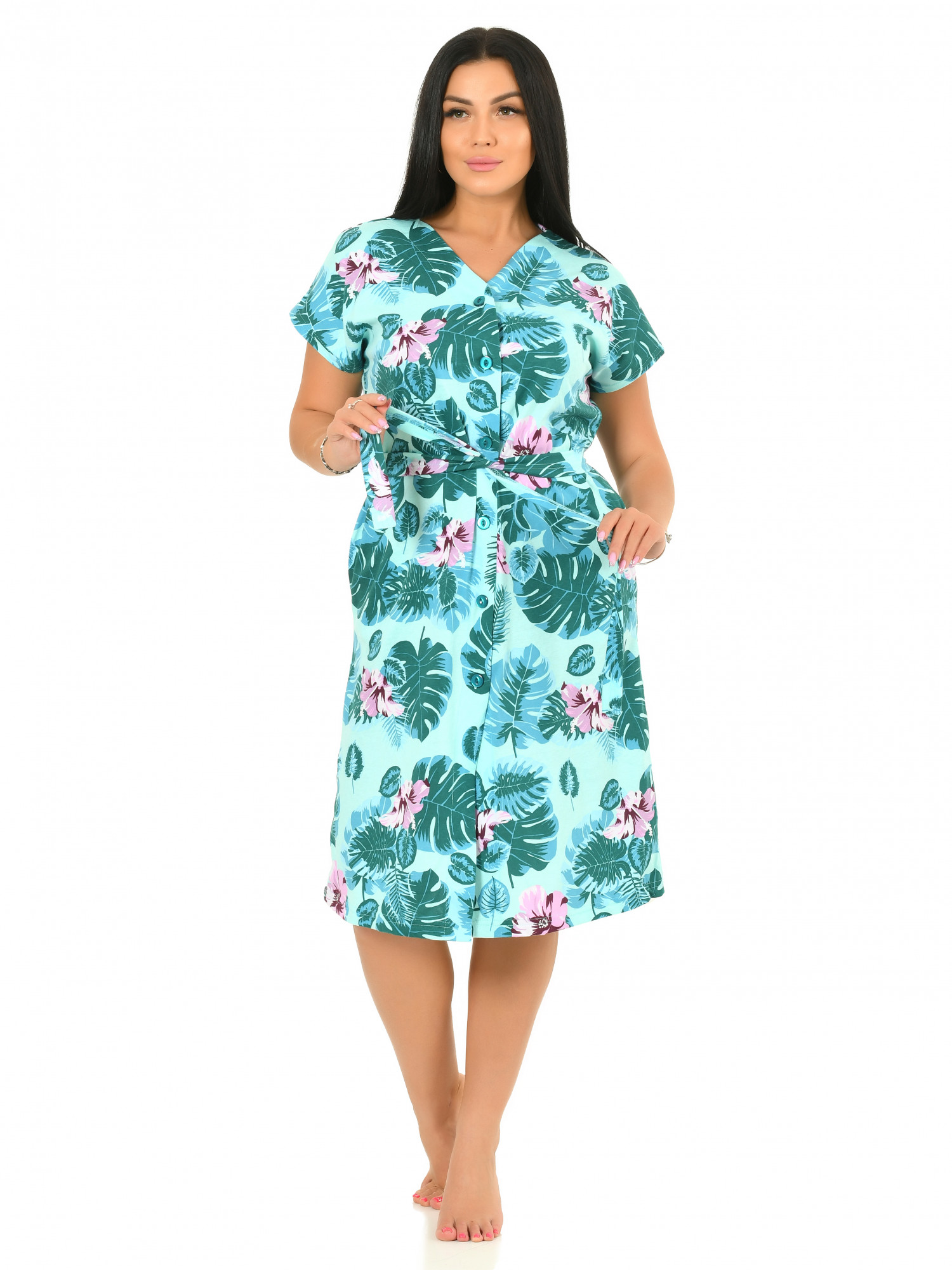 Легкий женский халат на пуговицах.