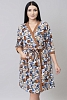 Классический халат-кимоно с запахом, завязывается на талии поясом.
