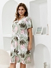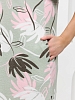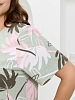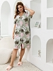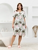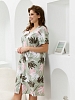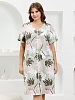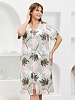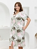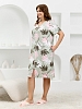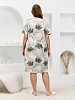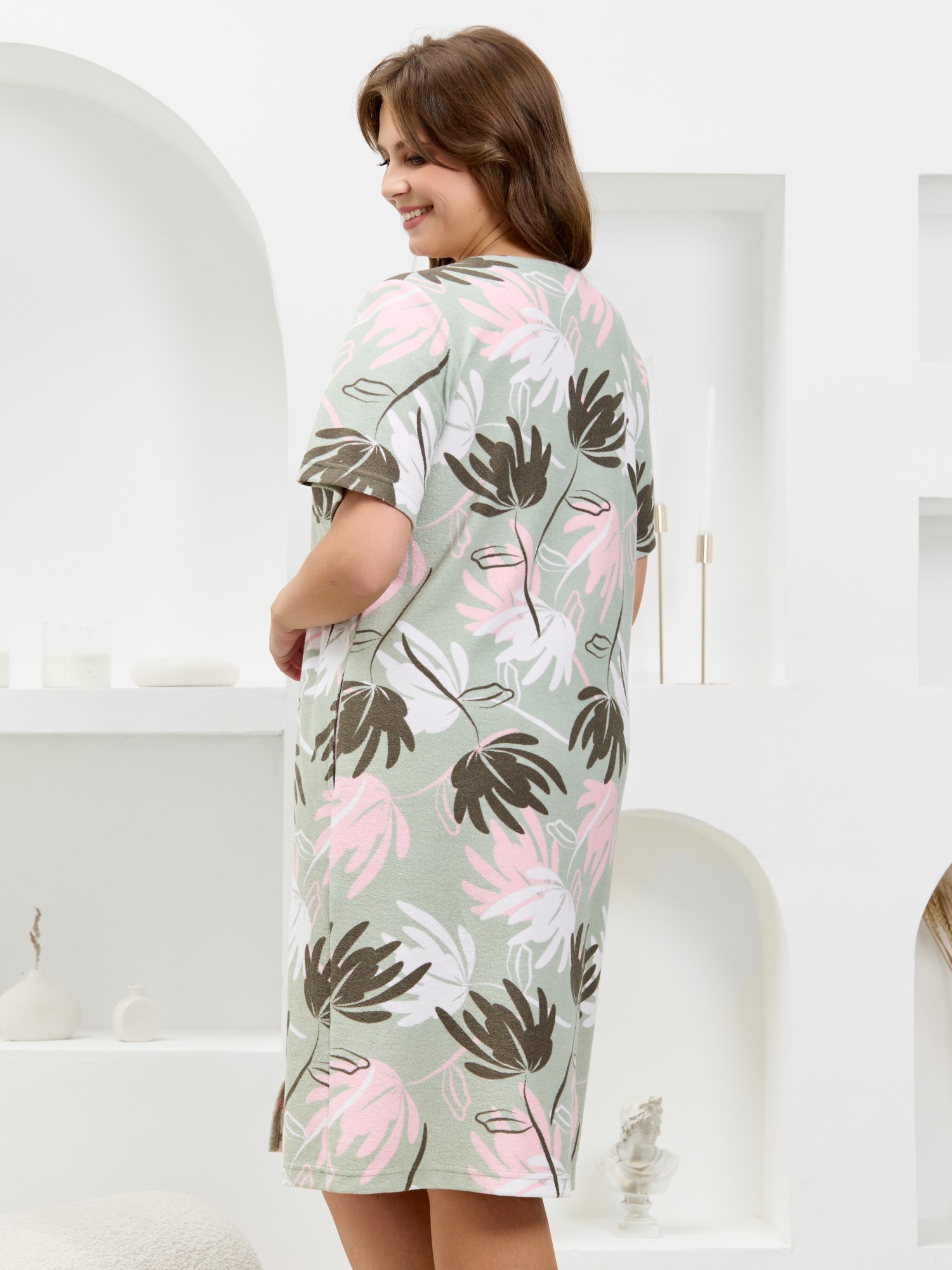 Халат женский из трикотажного полотна «махра» с набивным рисунком. Изделие прямого силуэта, с короткими втачными рукавами, горловиной V- образной формы, карманами в боковых швах и центральной бортовой застежкой на тесьму «молния».