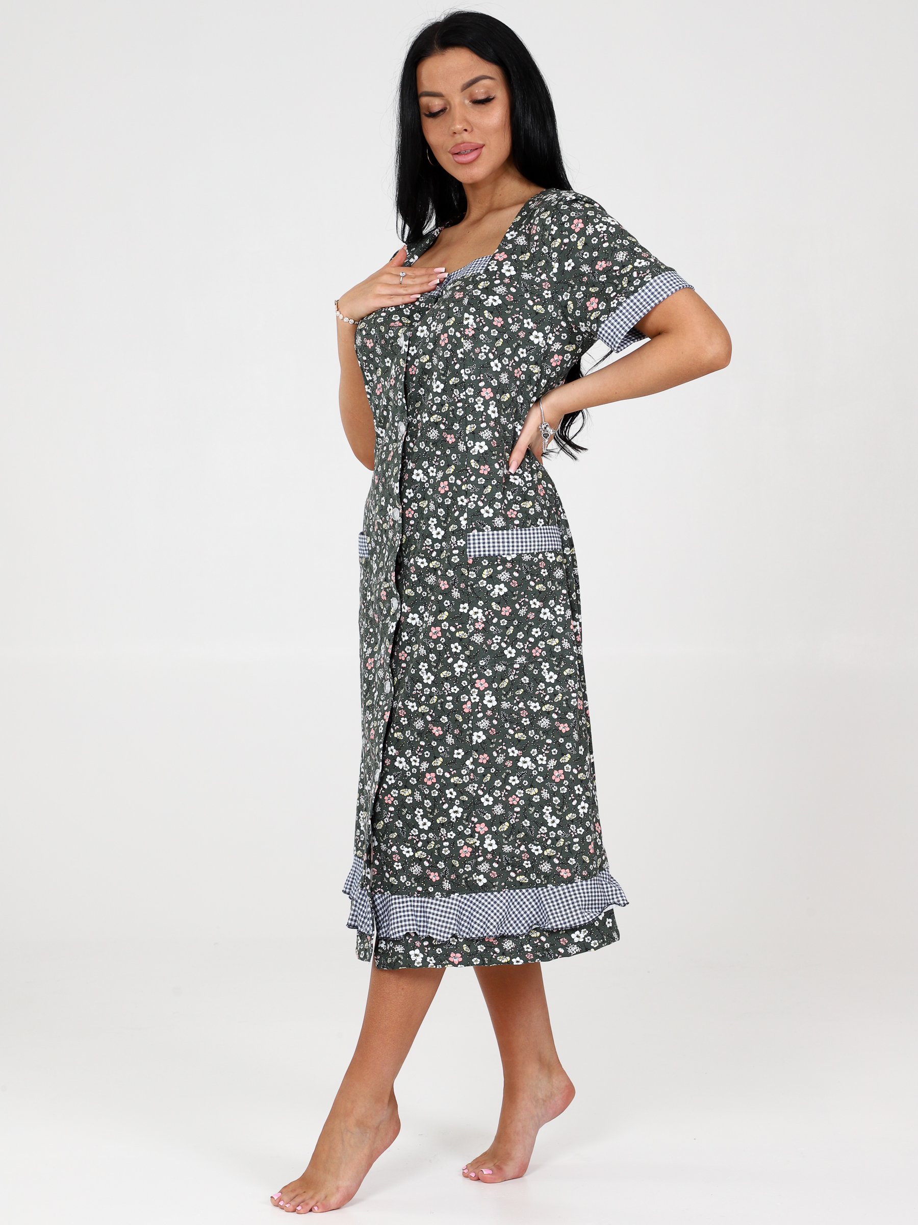 Женский халат МИМОЗА ХК-781 / Лужайка на хаки