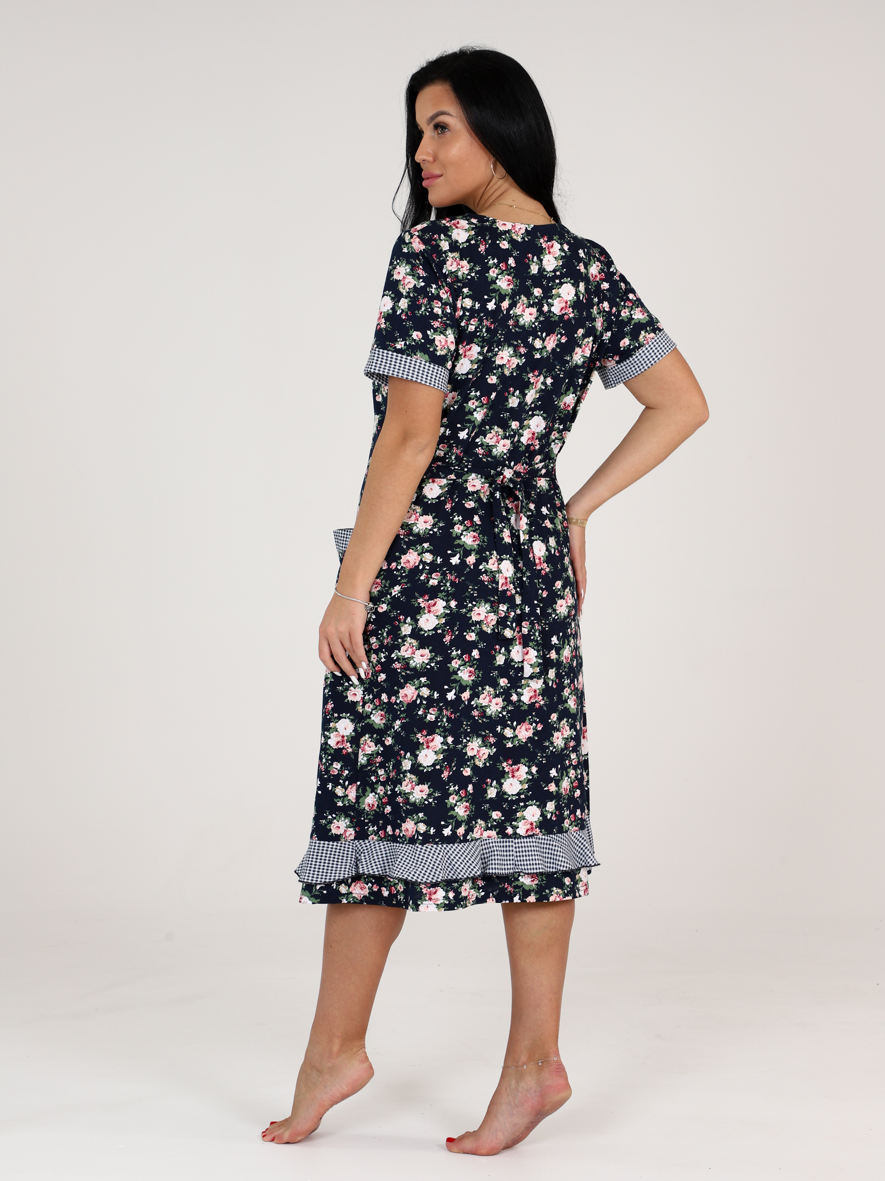 Женский халат МИМОЗА ХК-781 / Синий с букетом