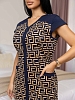 Халат женский с застёжкой - молнией полуприлегающего силуэта длинной чуть выше уровня колена. На полочке присутствуют накладные карманы с отделкой в верхней части. Рукав - крылышко выполен из отделочного материала, так же как и кокетка полочки. Вырез горловины V-образный, обработанный окантовкой.