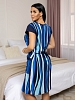 Халат женский с застёжкой - молнией полуприлегающего силуэта длинной чуть выше уровня колена. На полочке присутствуют накладные карманы с отделкой в верхней части. Рукав - крылышко выполен из отделочного материала, так же как и кокетка полочки. Вырез горловины V-образный, обработанный окантовкой.