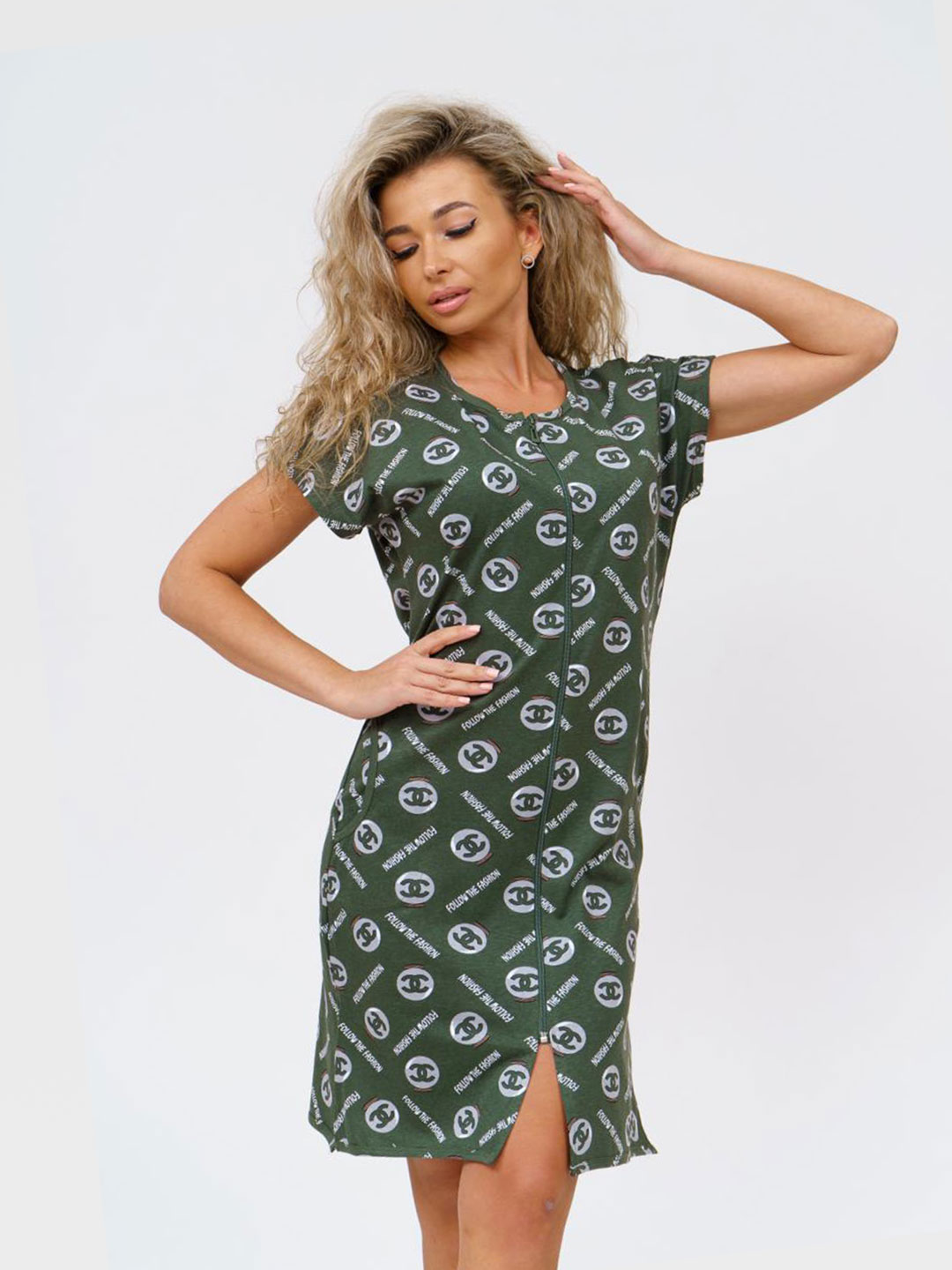 Домашний халат из хлопка, с коротким рукавом и разрезами. Универсальная расцветка подойдет для любой возрастной группы.