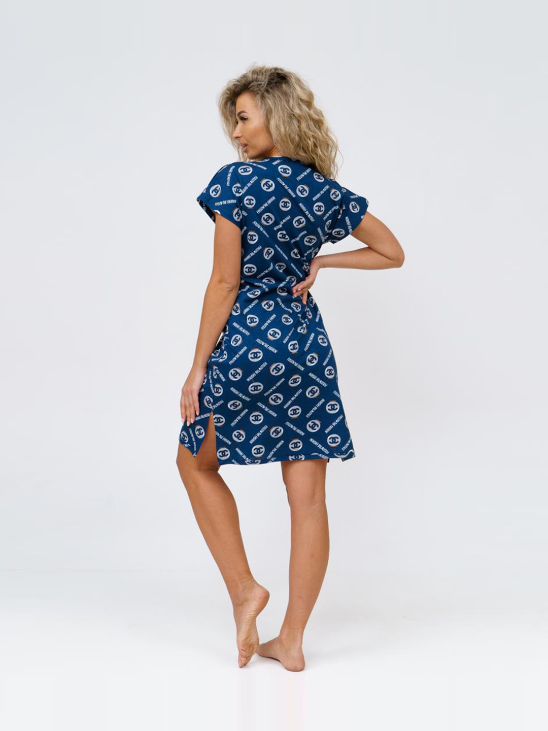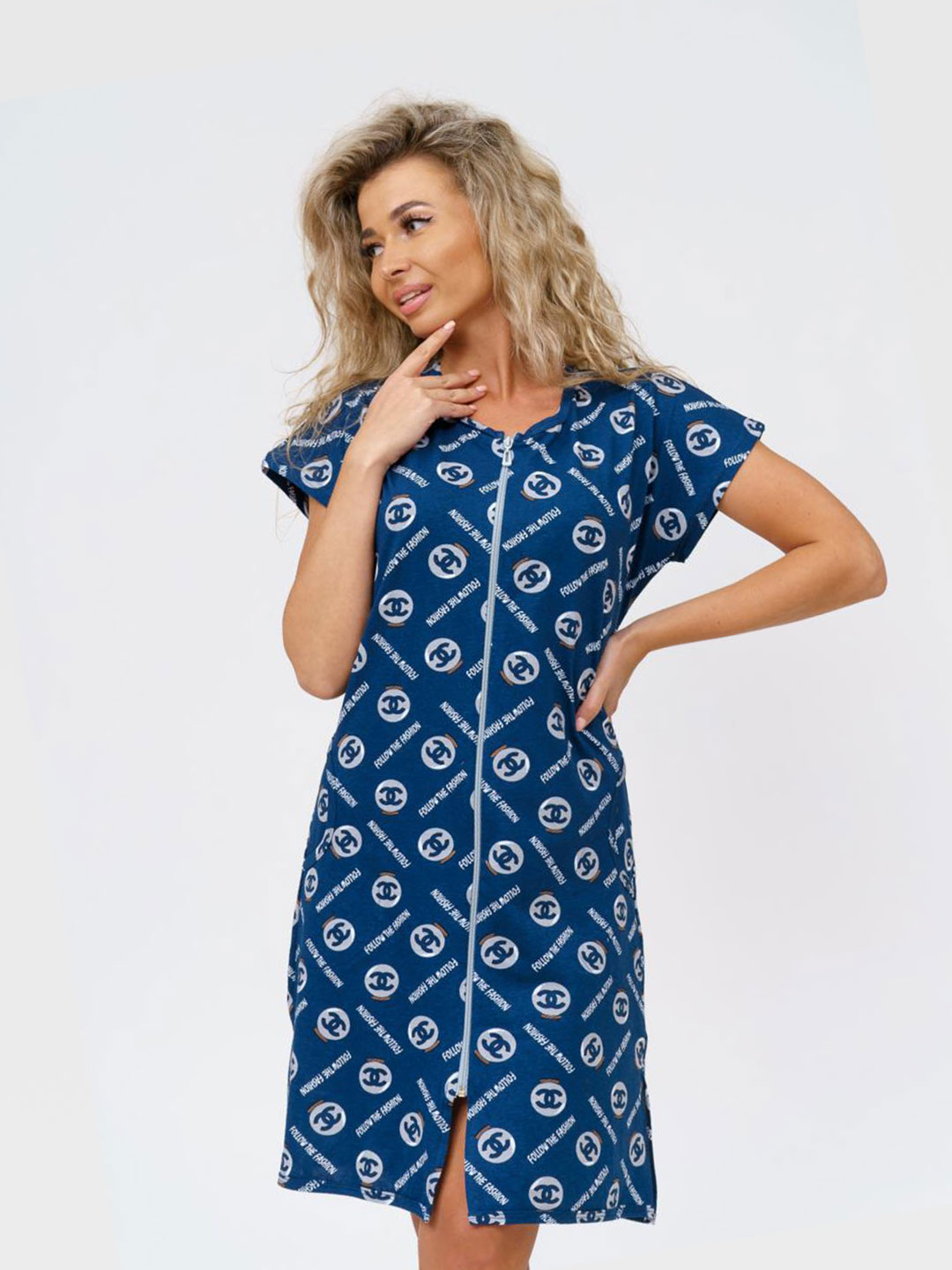 Домашний халат из хлопка, с коротким рукавом и разрезами. Универсальная расцветка подойдет для любой возрастной группы.