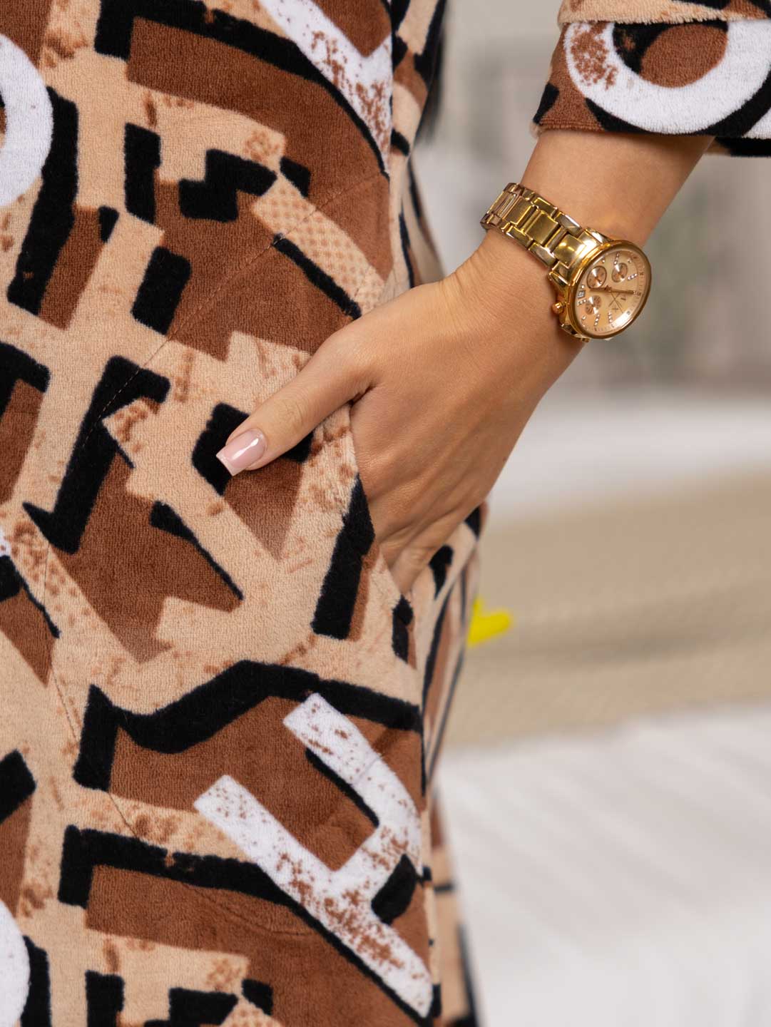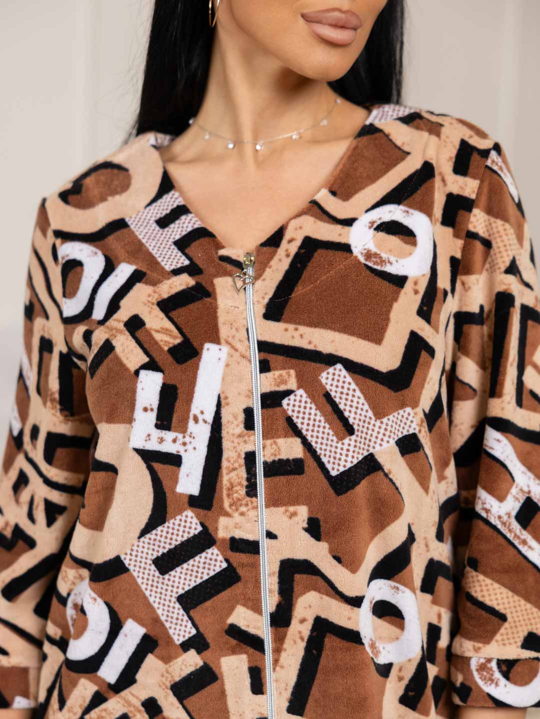 Женский халат из велюра на молнии. Женский велюровый халат имеет удобную застежку на молнии, рукав 3/4. Хлопковая ткань халата подарит тепло и уют прохладными днями.