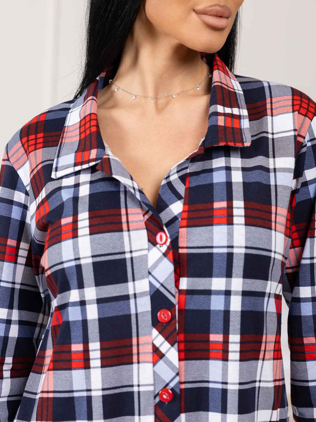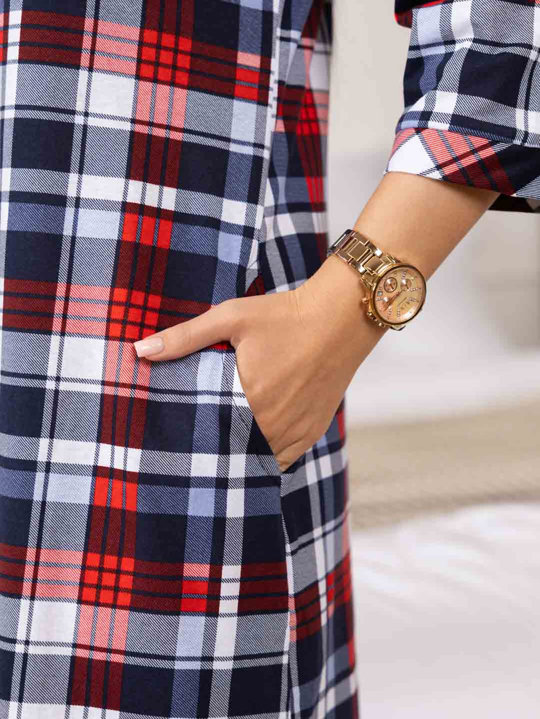 Женский халат из 100% хлопка, длиной до колена, с отложным воротником и застежкой на пуговицы, ультрасовременный материал со стильным рисунком, придают данной модели особую роскошь. Удобный втачной рукав, длиной 3/4 подарит свободу в движении, в боковых швах удобные и вместительные карманы.