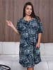 Халат женский трикотажный, длиной до уровня колена. Изделие имеет классический округлый вырез, с застежкой на пуговицы. Рукав - короткий, на манжетах. Удобные карманы с отрезным бочком.