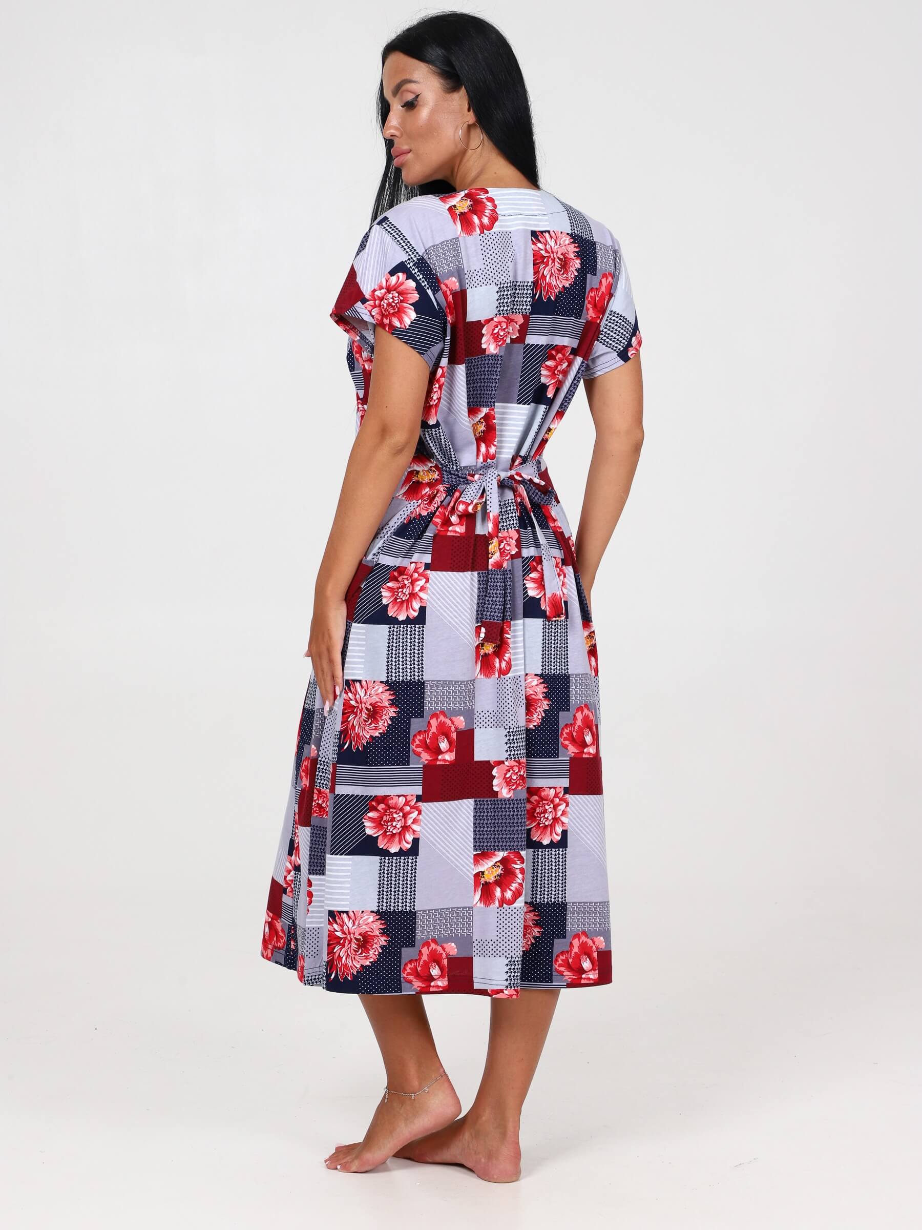Халат домашний трикотажный ПЕРСОНА ХК-549 / Пэчворк, красные цветы. Большие размеры. Тип карманов накладные. Халат женский домашний не только удобный, но и красивый вариант, дающий возможность почувствовать себя по особенному в домашней обстановке. Халат также послужит отличным подарком на любой праздник.
