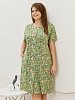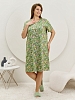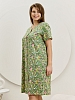 Халат женский из трикотажного полотна «кулирка» с набивным рисунком, прямого силуэта, с короткими втачными рукавами, карманами в боковых швах и центральной бортовой застежкой на обметанные петли и пуговицы. Горловина – овальной формы, переходящая в небольшой v-образный вырез выше верхней пуговицы. Входы в карманы и горловина спинки окантованы.