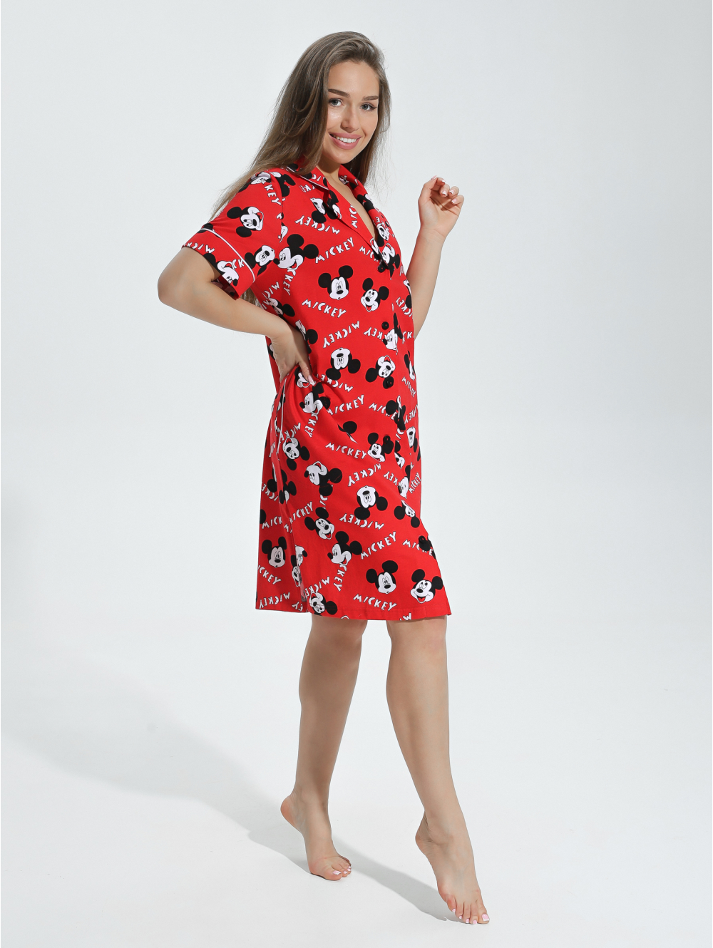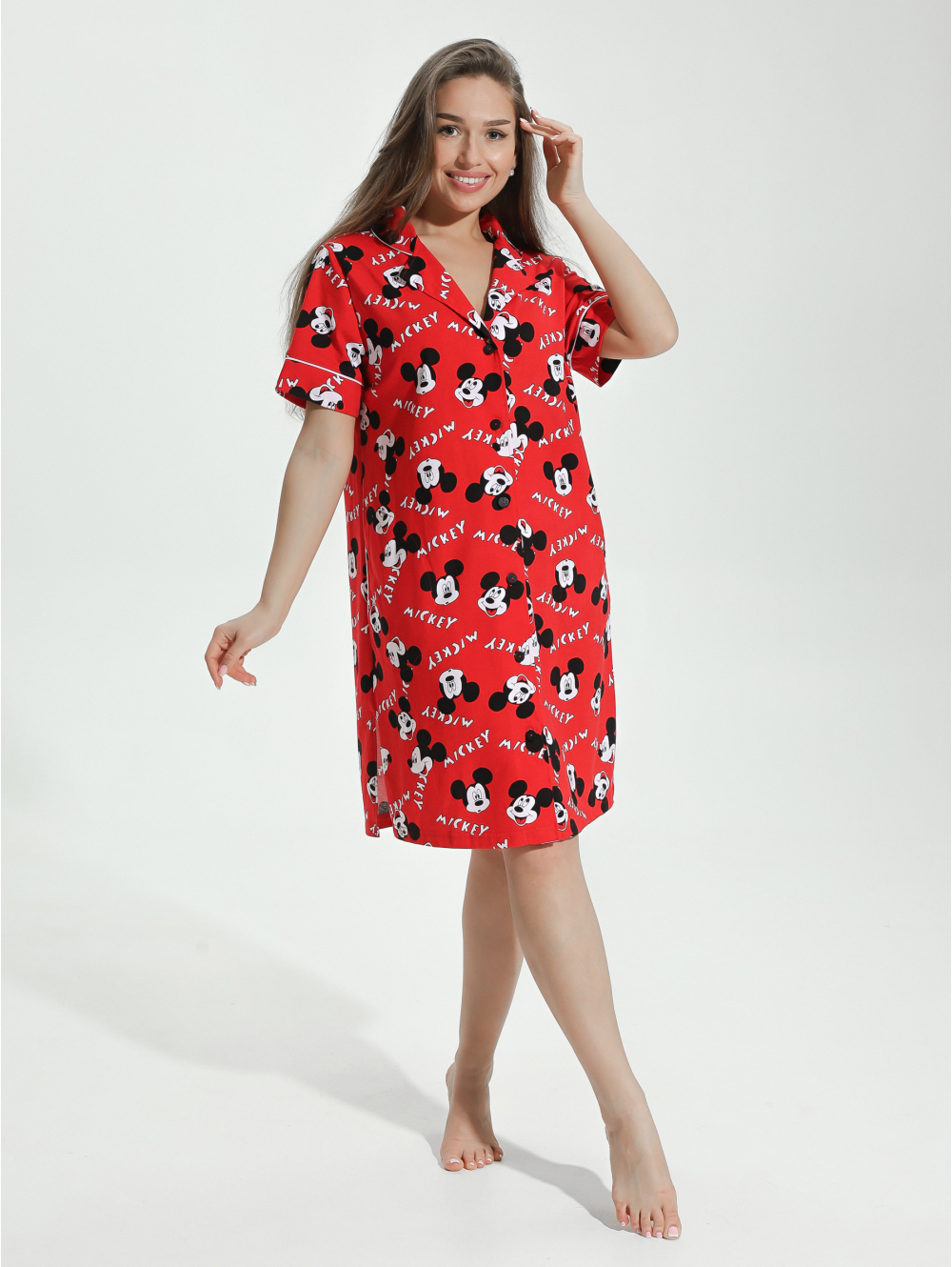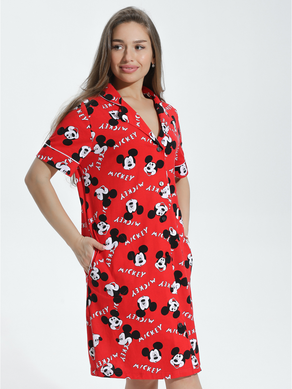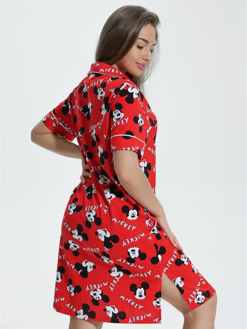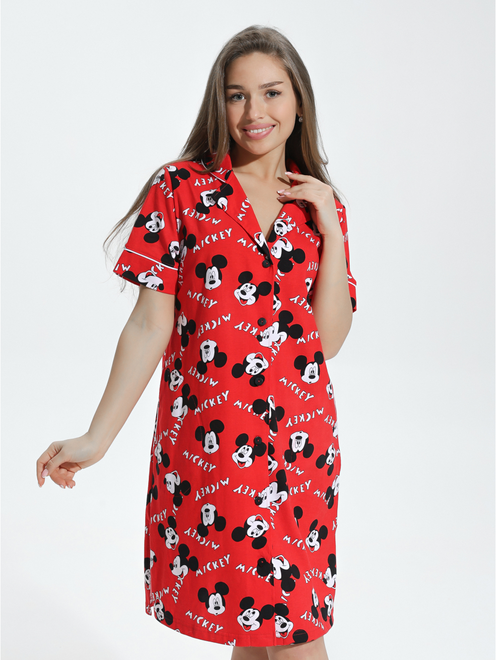 Халат прямого силуэта с центральной бортовой застежкой на 6 петель и пуговиц, с втачным воротником, с коротким втачным рукавом с манжетой.