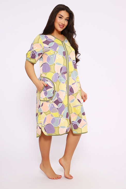 Женские халаты из кулирки — это комфортная и практичная домашняя одежда, изготовленная из мягкой и дышащей ткани (100% хлопок). Кулирка отличается долговечностью, сохраняет форму и цвет после многочисленных стирок.