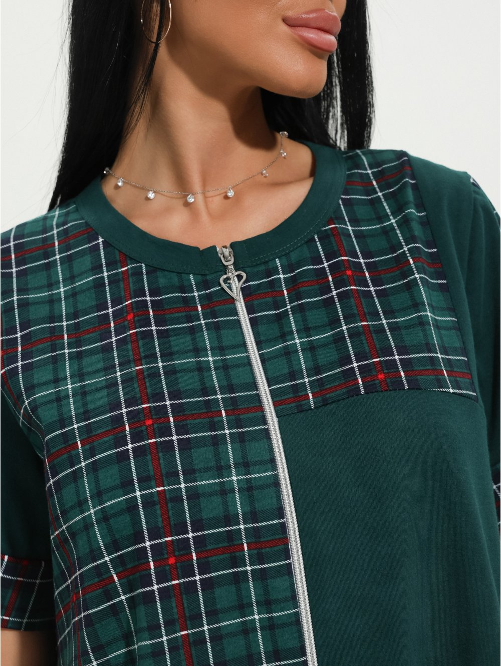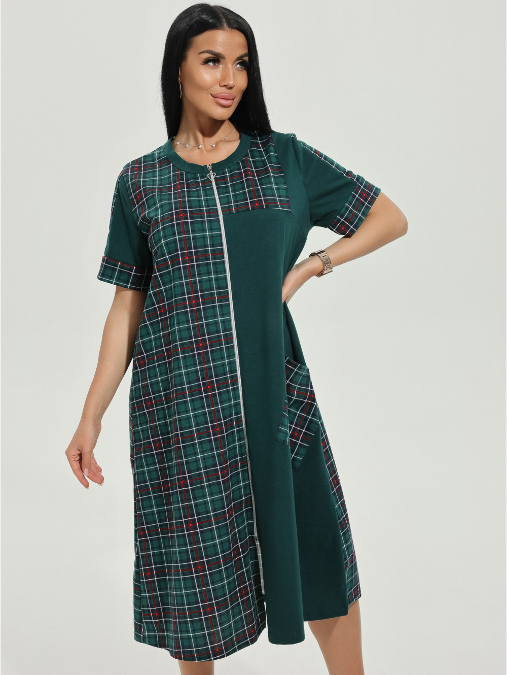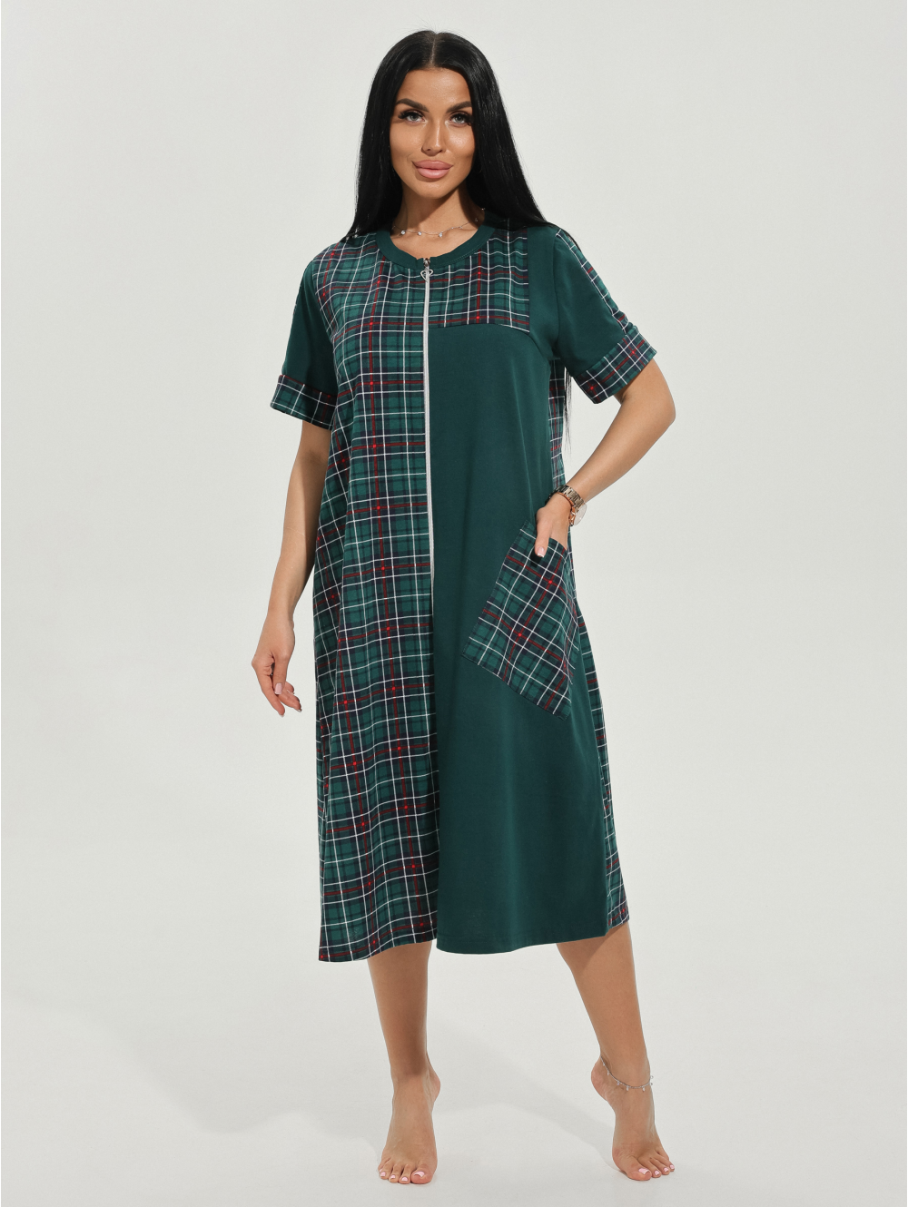 Халат ВАЛЕРИЯ - удобный и практичный, отшивается из трикотажного хлопкового полотна. Такая модель позволяет свободно двигаться и заниматься домашними хлопотами. Необычное композиционное решение деталей, а также сочетание актуальной расцветки ткани, создает запоминающийся образ. Длина и трапециевидный силуэт халата позволяют носить эту модель девушкам и женщинам с абсолютно любой фигурой. Эта модель с центральной застежкой-молнией, с большим карманом, на который настрачивается декоративная лента, станет неотъемлемой частью вашего гардероба. Ткань изготовлена из экологически чистого сырья, имеет высокую воздухопроницаемость, хорошо впитывает влагу. Стирать при температуре 30-40°C.