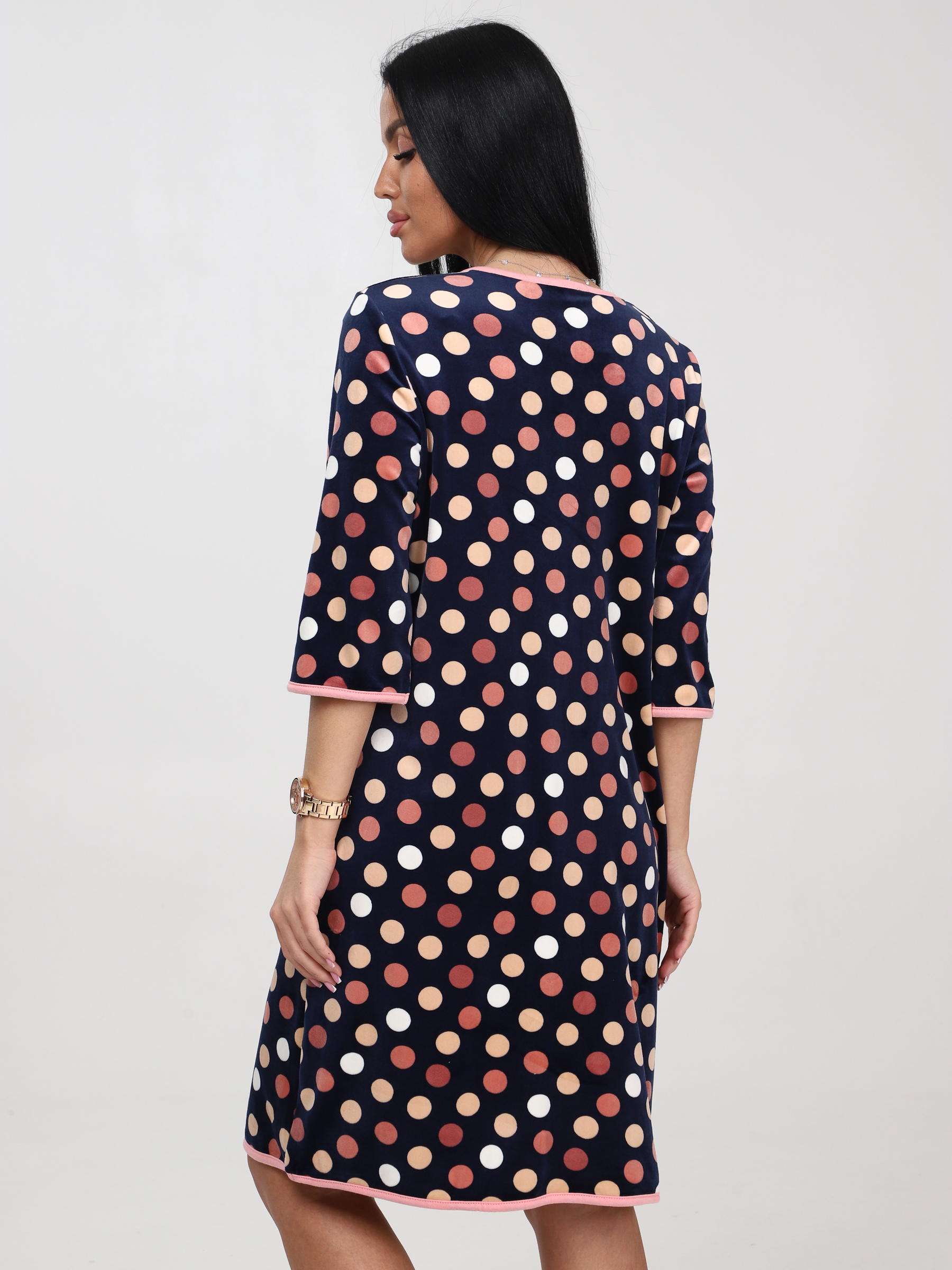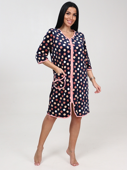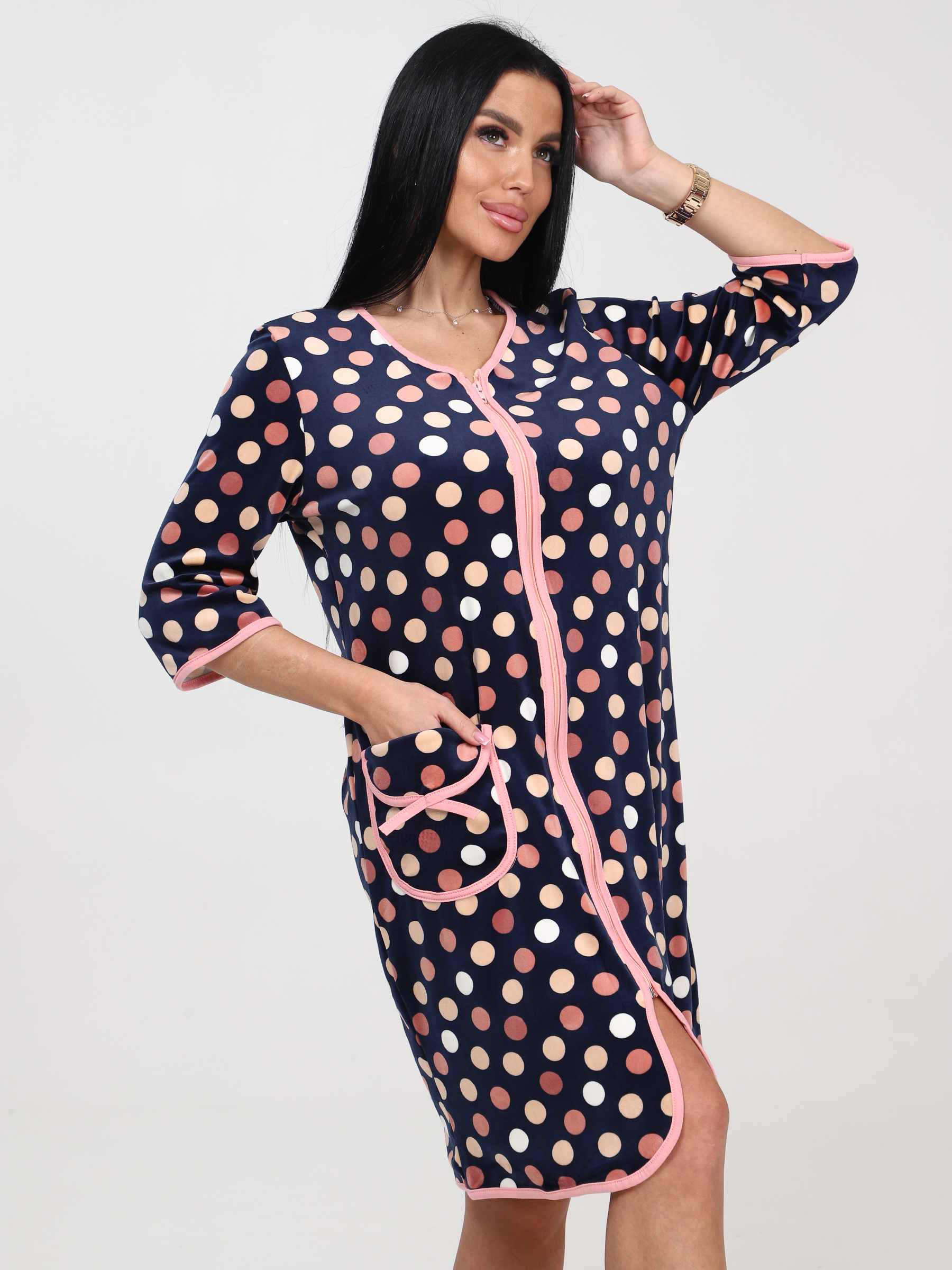 Женский халат велюр МОЛОДЕЖНЫЙ ХВ-2301 / Персиковый горох на темно-синем