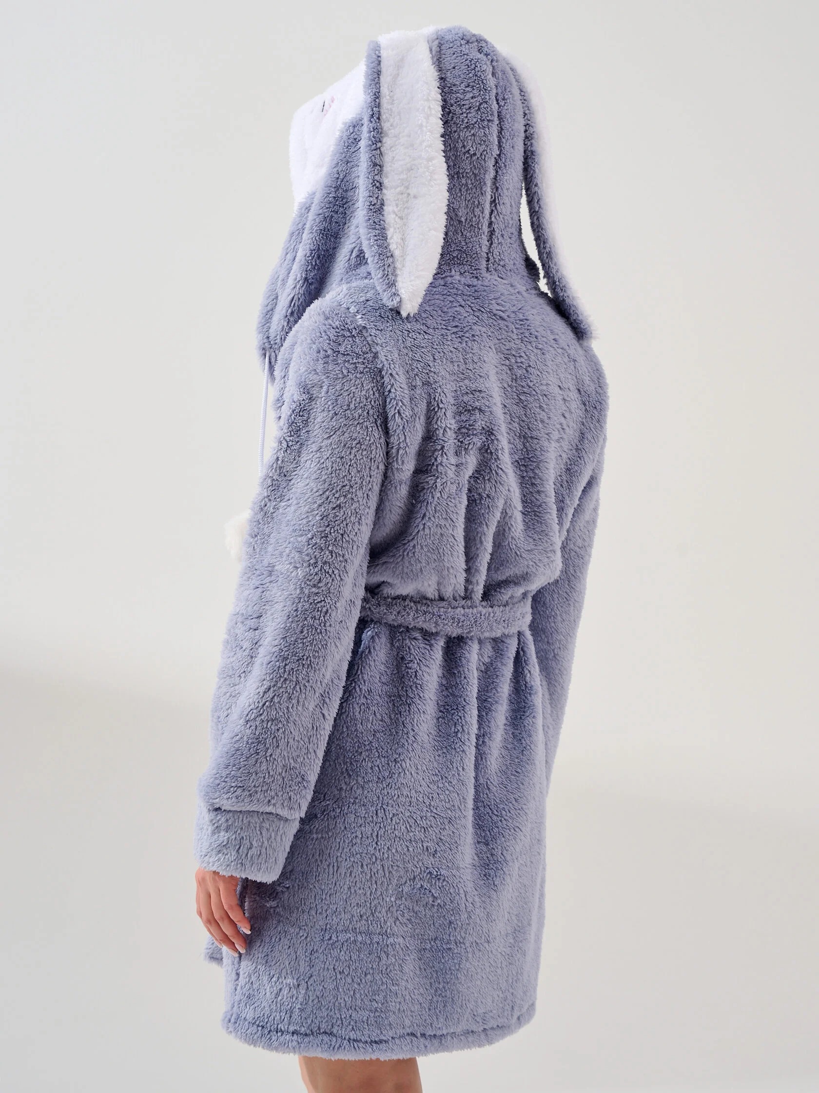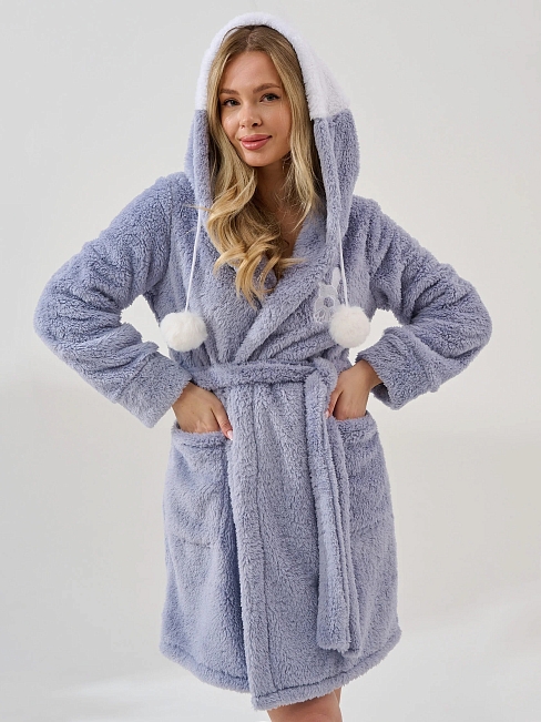Женский халат "Заяц Аниме" 2023-Вф / Сиреневый отшивается из мягкого и теплого велсофта.
