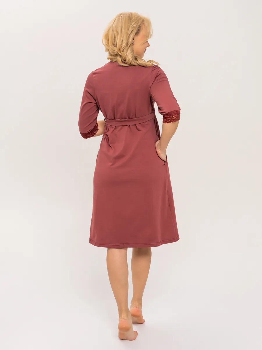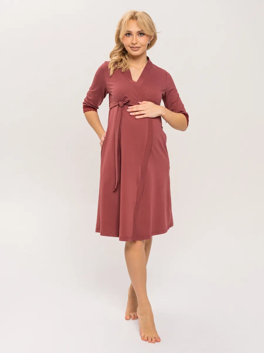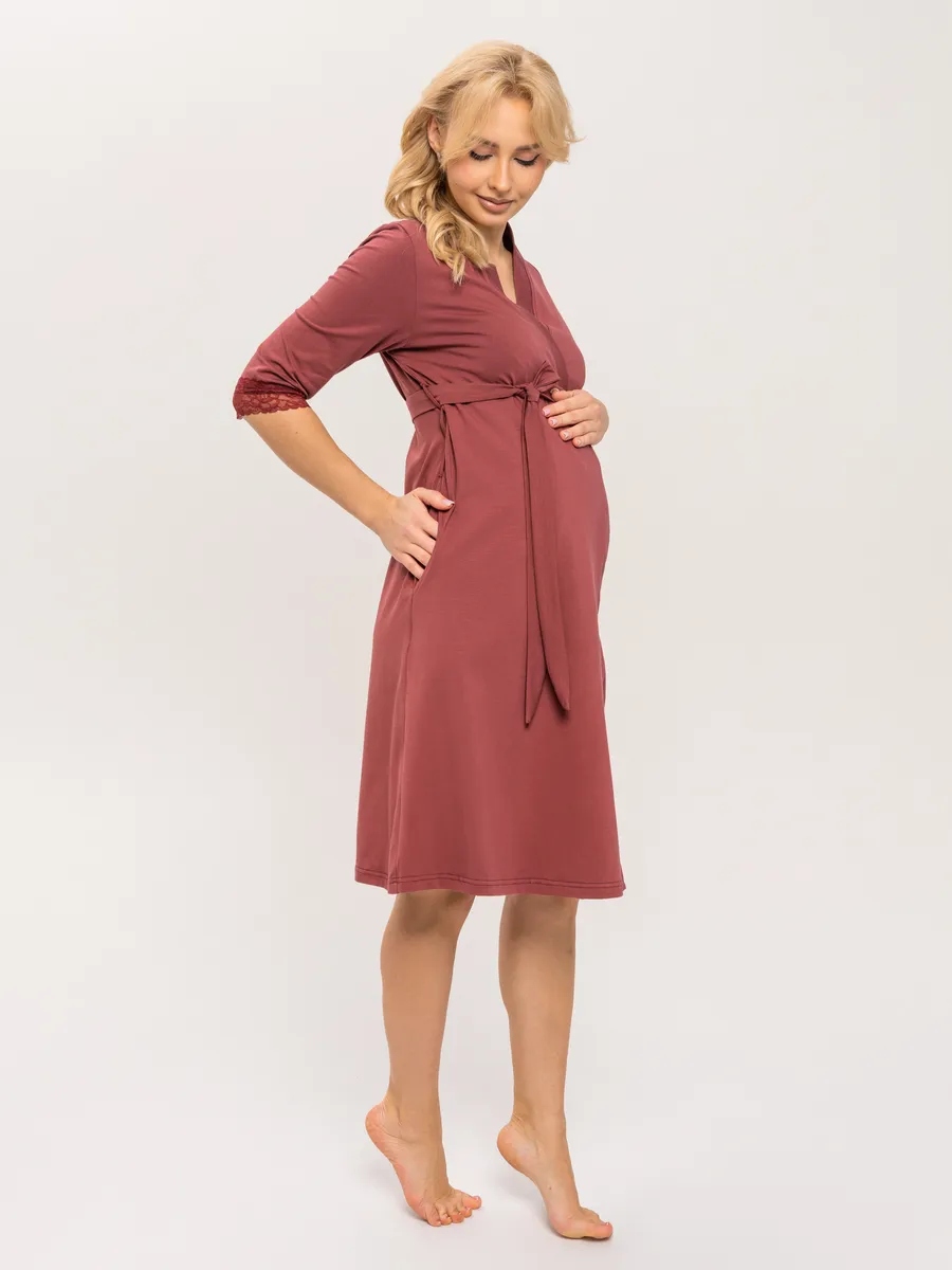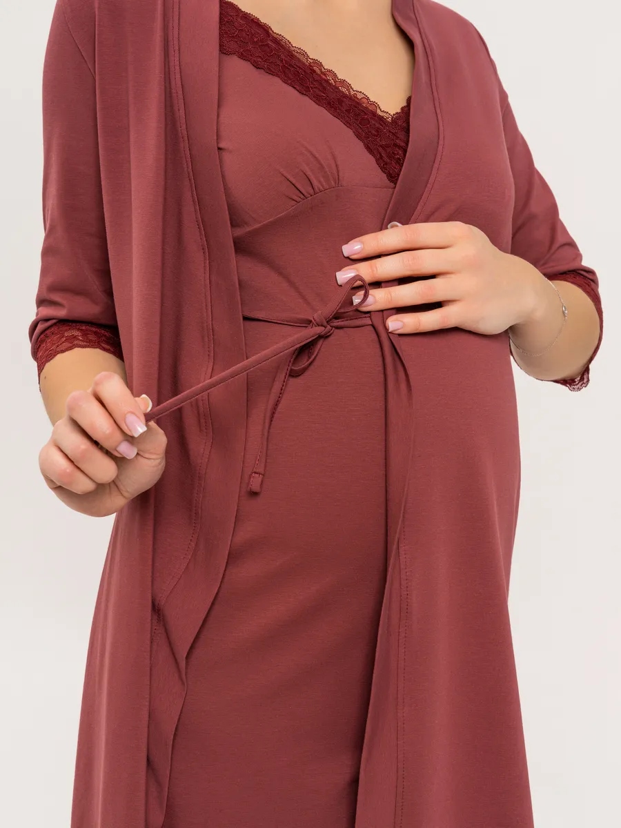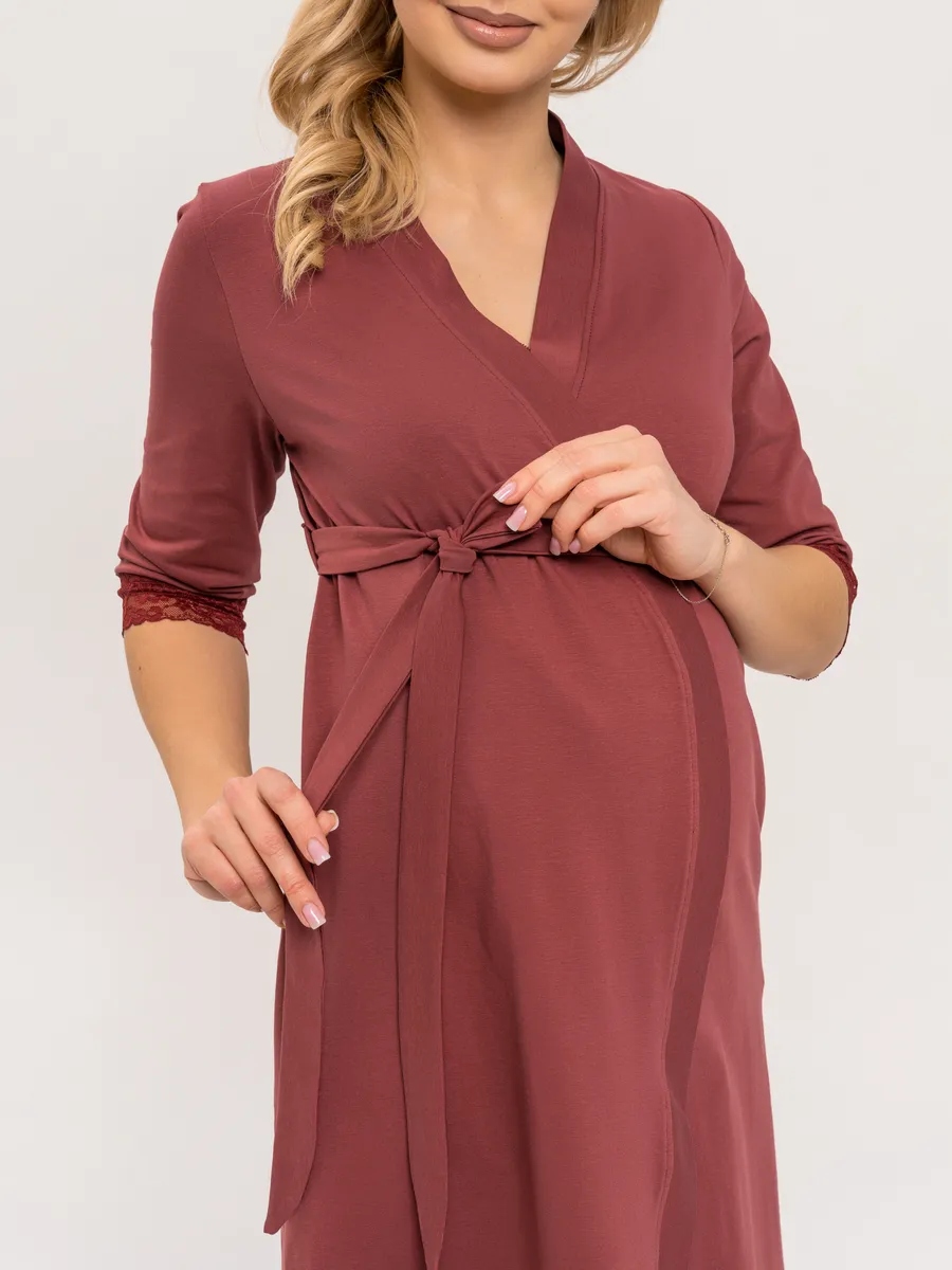 Практичный и невероятно удобный комплект «Для мамы» / Бургунди арт.к1156б в роддом для беременных и кормящих из 100% Хлопка, который состоит из ночной сороки и халата с запахом. Сорочка - оптимальной длины, выполнена из однотонной хлопковой ткани Премиального качества, на бретелях с регуляторами из декоративной резинки. Верх изделия разработан для максимального комфорта во время кормления грудью. Крайне привлекательно смотрится декоративная отделка кружевом. Халат с запахом, удобным поясом, боковыми карманами и рукавом 3/4. Длина - ниже колена. По низу рукавов - отделка эластичным кружевом. В боковом шве 3 петли для регулировки высоты пояса. Такой комплект, состоящий из халата и сорочки, ни в коем случае не останется без внимания. Вы сможете носить его и после беременности, ведь он невероятно удобный и универсальный. Характеристики: 100% хлопковая ткань Премиум; Обработка декоративным эластичным кружевом; Оптимальная длина изделий; Бретели с регуляторами; Комфорт во время кормления; Боковые карманы; 3 уровня регулировки высоты пояс