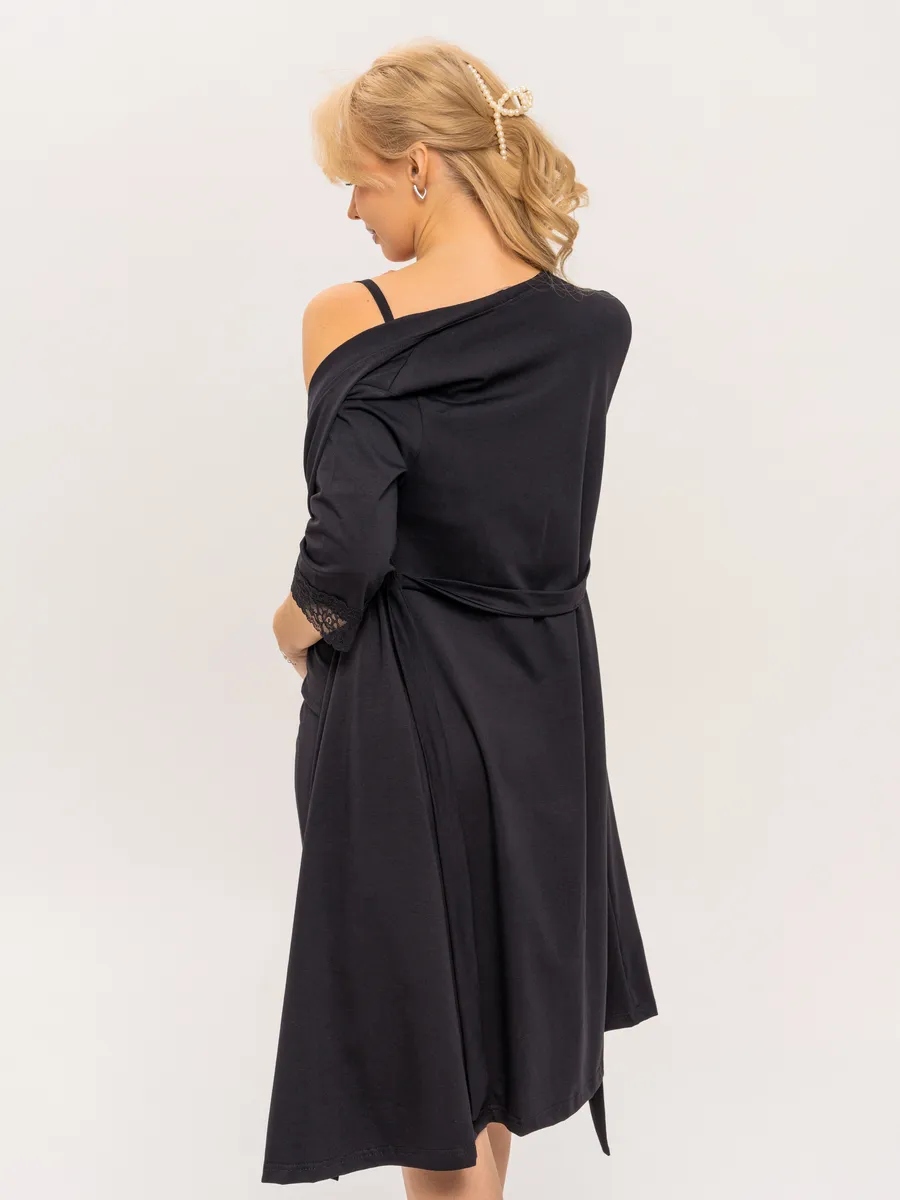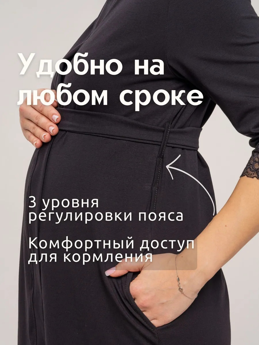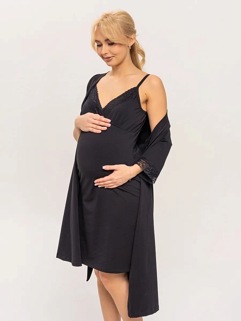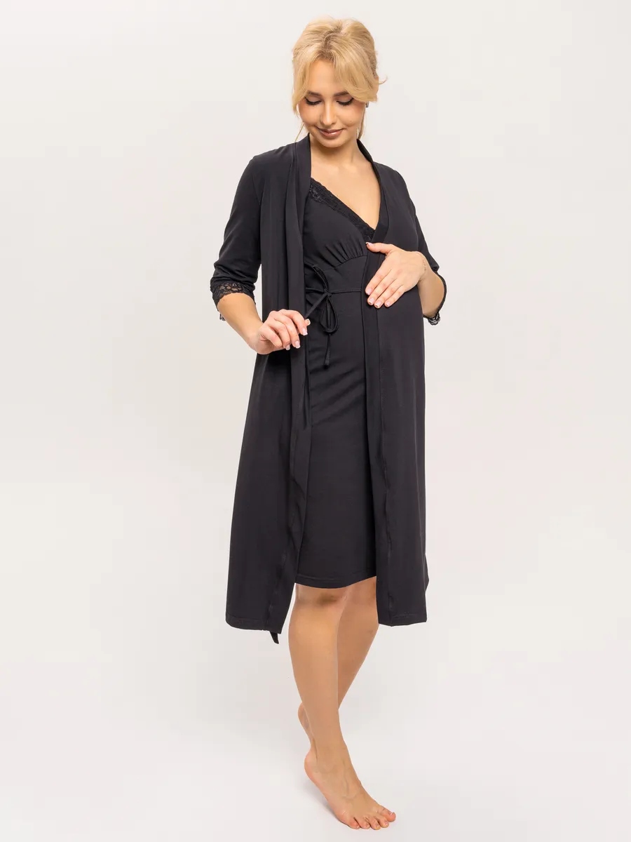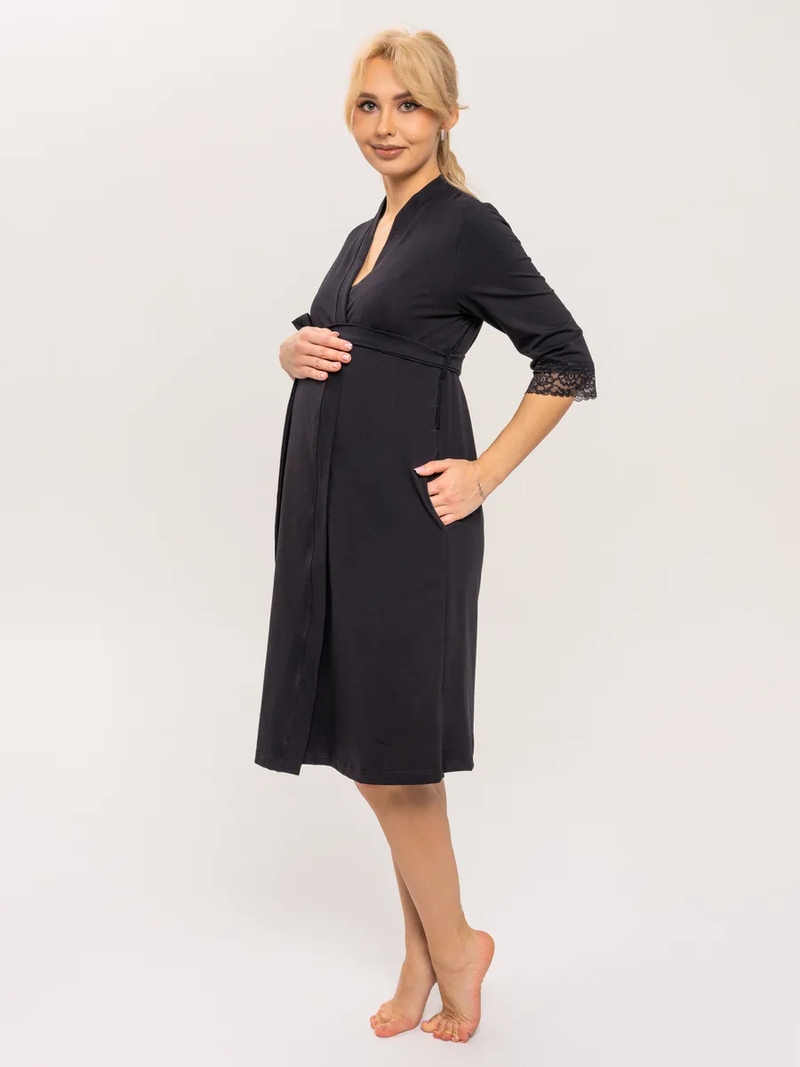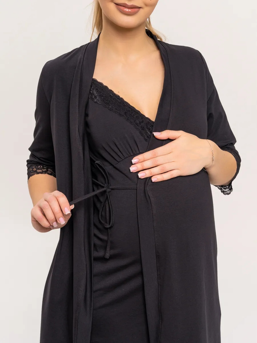 Практичный и невероятно удобный комплект «Для мамы» / Чёрный арт.к1156ч в роддом для беременных и кормящих из 100% Хлопка Премиум, который состоит из ночной сороки и халата с запахом. Сорочка - оптимальной длины, выполнена из однотонной хлопковой ткани Премиального качества, на бретелях с регуляторами из декоративной резинки. Верх изделия разработан для максимального комфорта во время кормления грудью. Крайне привлекательно смотрится декоративная отделка кружевом. Халат с запахом, удобным поясом, боковыми карманами и рукавом 3/4. Длина - ниже колена. По низу рукавов - отделка эластичным кружевом. В боковом шве 3 петли для регулировки высоты пояса. Такой комплект, состоящий из халата и сорочки, ни в коем случае не останется без внимания. Вы сможете носить его и после беременности, ведь он невероятно удобный и универсальный. Характеристики: 100% хлопковая ткань Премиум; Обработка декоративным эластичным кружевом; Оптимальная длина изделий; Бретели с регуляторами; Комфорт во время кормления; Боковые карманы; 3 уровня регулировки высоты пояса