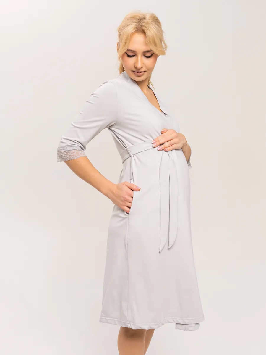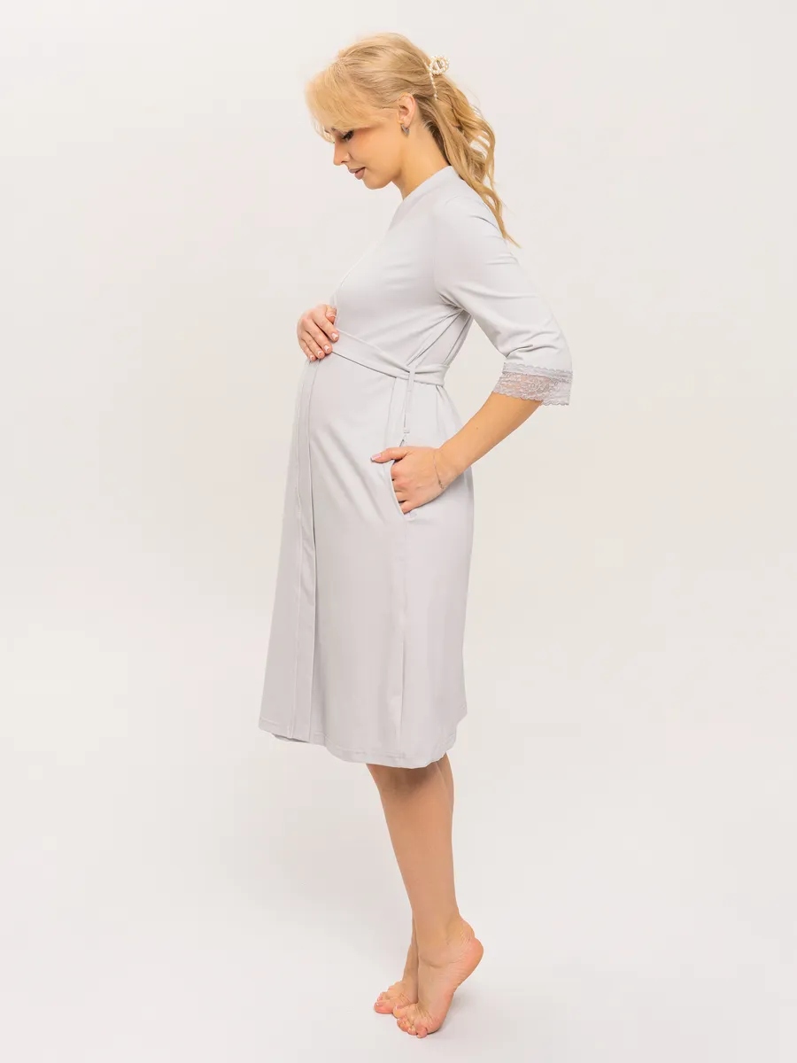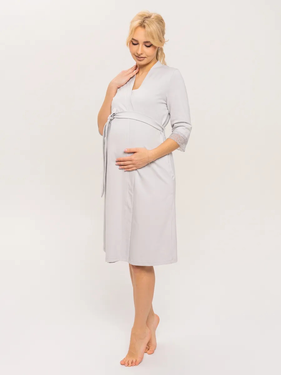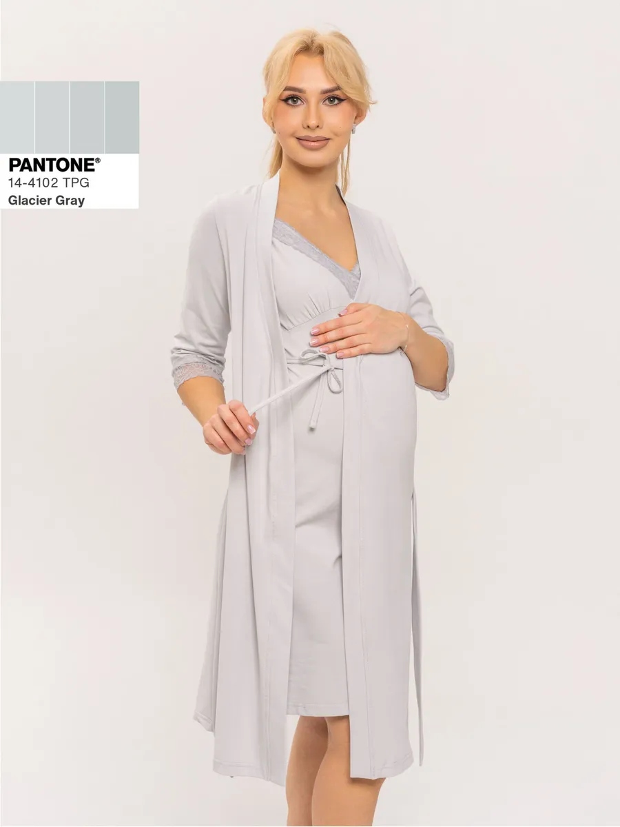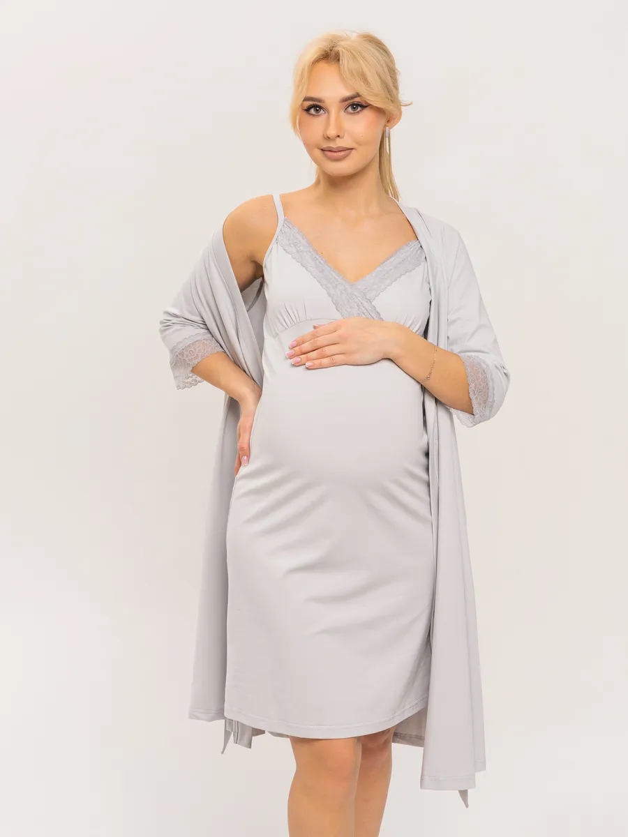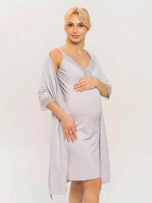 Практичный и невероятно удобный комплект «Для мамы» / Светло-серый арт.к1156сс в роддом для беременных и кормящих из 100% Хлопка Премиум, который состоит из ночной сороки и халата с запахом. Сорочка - оптимальной длины, выполнена из однотонной хлопковой ткани Премиального качества, на бретелях с регуляторами из декоративной резинки. Верх изделия разработан для максимального комфорта во время кормления грудью. Крайне привлекательно смотрится декоративная отделка кружевом. Халат с запахом, удобным поясом, боковыми карманами и рукавом 3/4. Длина - ниже колена. По низу рукавов - отделка эластичным кружевом. В боковом шве 3 петли для регулировки высоты пояса. Такой комплект, состоящий из халата и сорочки, ни в коем случае не останется без внимания. Вы сможете носить его и после беременности, ведь он невероятно удобный и универсальный. Характеристики: 100% хлопковая ткань Премиум; Обработка декоративным эластичным кружевом; Оптимальная длина изделий; Бретели с регуляторами; Комфорт во время кормления; Боковые карманы; 3 уровня регулировки высоты пояс