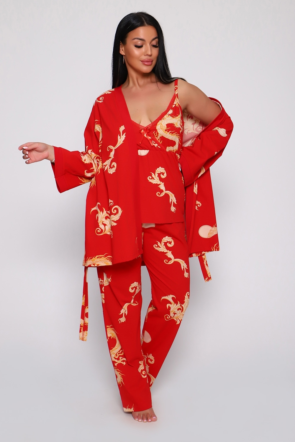Женский комплект из халата и пижамы из кулирки — это сочетание комфорта и практичности для домашнего использования, сна или отдыха. Кулирка — трикотажная ткань из 100% хлопка, которая отличается мягкостью, воздухопроницаемостью и гипоаллергенностью.