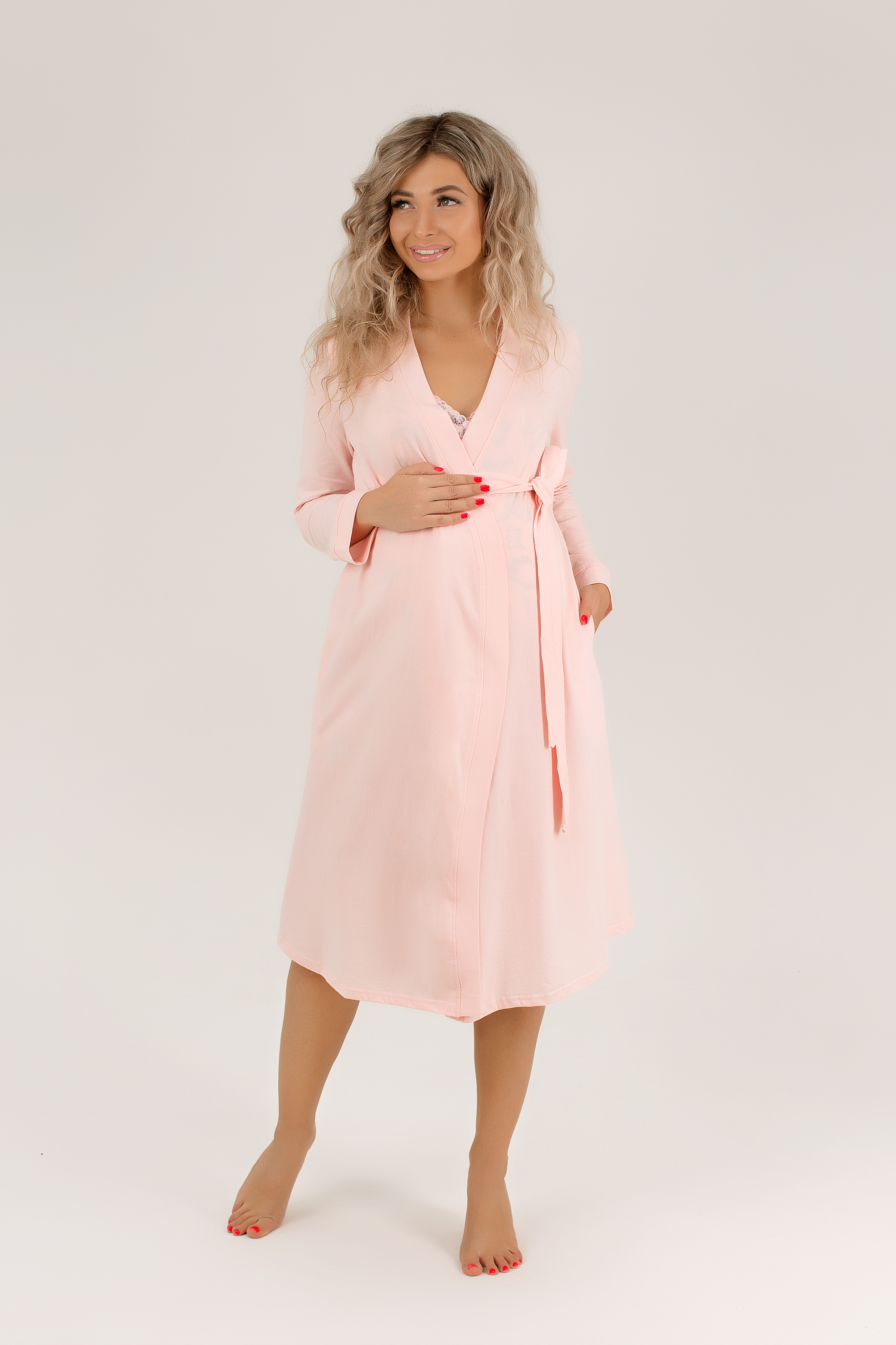 Практичный и невероятно удобный комплект из ночной сорочки и халата с удобным поясом. Для ношения во время беременности и в послеродовой период.
