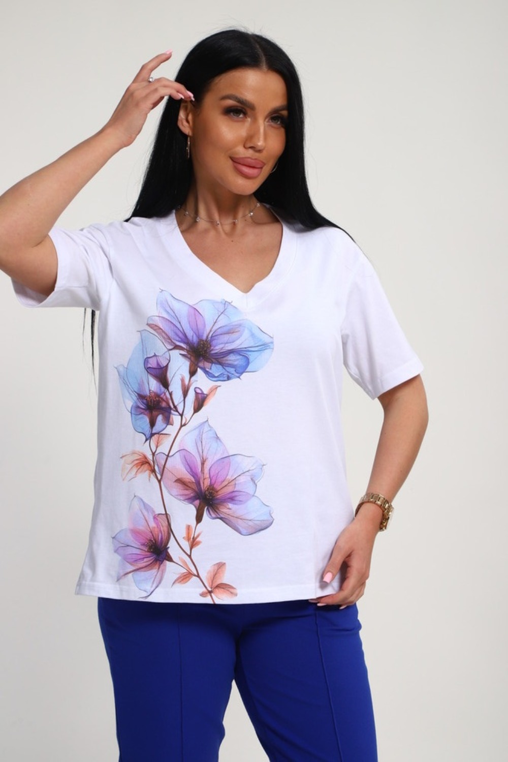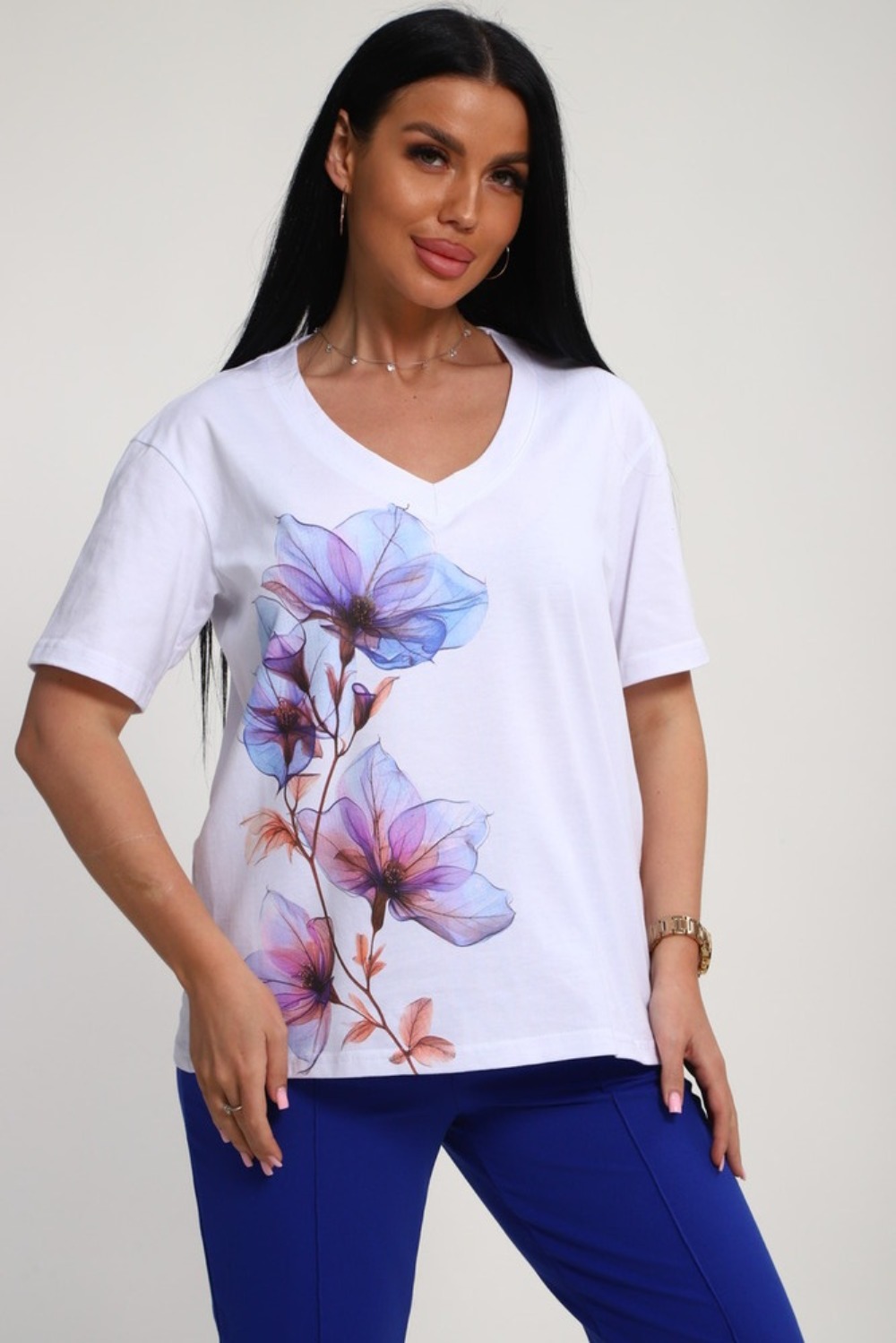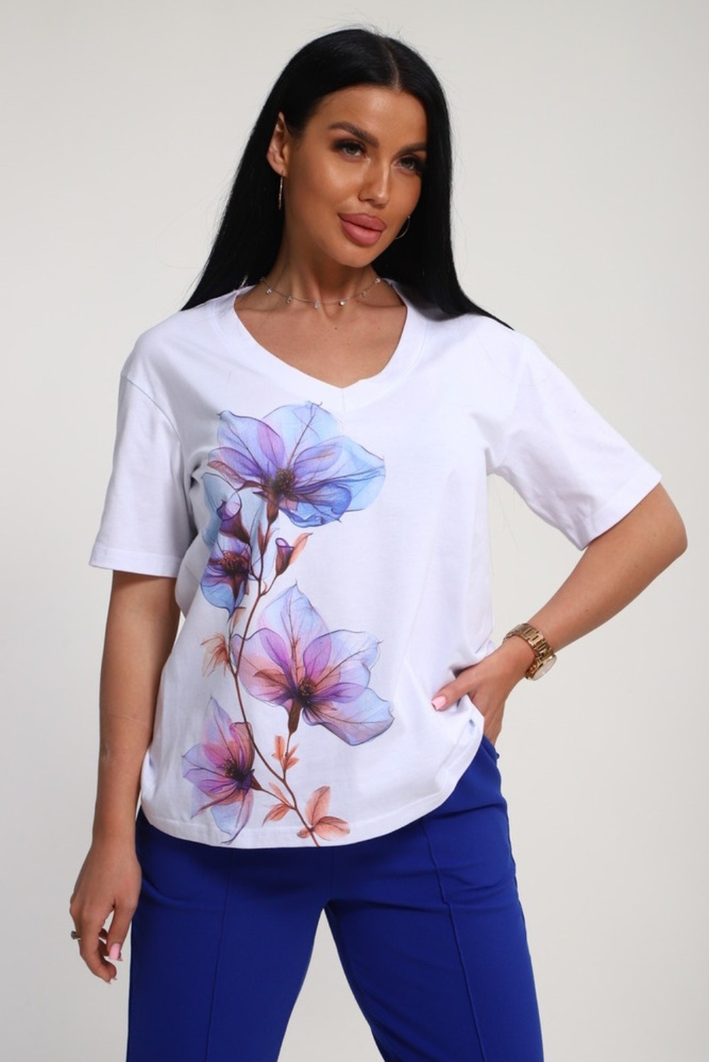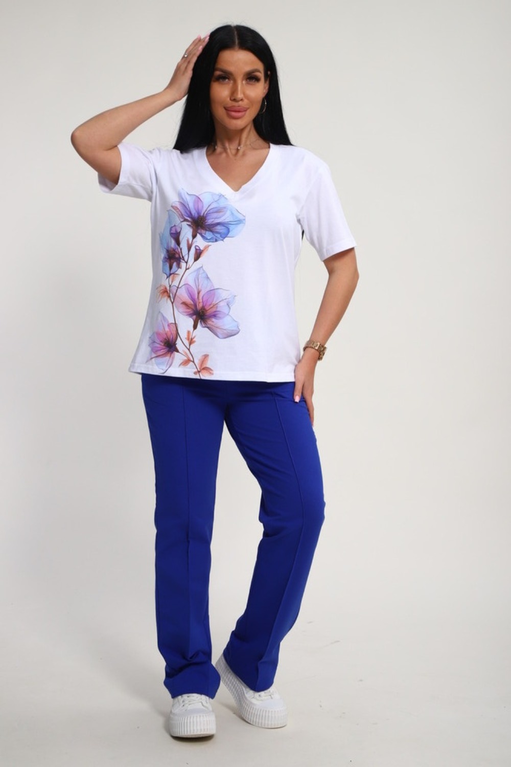 Костюм женский это стильный и идеальный предмет гардероба ,идеально подходящий для дома и отдыха на любой период :весенний ,осенний, летний и зимний. Комплект состоит из футболки с красочным принтом и брюки со стрелками, в контрастном цвете. В составе ткани 100% хлопок . Хлопковый материал очень комфортный и лёгкий в носке. Брюки с удобной посадкой придадут вашему образу стильный и модный вид. Базовый современный костюмчик популярный повседневный .