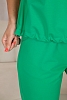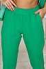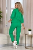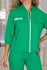 Костюм женский из футера состоит из куртки и брюк. Куртка застегивается на тесьму - молнию. На полочке расположена кокетка, накладные карманы с клапаном. На правом клапане печать. Низ куртки фиксируется резинкой. Брюки на притачном поясе, с карманами.