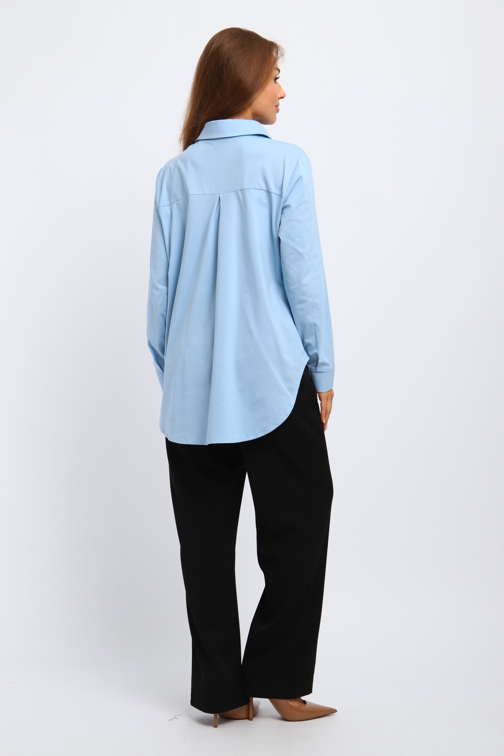 Брюки на резинке обеспечивают идеальную посадку и свободу движений, а классическая рубашка придает образу завершенность и изысканность. Этот женский брючный костюм подойдет как для деловых встреч, так и для повседневной носки.