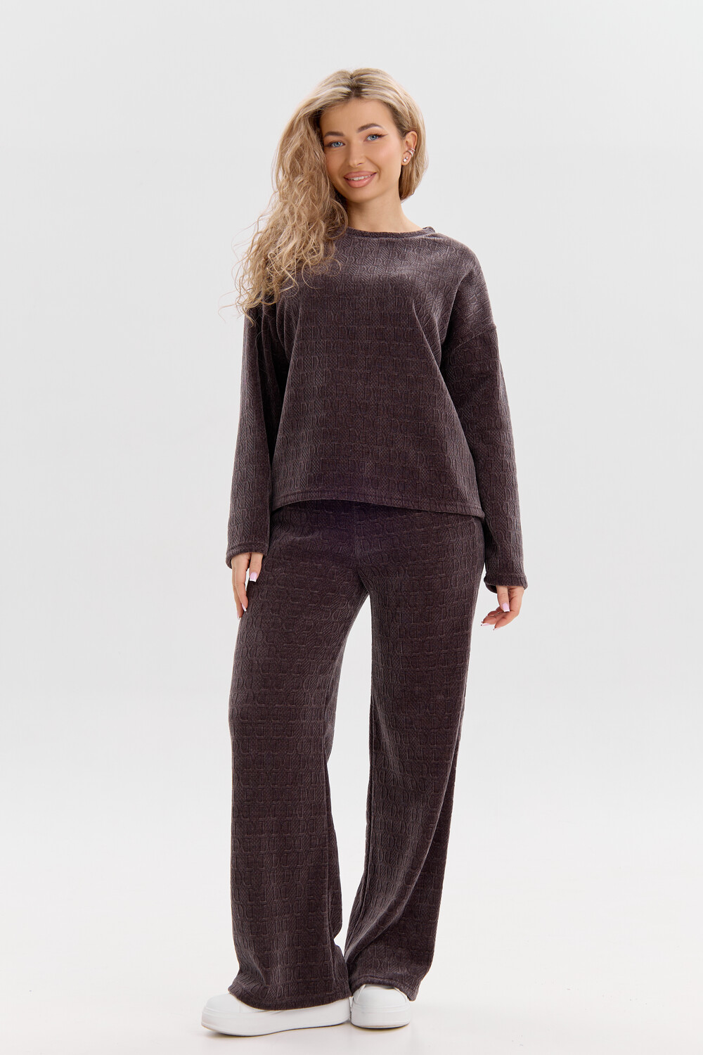 Женский костюм выполнен из жаккарда высокого качества. Жаккард - высокотехнологичный материал, прошедшей особую обработку. Ткань отличается высокими теплозащитными свойствами, при этом является дышащей. По своим характеристикам она не уступает шерстяным полотнам. И даже в сыром состоянии удерживает тепло у тела. Материал прочный, эластичный, влагостойкий. Воздухопроницаемая гигроскопичная ткань создает для тела комфортный микроклимат. Изделия из жаккарда легкие, не мнутся, не деформируются, не вытягиваються.В такой одежде удобно и комфортно. Эластичность материала позволяет легко двигаться. Костюм состоит из лонгслива и брюк. Лонг в стиле OVERSIZE ( одежда свободного кроя ) - это свобода самовыражения, позволяющая чувствовать себя комфортно и стильно одновременно. Горловина свитшота выполнена с обтачкой. Линия плеча спущена, длинный рукав. Женские стильные брюки - трубы представлены с вместительными боковыми карманами. Пояс выполнен на специализированной круговой поясной машине, что делает швы ровными и качественными. А профессиональные закрепки на поясе, придают изделию законченный вид и качество. Свободный крой прекрасно будет смотреться на дамах с любыми формами. Костюм такого плана представлен в широкой размерной сетке, что позволяет выбрать его как девушке, так и женщине. Костюм модных расцветок, будет удачным выбором для поездок в отпуск, на пикник, для школы, для активного отдыха и прогулок по городу. Будет гармонично сочетаться как с кроссовками, так и с ботинками. Используя эту модель в качестве домашнего костюма, Вы поймёте, что это именно тот самый идеальный вариант, в котором будете себя чувствовать удобно, комфортно и современно. Костюм с брюками - это настоящая находка для тех, кто ценит свою индивидуальность!
