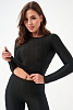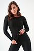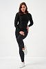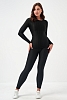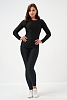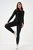 Лосины, входящие в комплект, имеют высокую посадку, которая обеспечивает поддержку и формирует силуэт. Плоские швы предотвращают натирание и дискомфорт даже во время самых активных движений. Эластичный пояс надежно фиксирует лосины на талии, не сковывая движений.