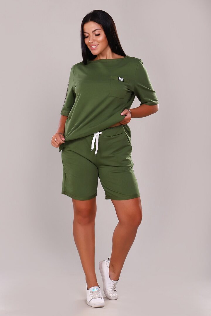 Женский костюм с шортами из футера — это комплект, состоящий из футболки и шорт, изготовленный из трикотажного материала футер. Футер — мягкий, тёплый и приятный на ощупь материал, который состоит преимущественно из хлопка с добавлением эластичных волокон (полиэстера или лайкры). Он хорошо пропускает воздух, сохраняет форму после стирок, обеспечивает комфорт и свободу движений.