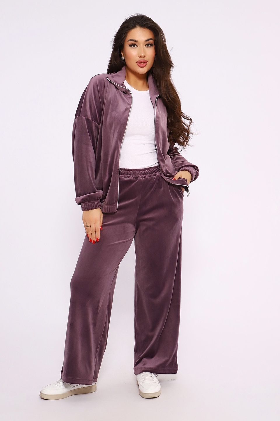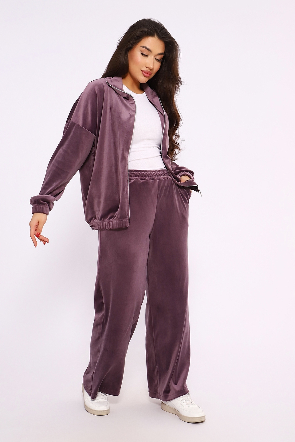 Женский костюм из велюра — это стильный и комфортный вариант для повседневного образа, спорта или домашнего использования. Велюр — мягкая ткань с коротким плотным ворсом, которая может быть изготовлена из хлопка, смесовых волокон или синтетических материалов. Она отличается прочностью, износостойкостью и приятной текстурой.
