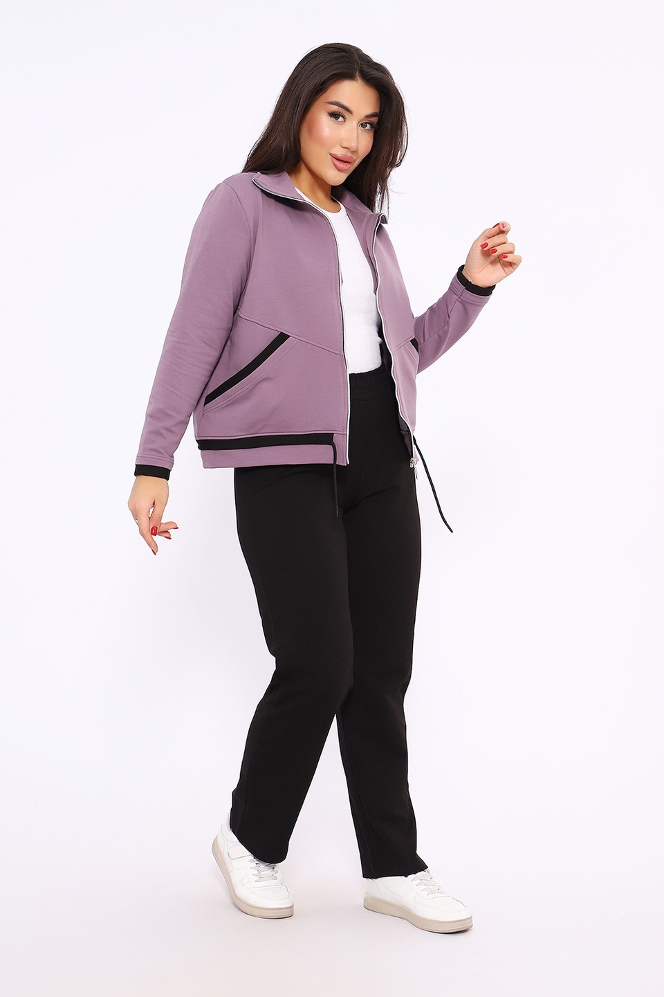Женские костюмы из футера — это практичная и комфортная одежда, подходящая для спорта, активного отдыха и повседневной носки. Футер — трикотажная ткань с гладкой лицевой стороной и мягким ворсом с изнаночной, которая отличается эластичностью, износостойкостью и теплотой.