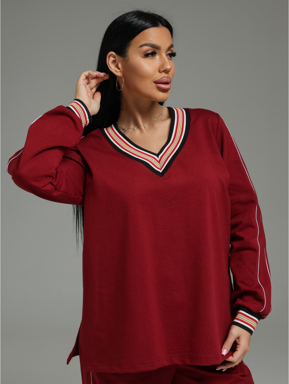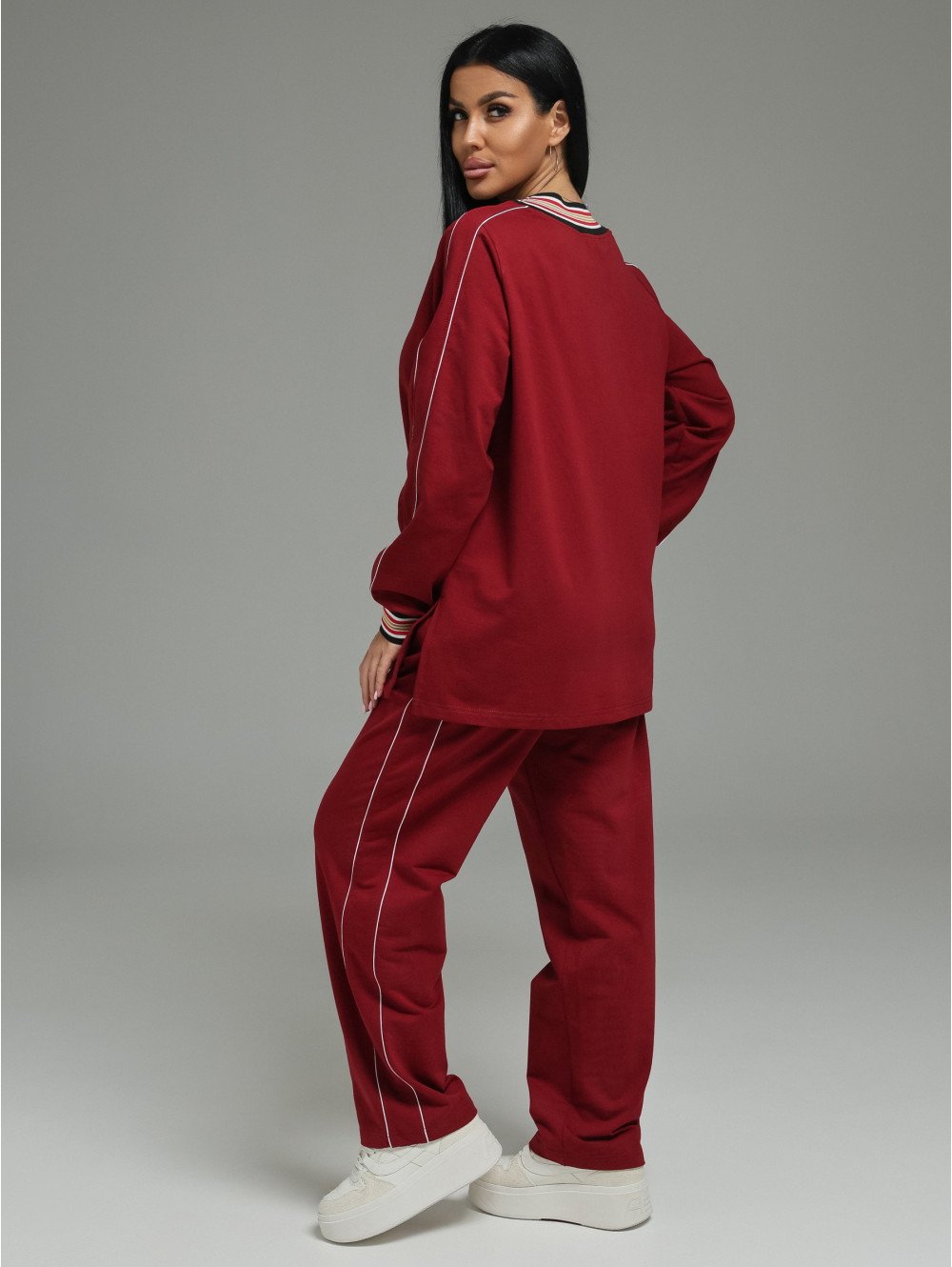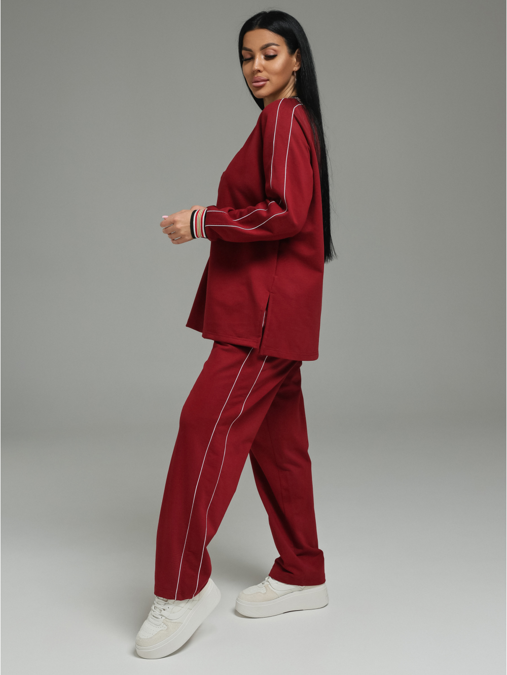 Модель: Комплект свободного кроя (свитшот+ брюки) для создания цельного образа.