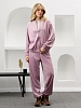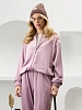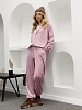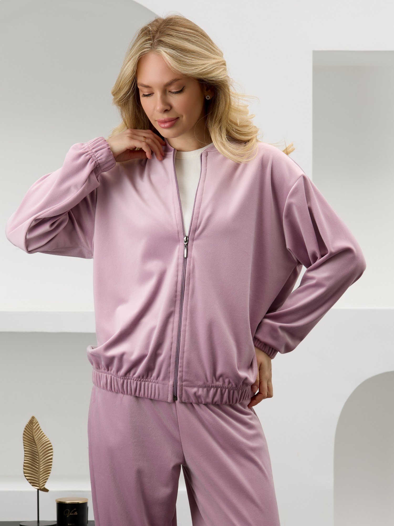 Костюм молодежный из гладкокрашенного полотна «велюр-стрейч», Куртка-бомбер прямого силуэта, свободная, с длинными втачными рукавами, горловиной овальной формы, обработанной втачной планкой, центральной бортовой застежкой на тесьму «молния». Низ изделия и нижние срезы рукавов обработаны подгибкой с вложением широкой эластичной тесьмы.Брюки – длинные, с карманами в боковых швах, на притачном поясе с эластичной тесьмой внутри. Нижние срезы обработаны подгибкой с вложением эластичной тесьмы.