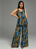 Костюм Аманда состоит из топа и брюк.   Вырез горловины топа на полочке и спинке V-образный. Лямки топа выполнены из декоративной резинки.    Брюки прямые от бедра с отрезным поясом.